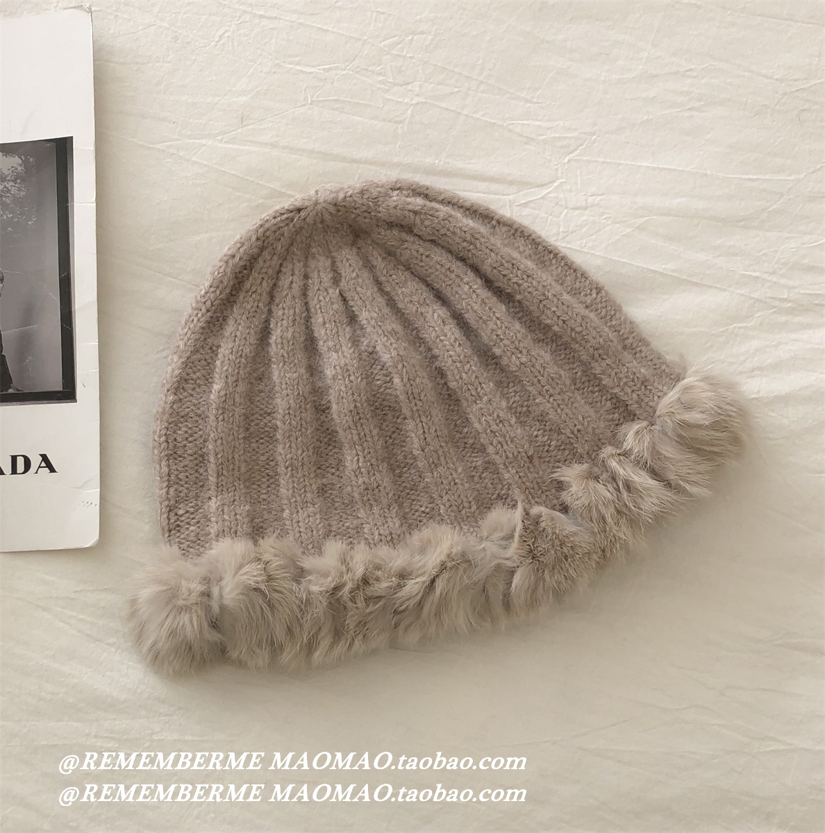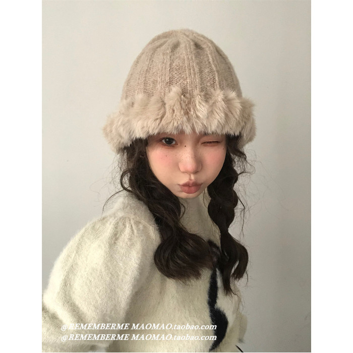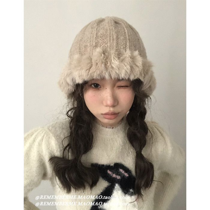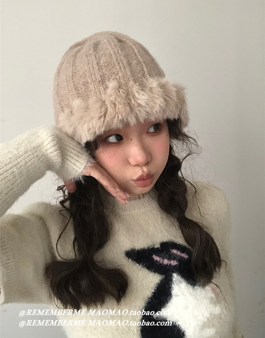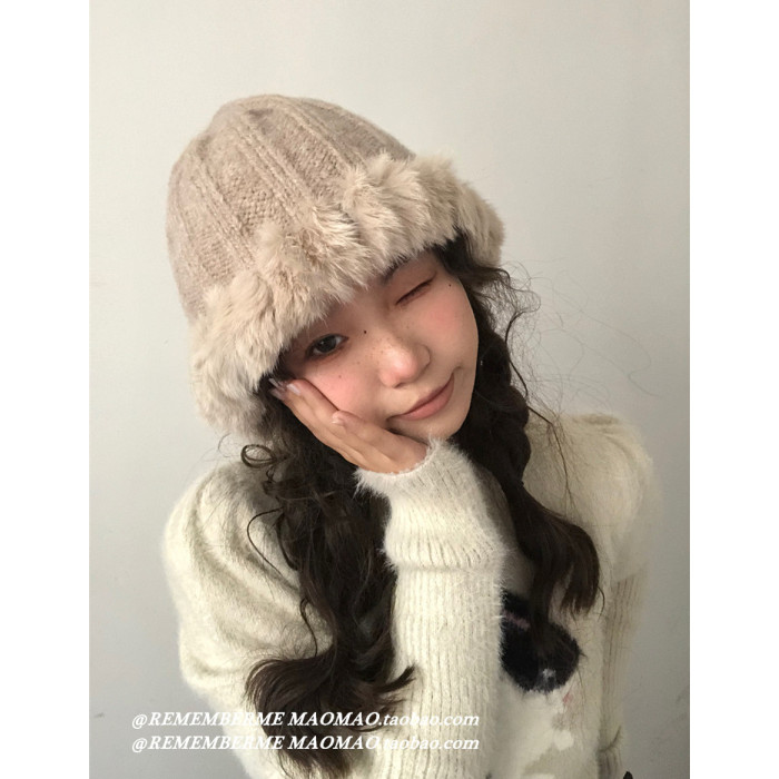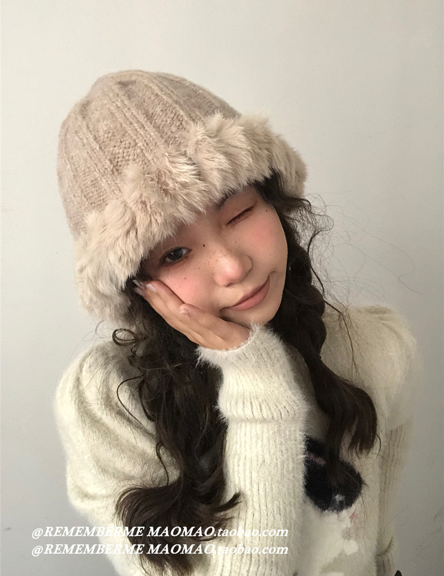 【寬松大頭圍】秋冬保暖手工兔毛帽子女百搭摩卡色毛絨護耳包頭帽