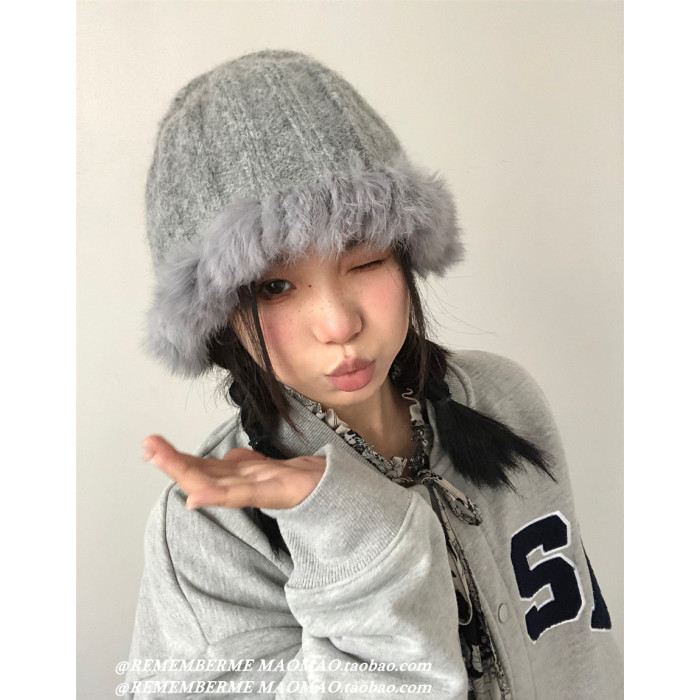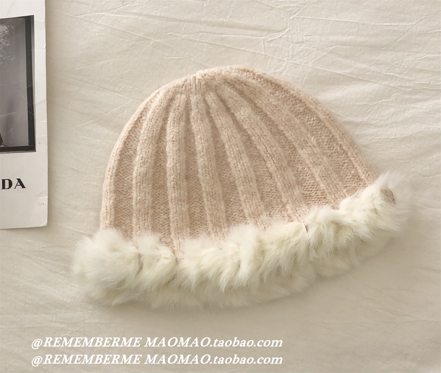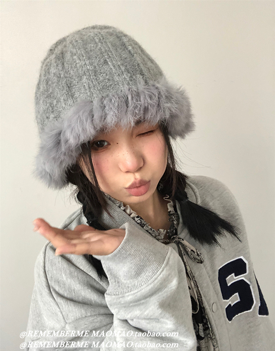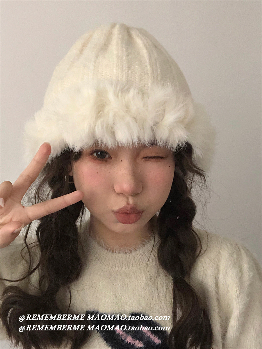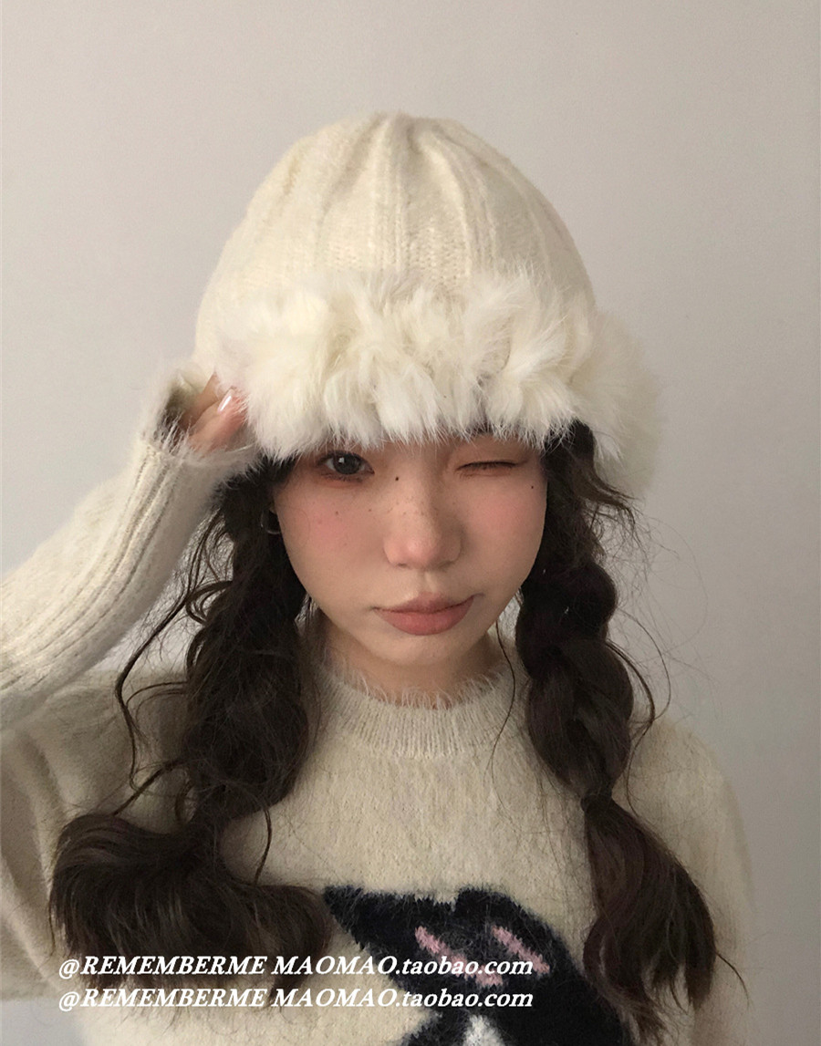 【寬松大頭圍】秋冬保暖手工兔毛帽子女百搭摩卡色毛絨護耳包頭帽