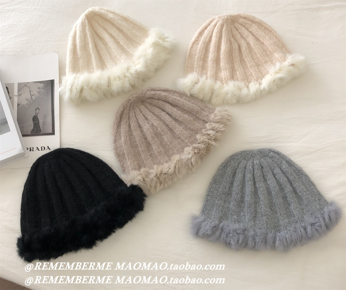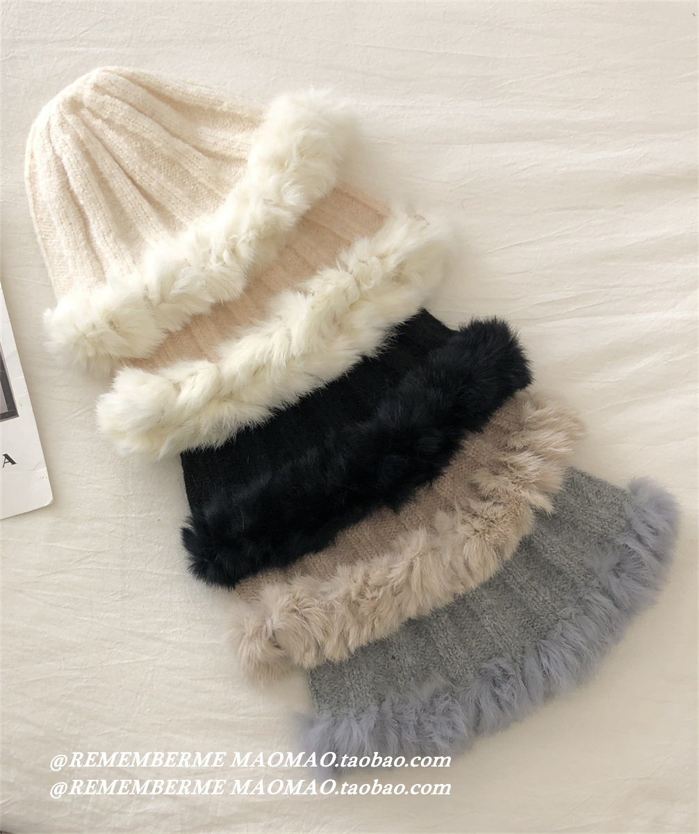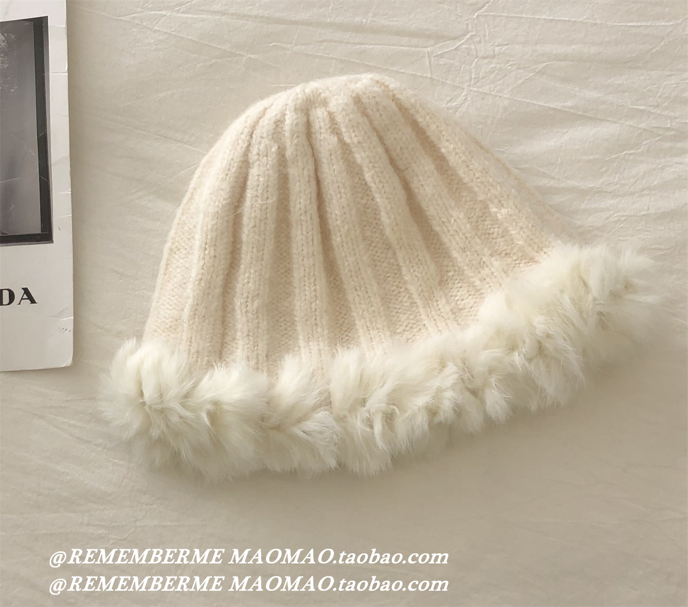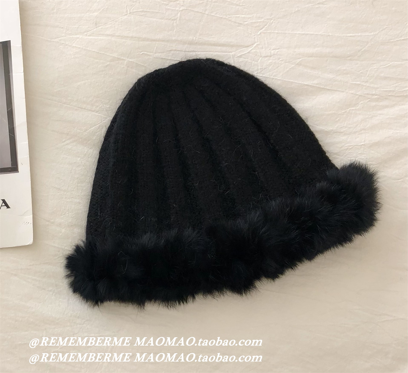 【寬松大頭圍】秋冬保暖手工兔毛帽子女百搭摩卡色毛絨護耳包頭帽