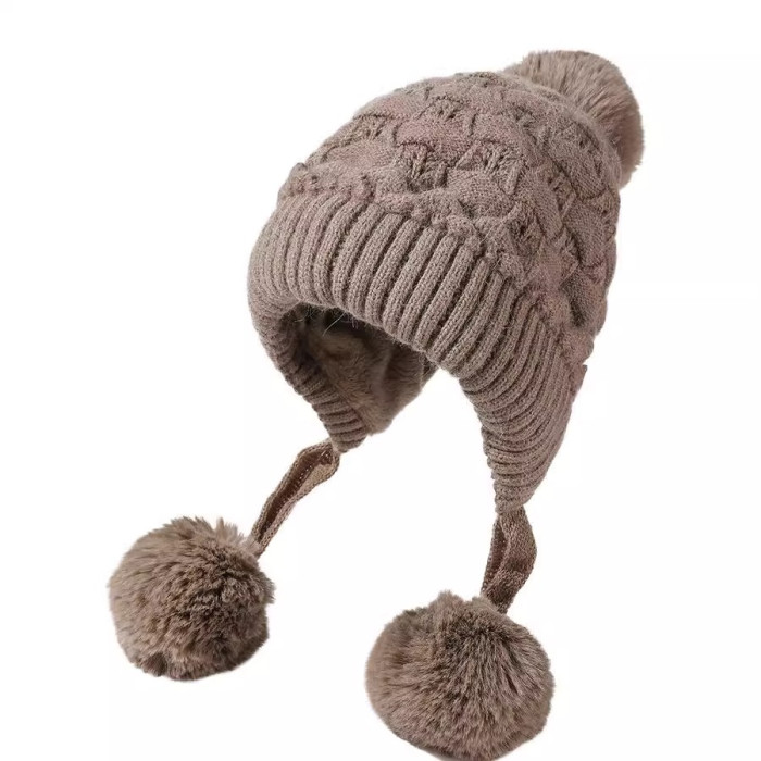 三毛球兔毛帽子女冬季慵懶風加厚雙層護耳防寒加絨護臉針織毛線帽
