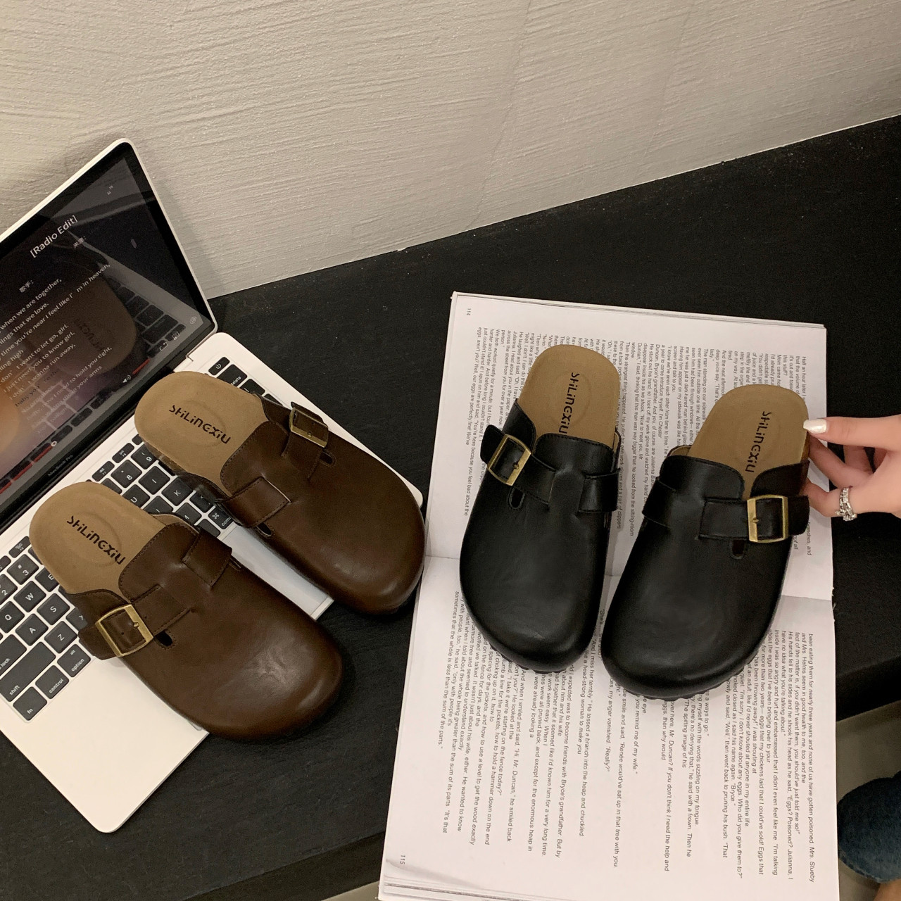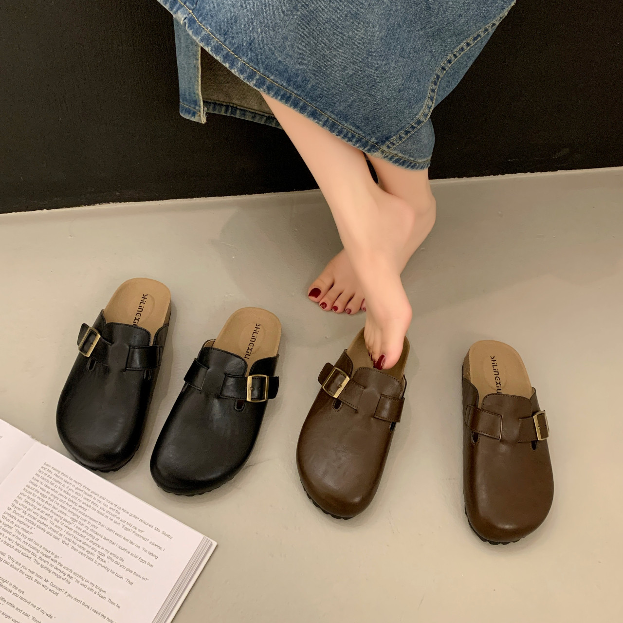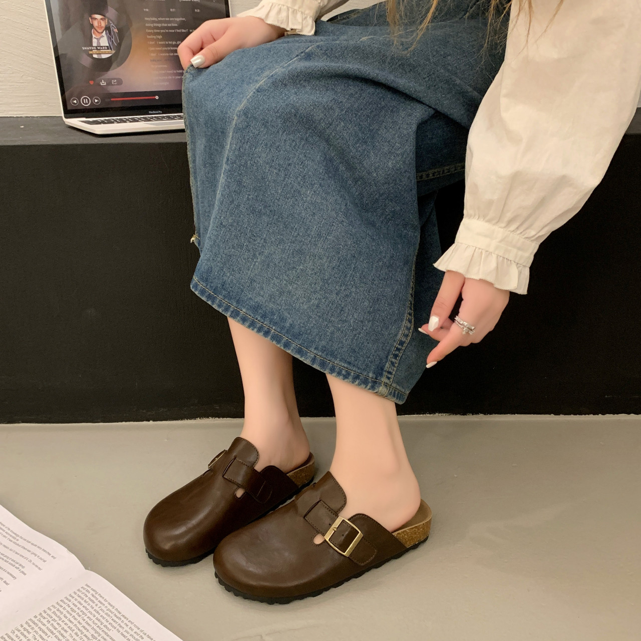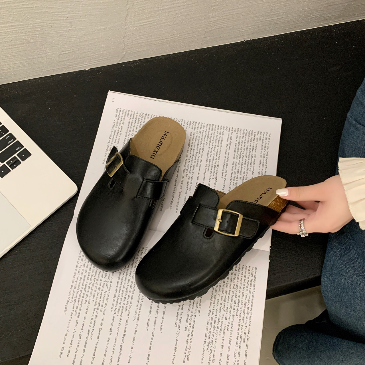 真皮厚底勃肯鞋包頭半拖鞋女外穿2025新款秋季一腳蹬醜萌博肯半托