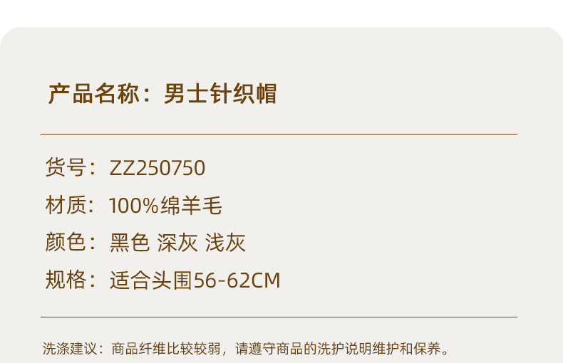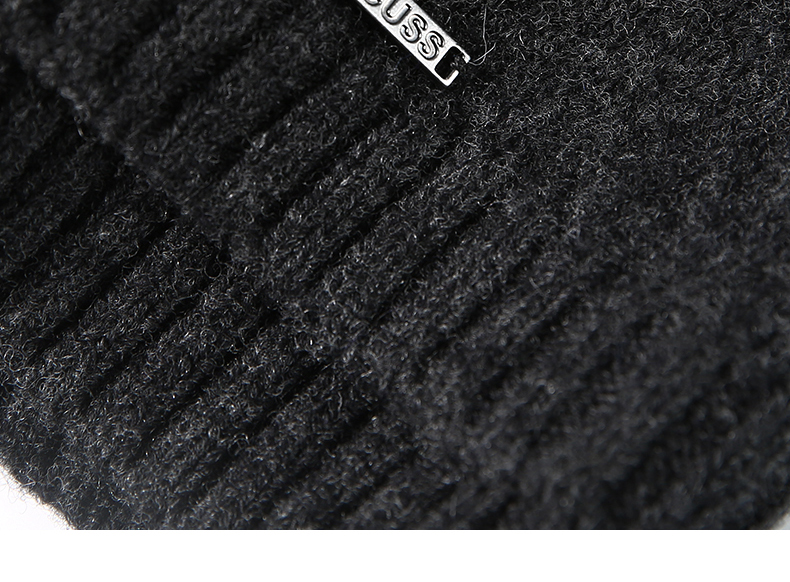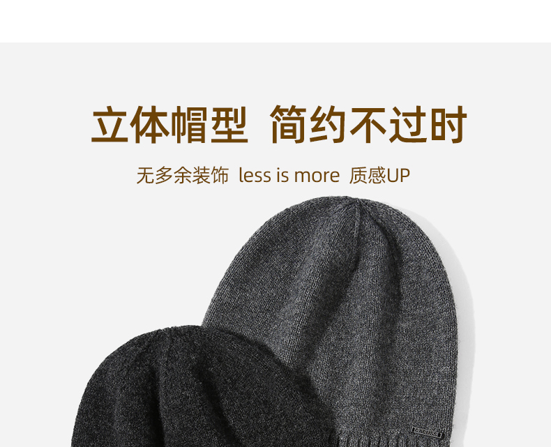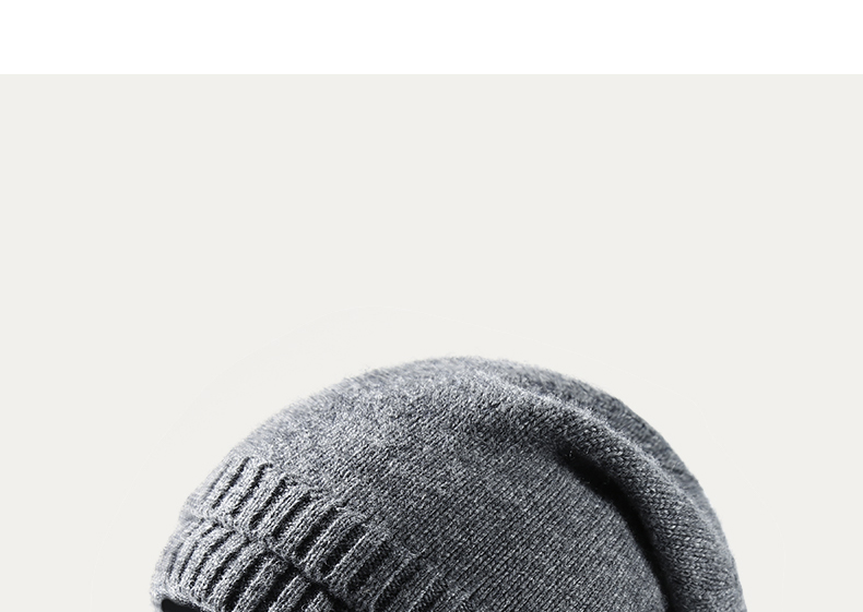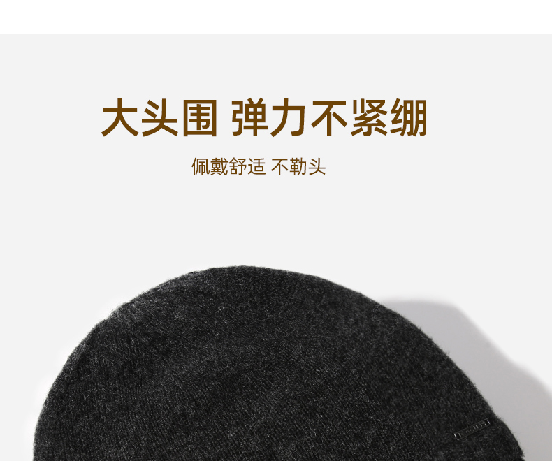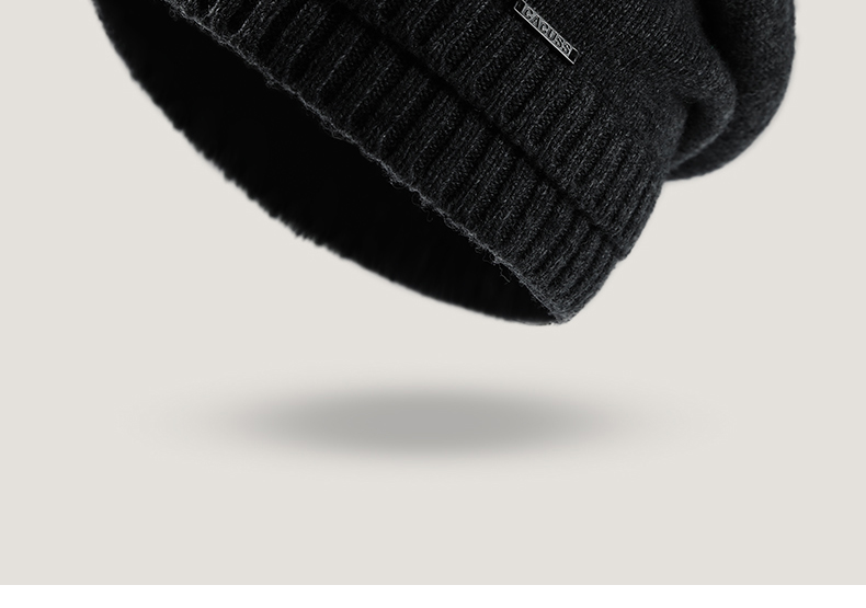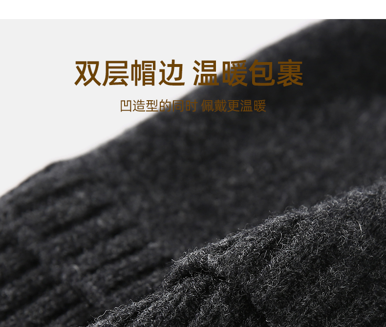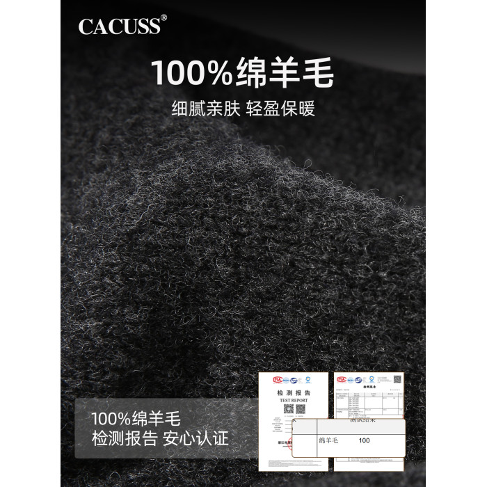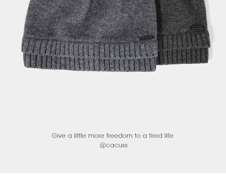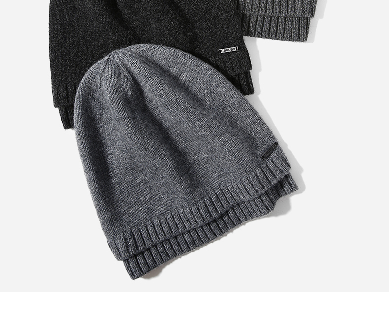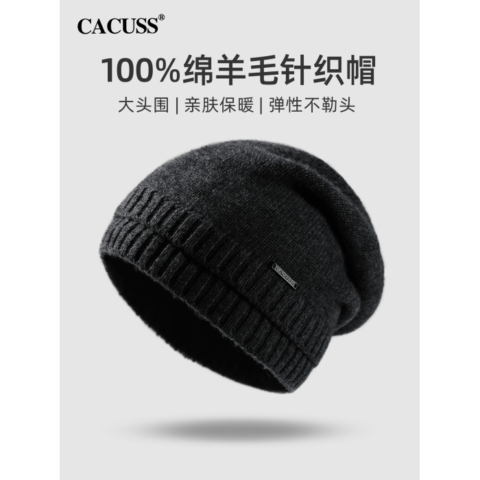 CACUSS純羊毛帽子男冬季冷帽雙帽簷加厚針織帽保暖護耳套頭毛線帽