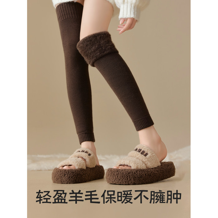 羊絨長筒護膝襪套女秋冬加絨過膝襪子加厚保暖羊毛大腿襪冬季長襪