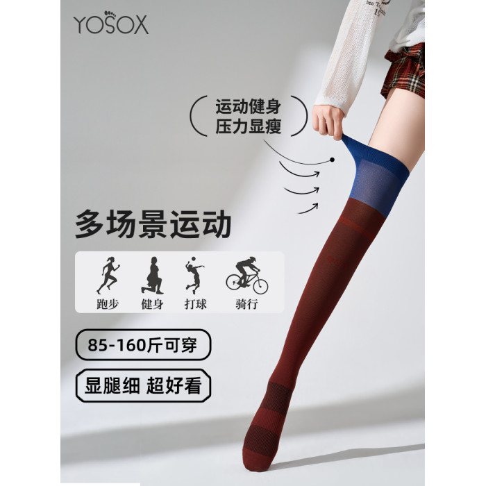秋冬過膝長筒襪運動壓力襪騎行襪馬拉松跑步襪羽毛球襪徒步登山襪