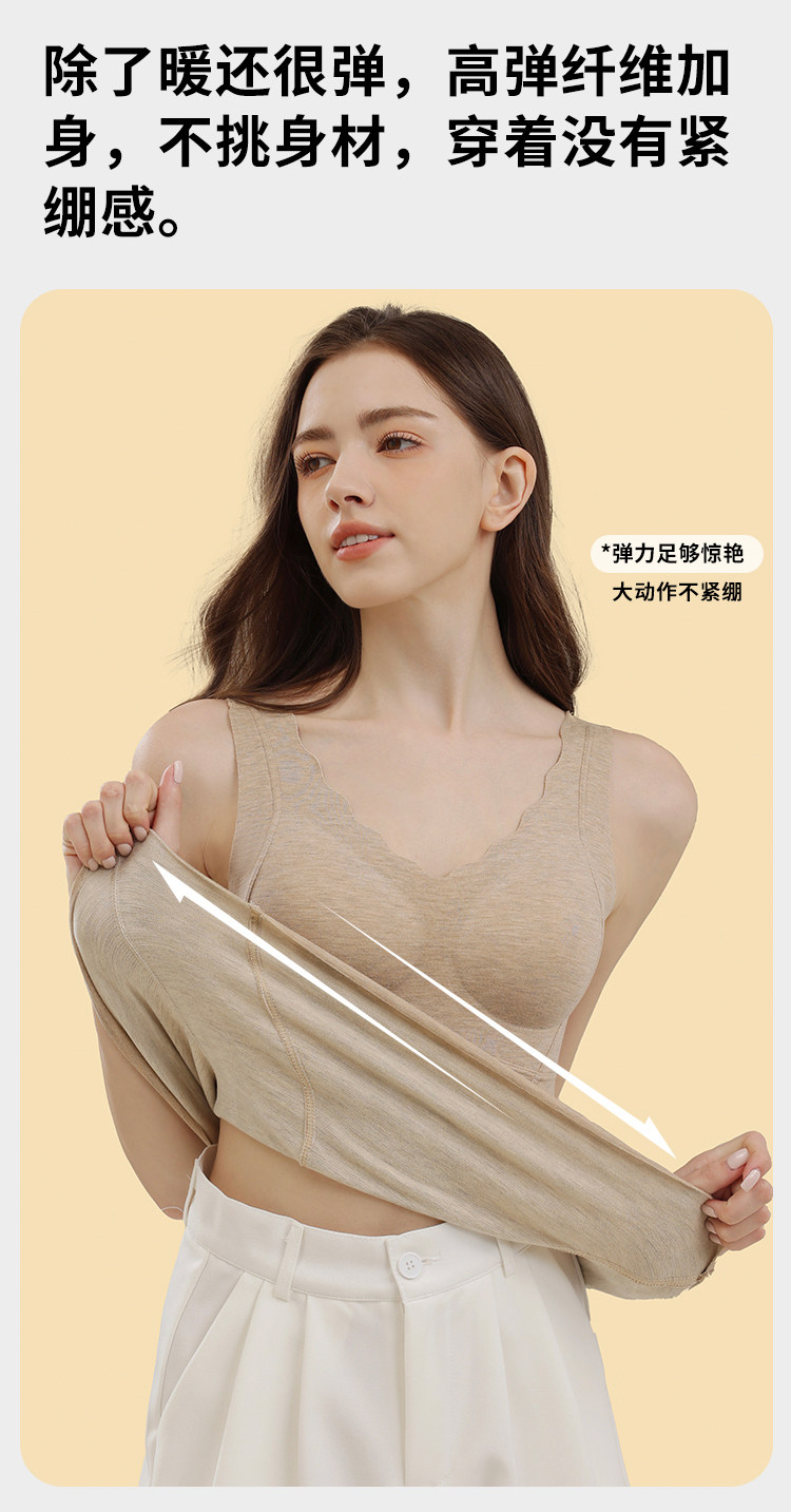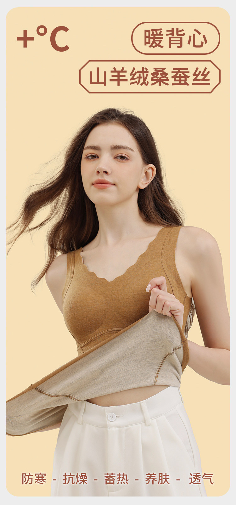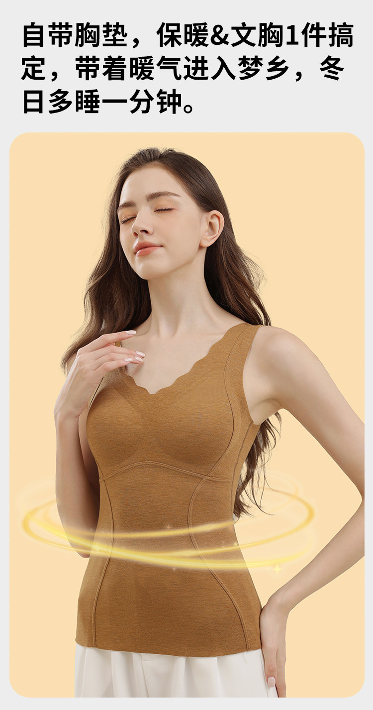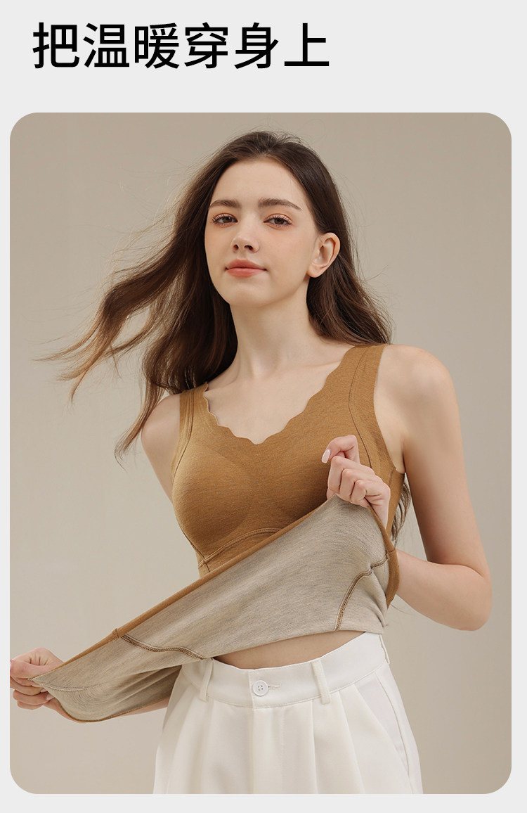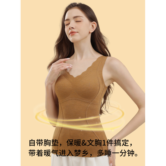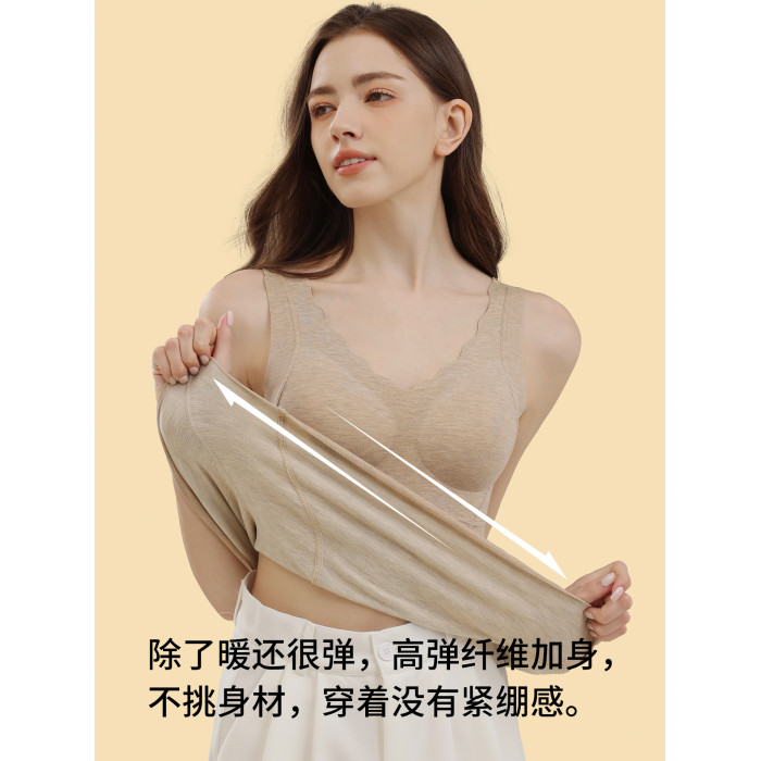 無痕羊毛蠶絲德絨保暖背心女帶胸墊一體免穿文胸加絨加厚髮熱內衣