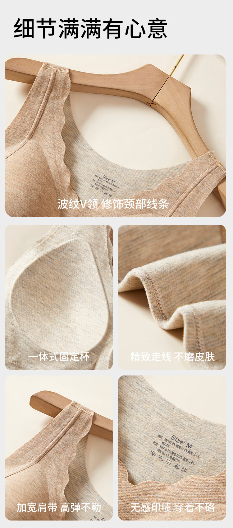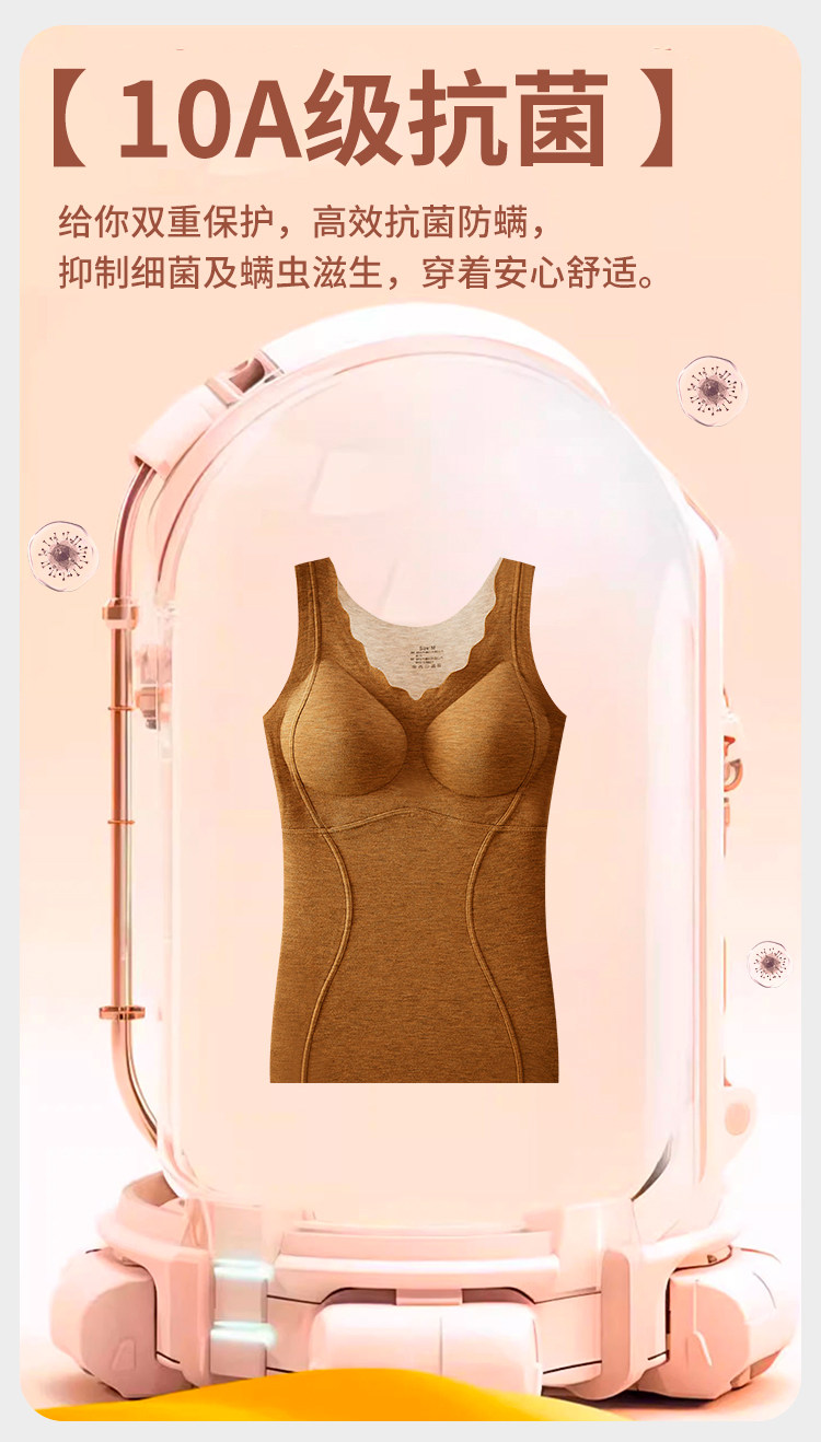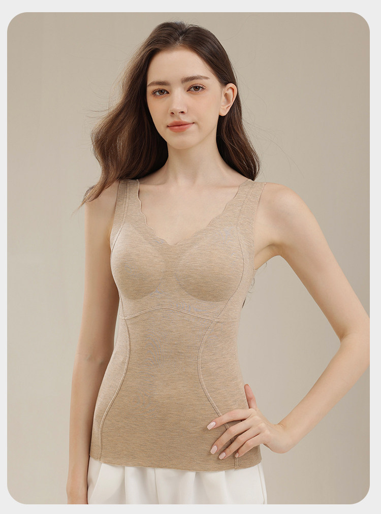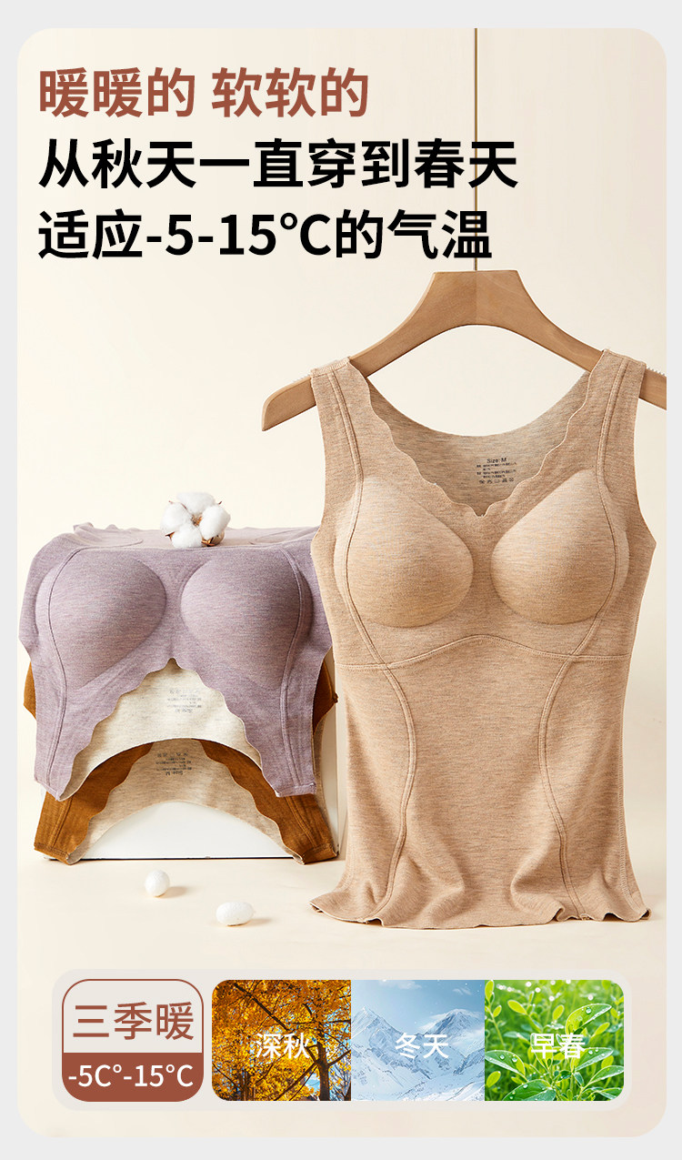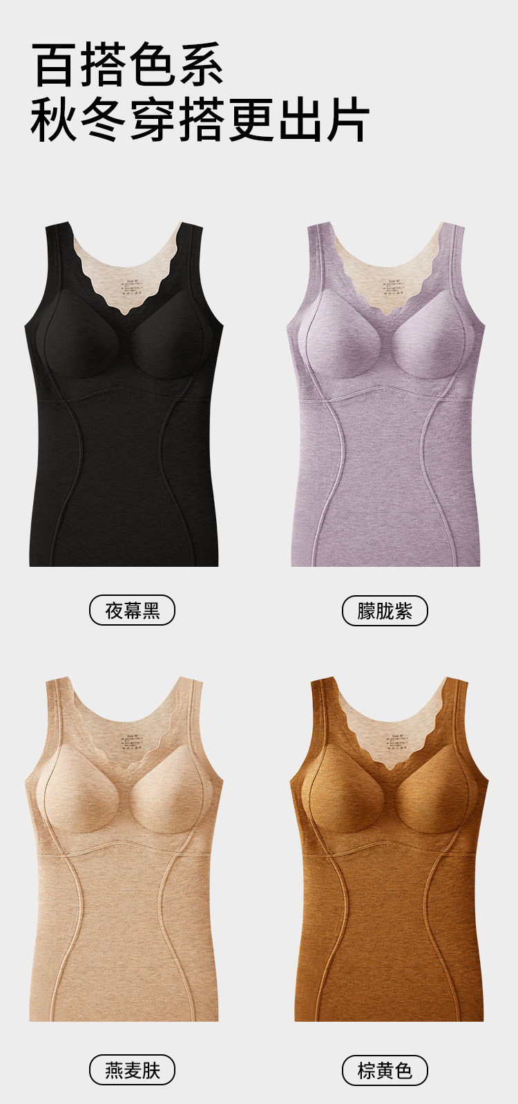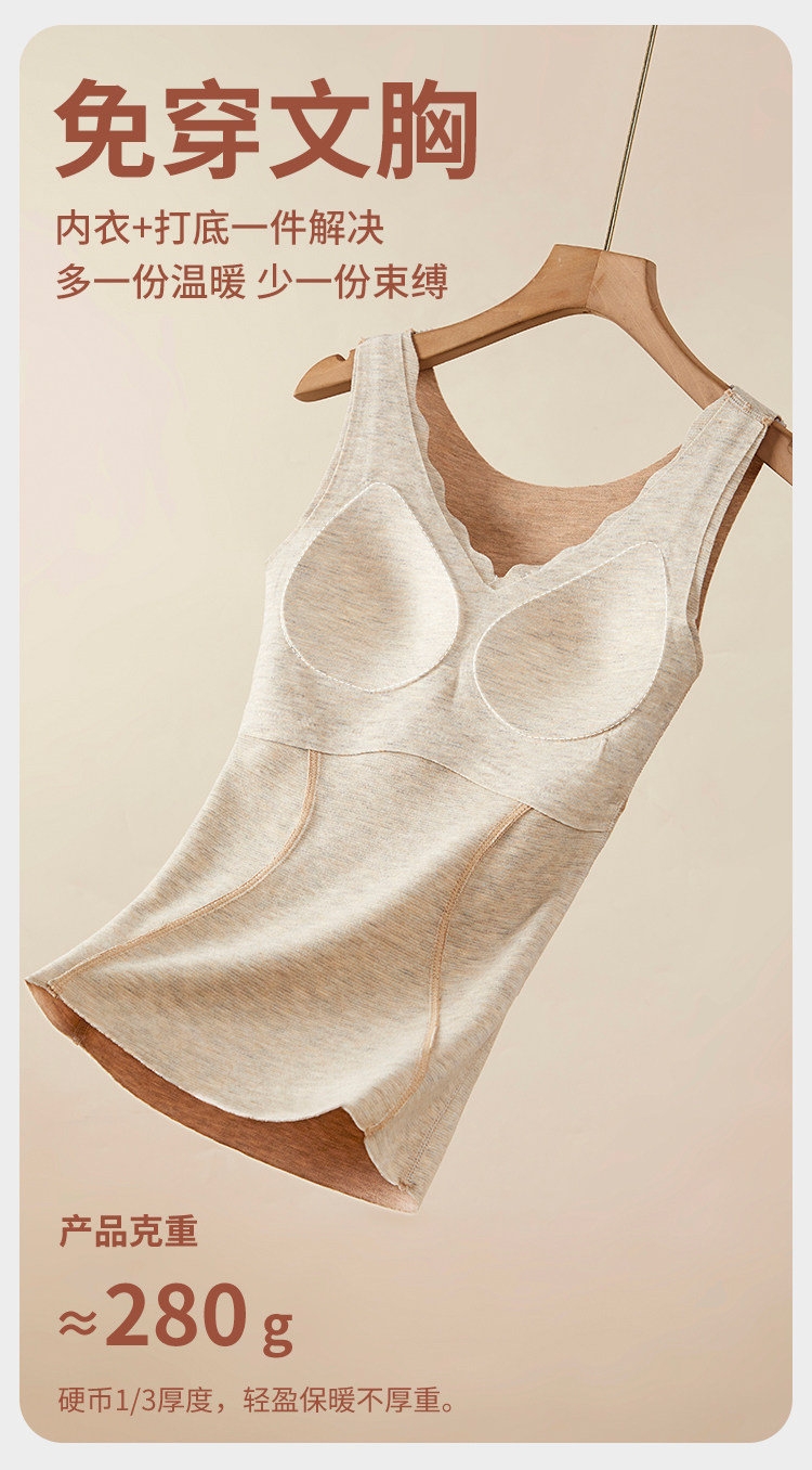 無痕羊毛蠶絲德絨保暖背心女帶胸墊一體免穿文胸加絨加厚髮熱內衣
