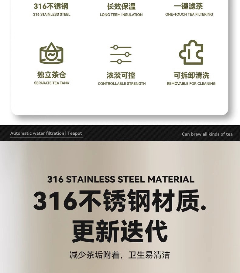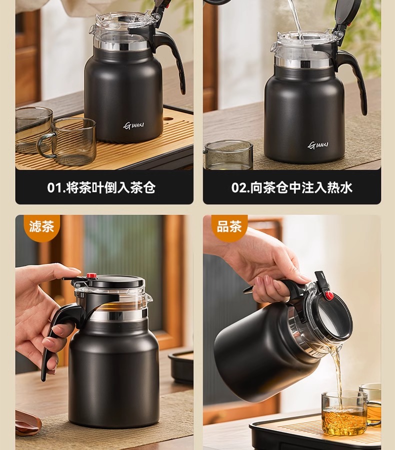 不鏽鋼飄逸杯泡茶壺 家用316不鏽鋼保溫壺辦公室茶水分離茶具套裝