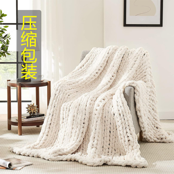 粗針毛毯雪尼爾手工針織粗毛線編織毯子家居裝飾沙發毯