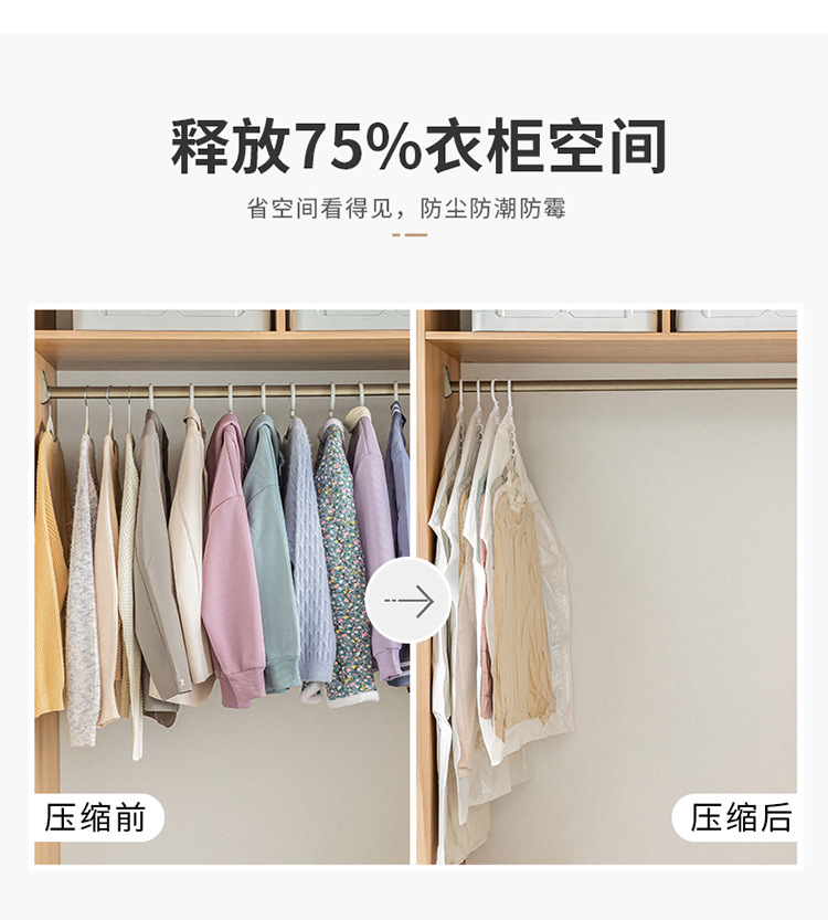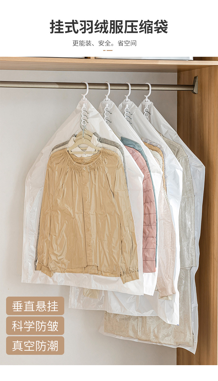 掛式真空壓縮袋羽絨服收納袋衣服衣物大衣整理衣櫃防塵袋家用抽氣