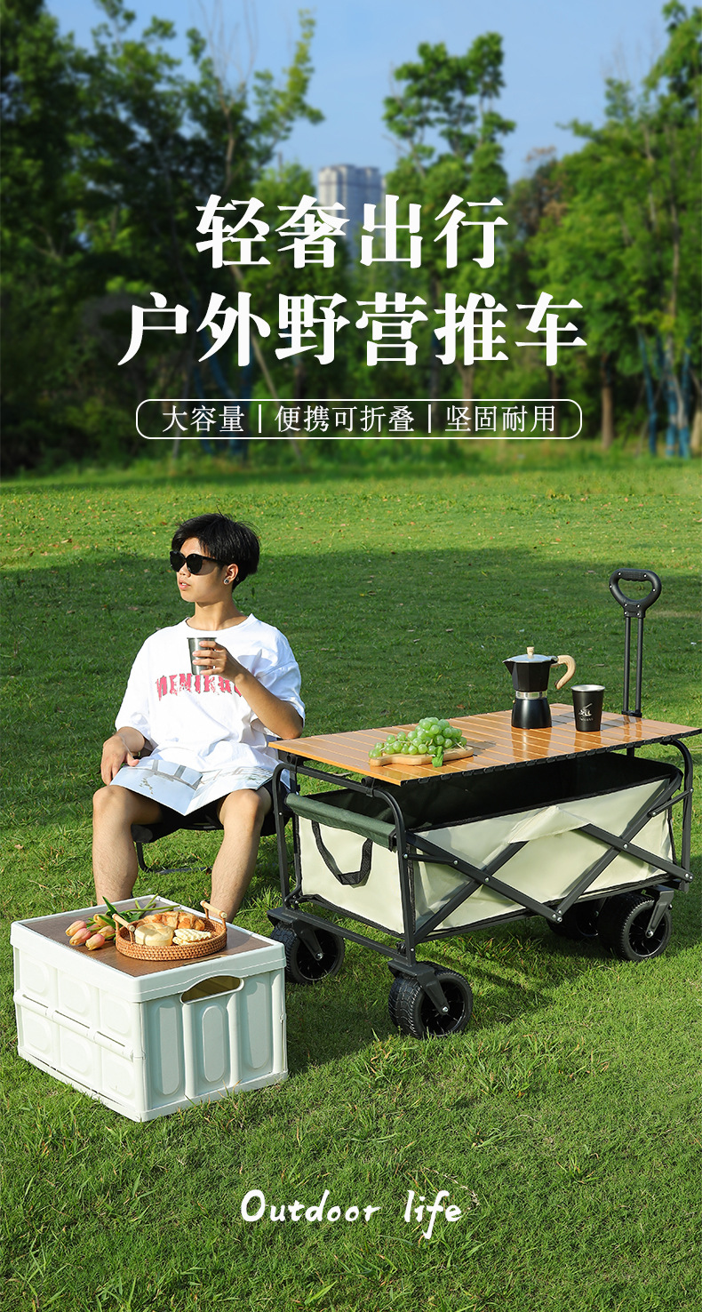 2023新款戶外拖車折曡營地車購物露營野營地小推車擺攤小推拉貨車