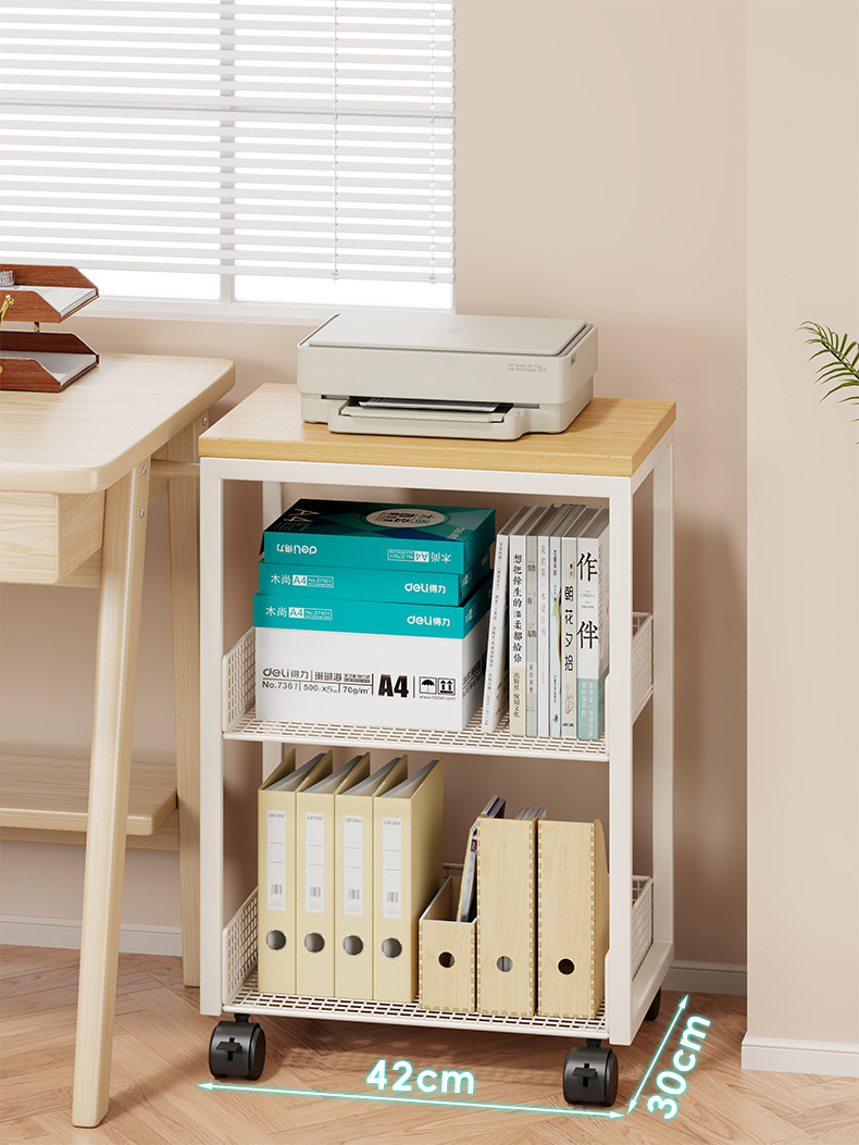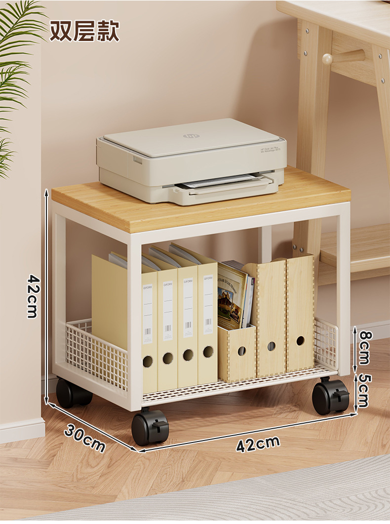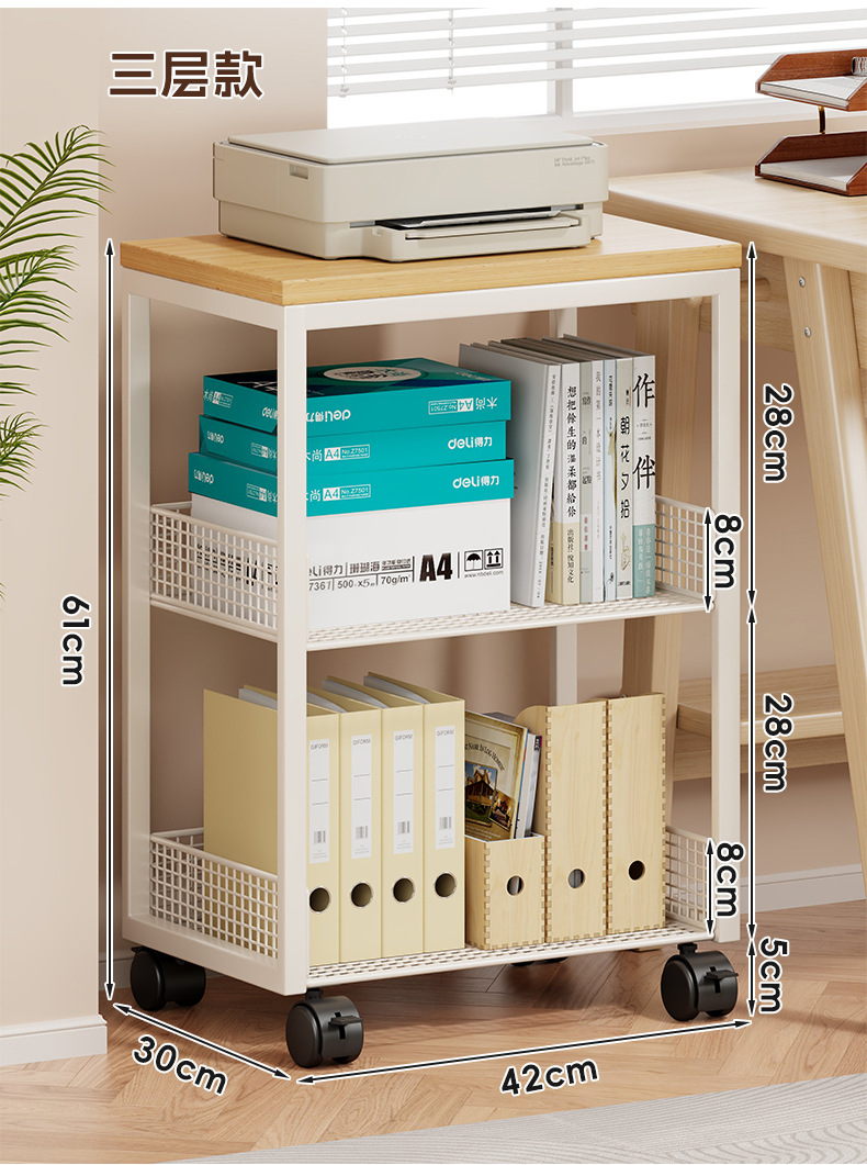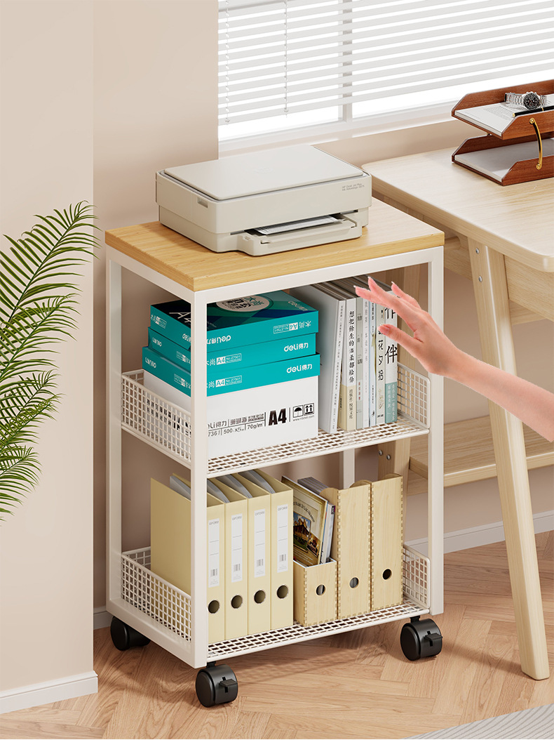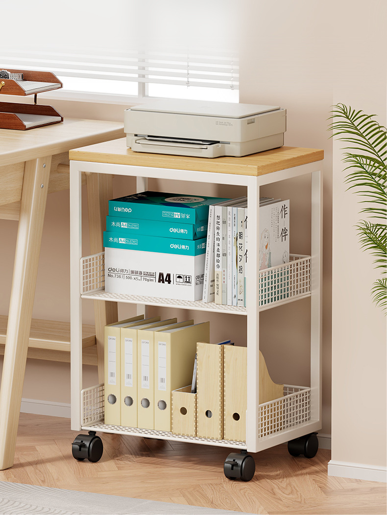 打印機置物架辦公桌收納架子桌邊放置櫃落地可移動帶輪書架小推車