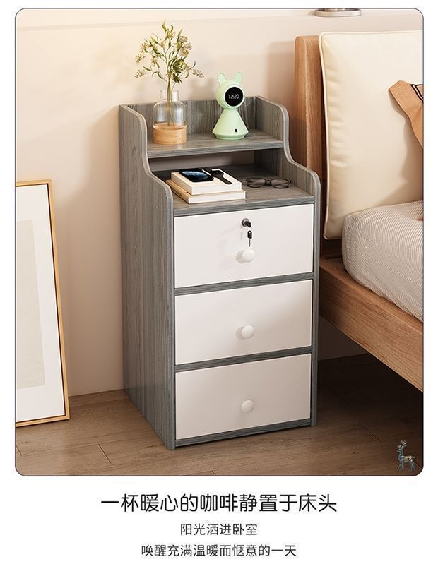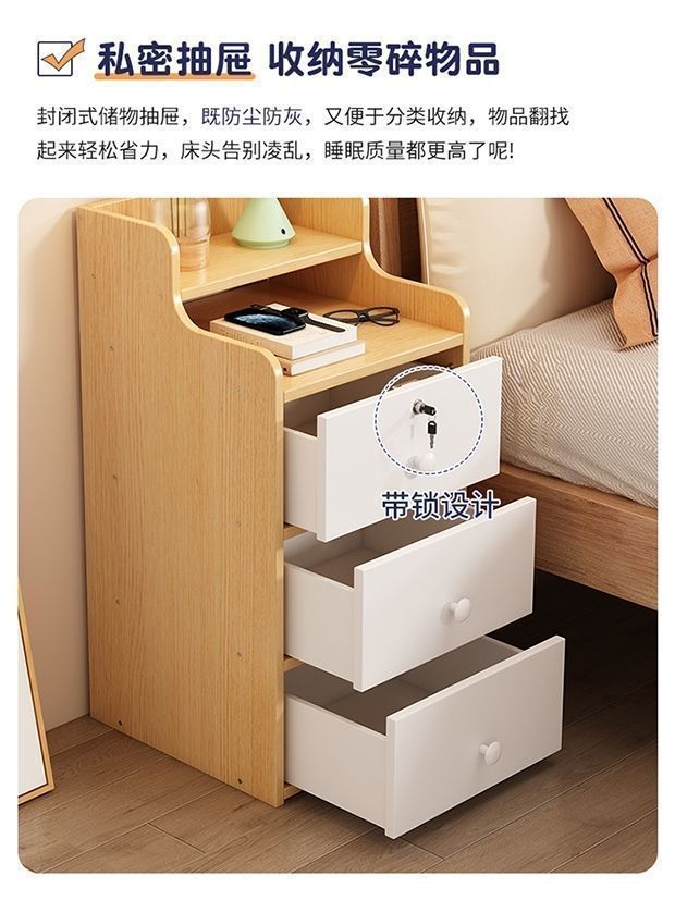 床頭櫃臥室家用簡約現代簡易收納帶鎖儲物櫃小型置物架臥室迷你櫃