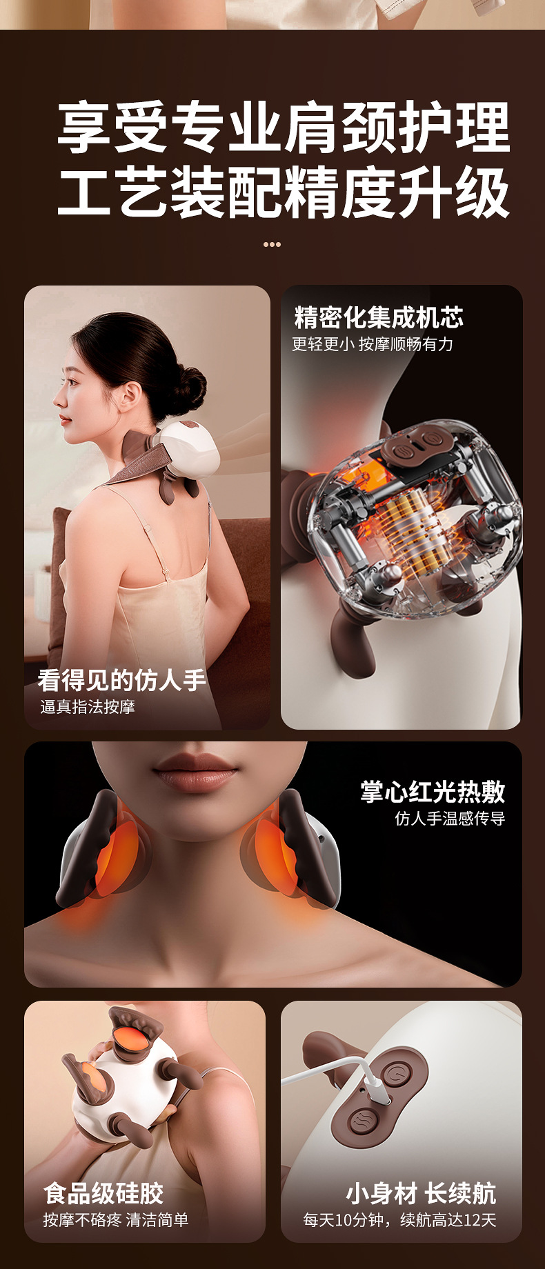 大師手肩頸按摩儀頸椎斜方肌頸部按摩儀人手揉捏熱敷按摩