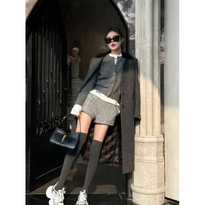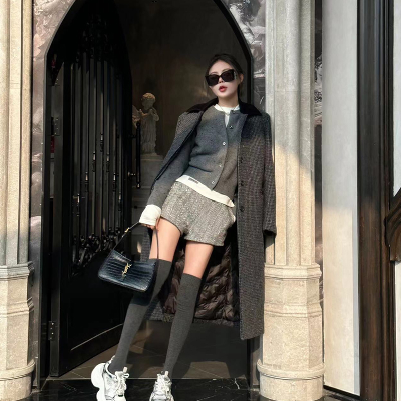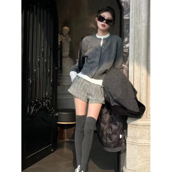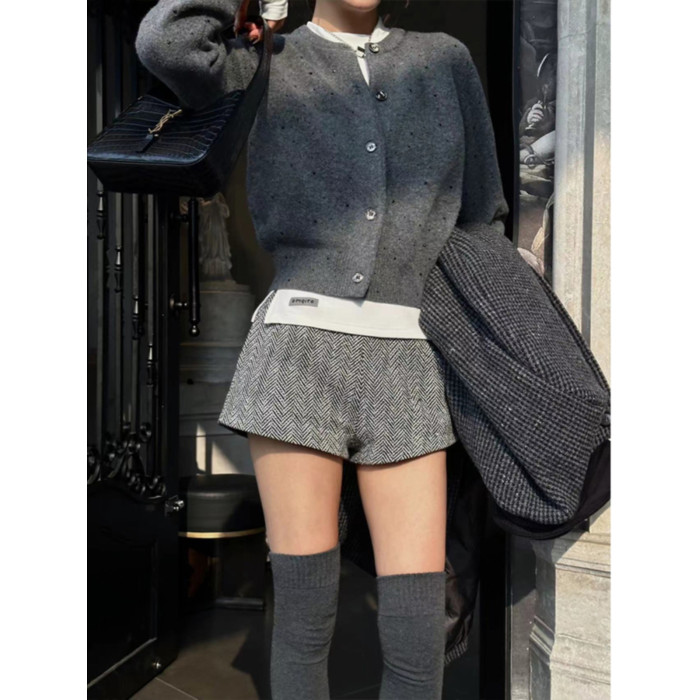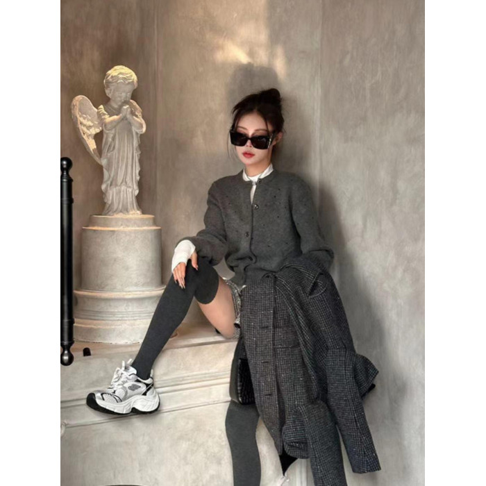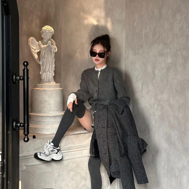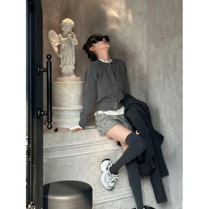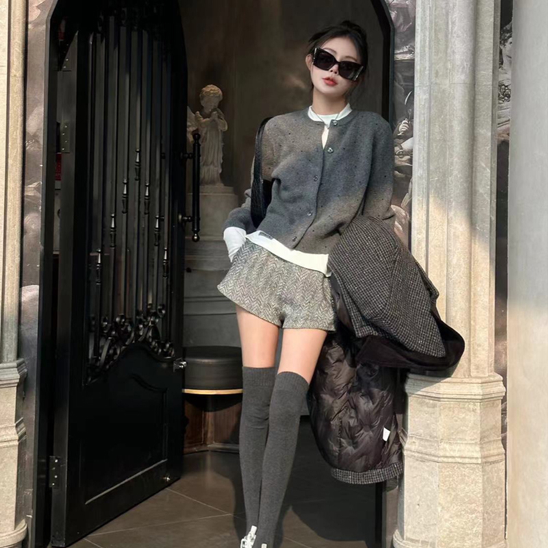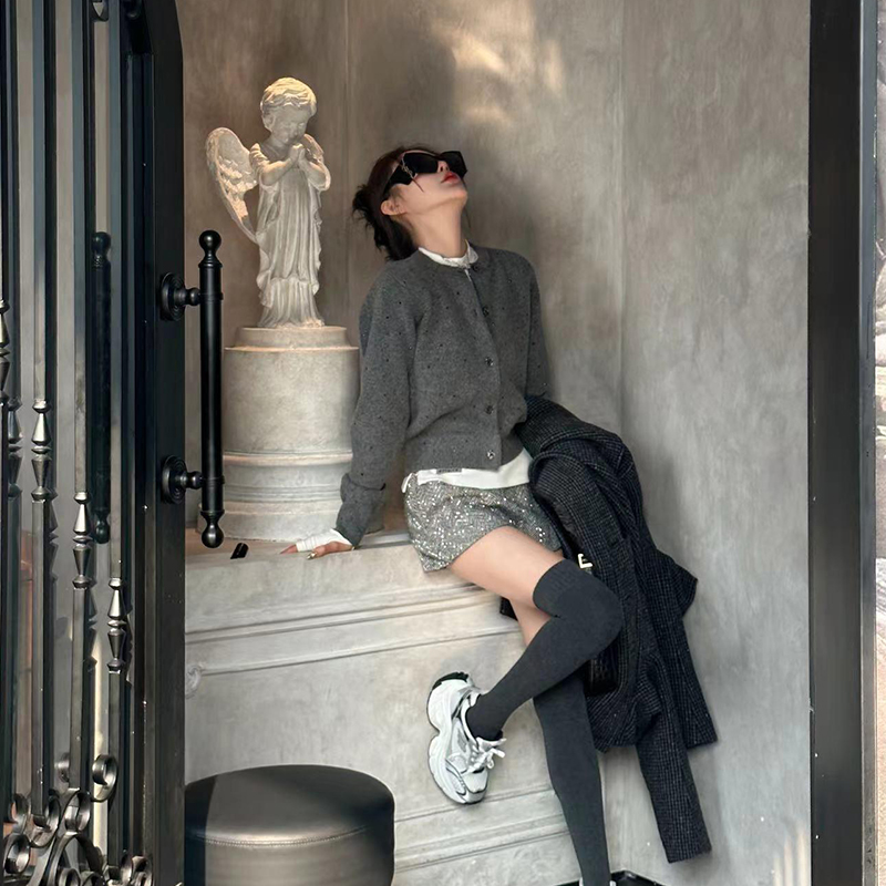 灰色針織開衫短款毛衣外套女秋冬季新款洋氣獨特寬松慵懶軟糯上衣