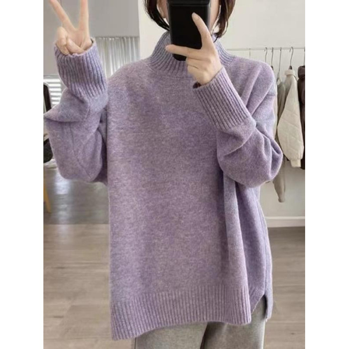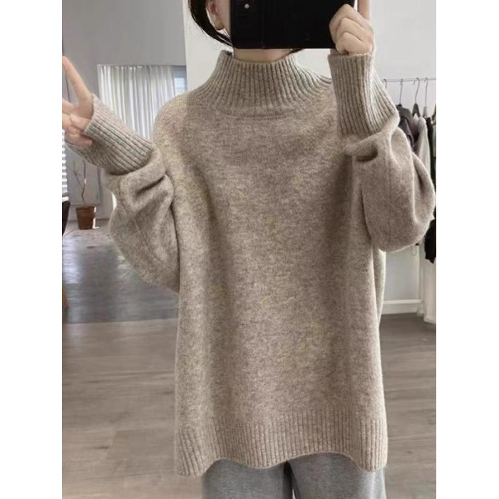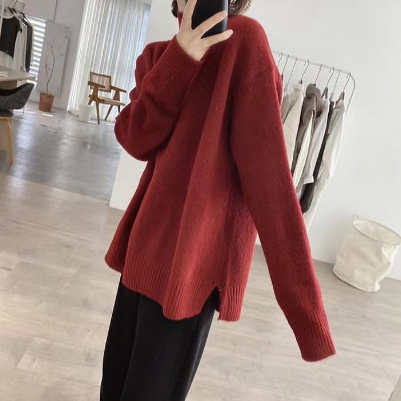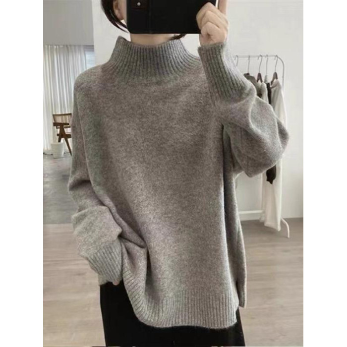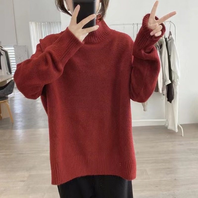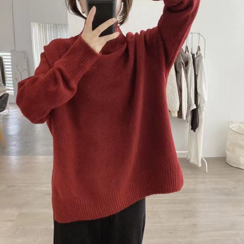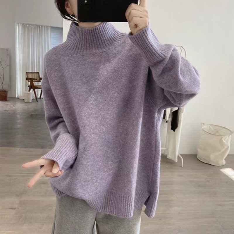 軟糯半高領毛衣女秋冬季新款內搭針織衫顯瘦打底寬松慵懶外穿上衣