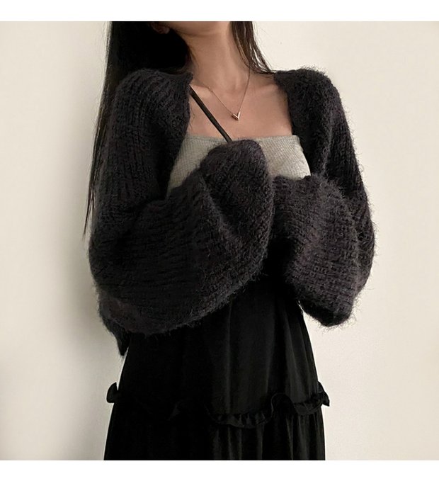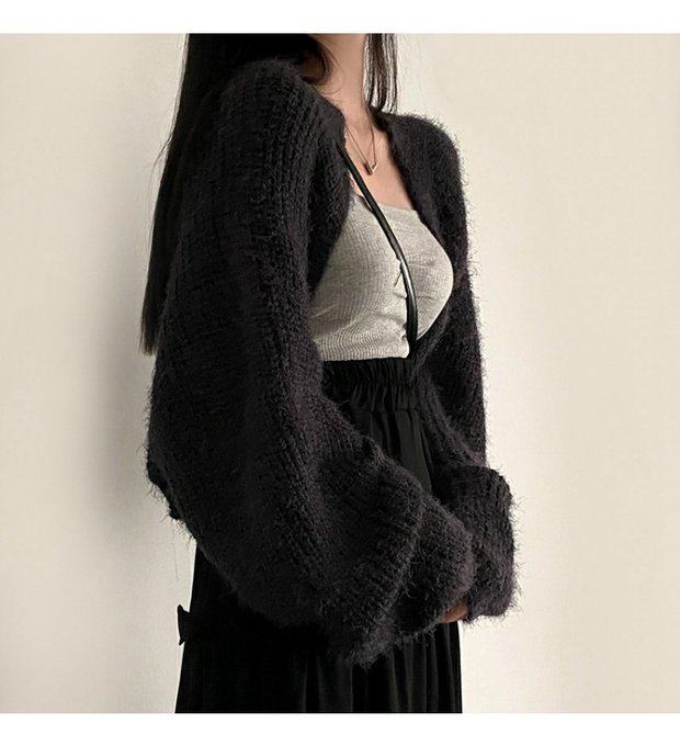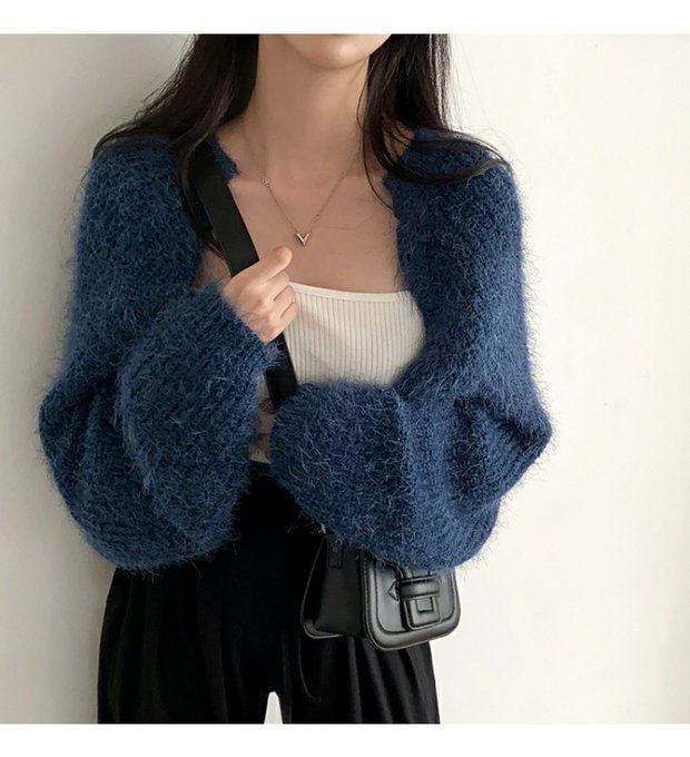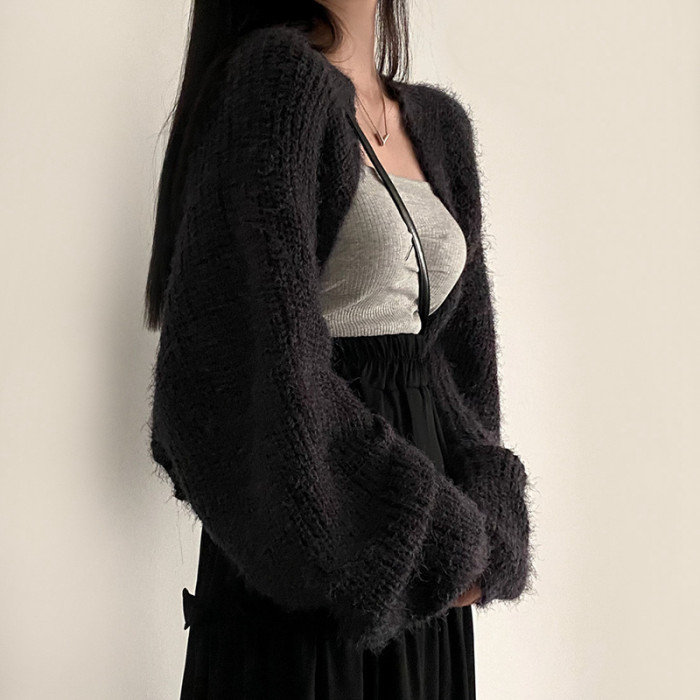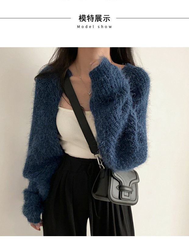 韓國chic秋冬復古軟糯保暖馬海毛短款毛衣外套慵懶寬松針織開衫女