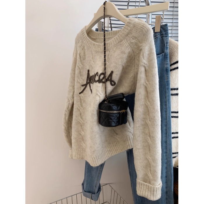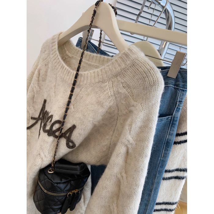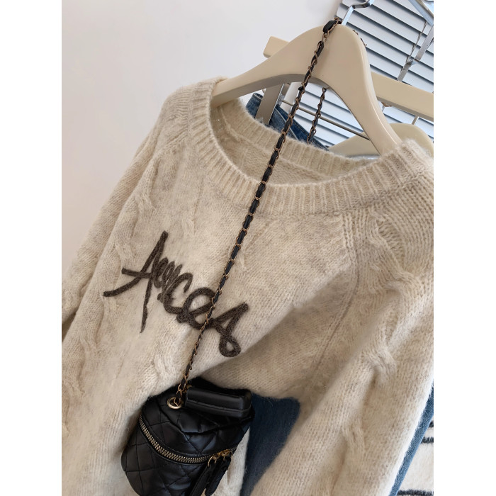 秋冬燕麥色浣熊絨打底毛衣女秋冬加厚內搭打底衫慵懶風外穿小個子