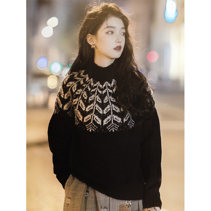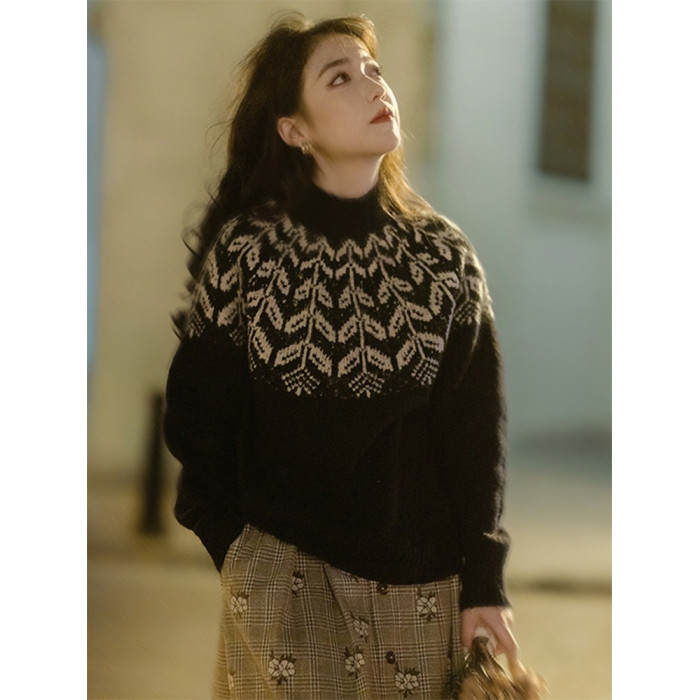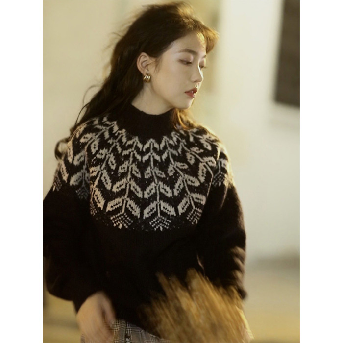 法式復古費爾島毛衣女秋冬森系設計感小衆慵懶風半高領打底衫上衣