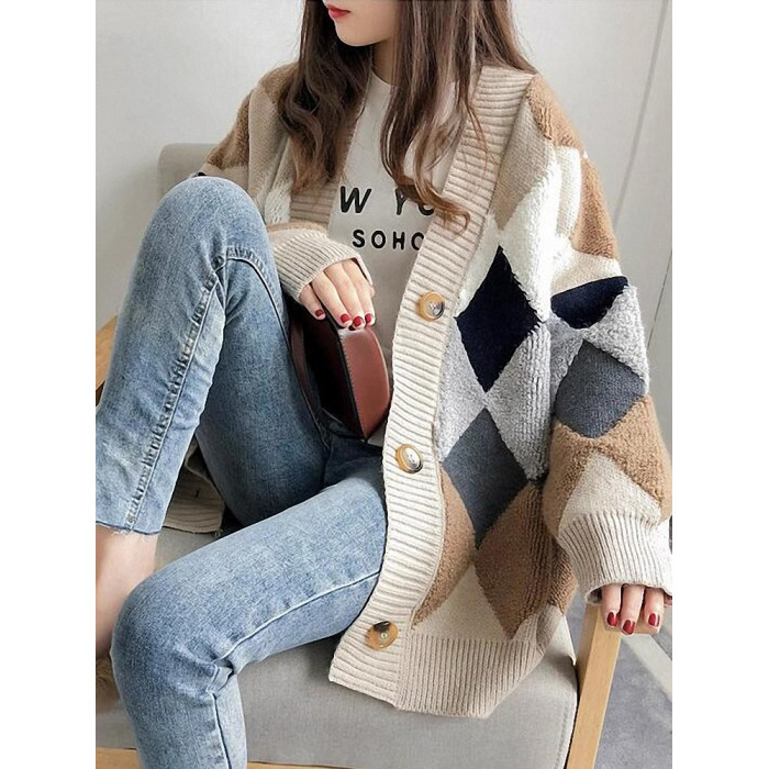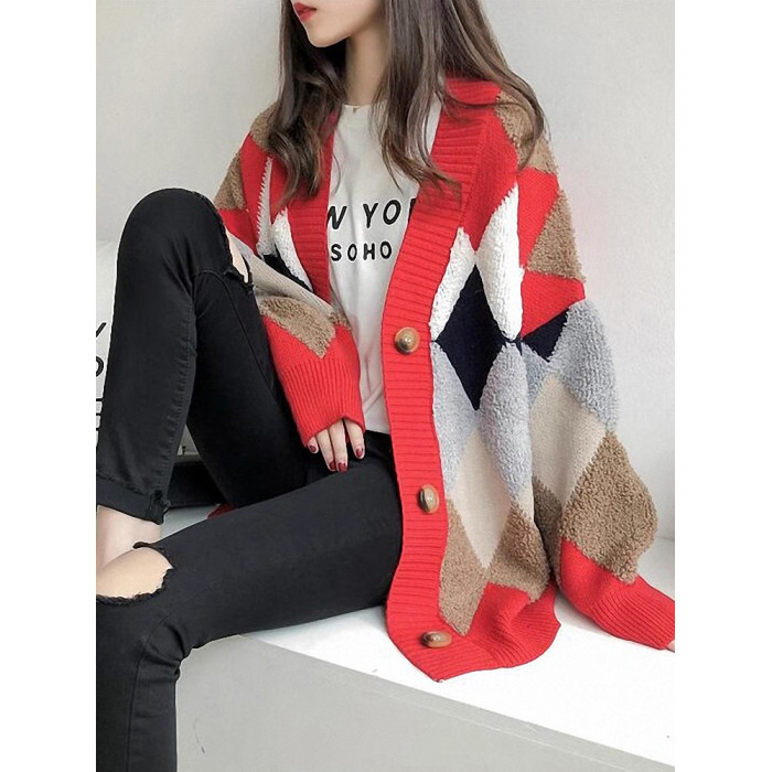 秋冬女裝批新款髮洋氣學生寬松開衫BF慵懶風外穿中長款毛衣外套潮