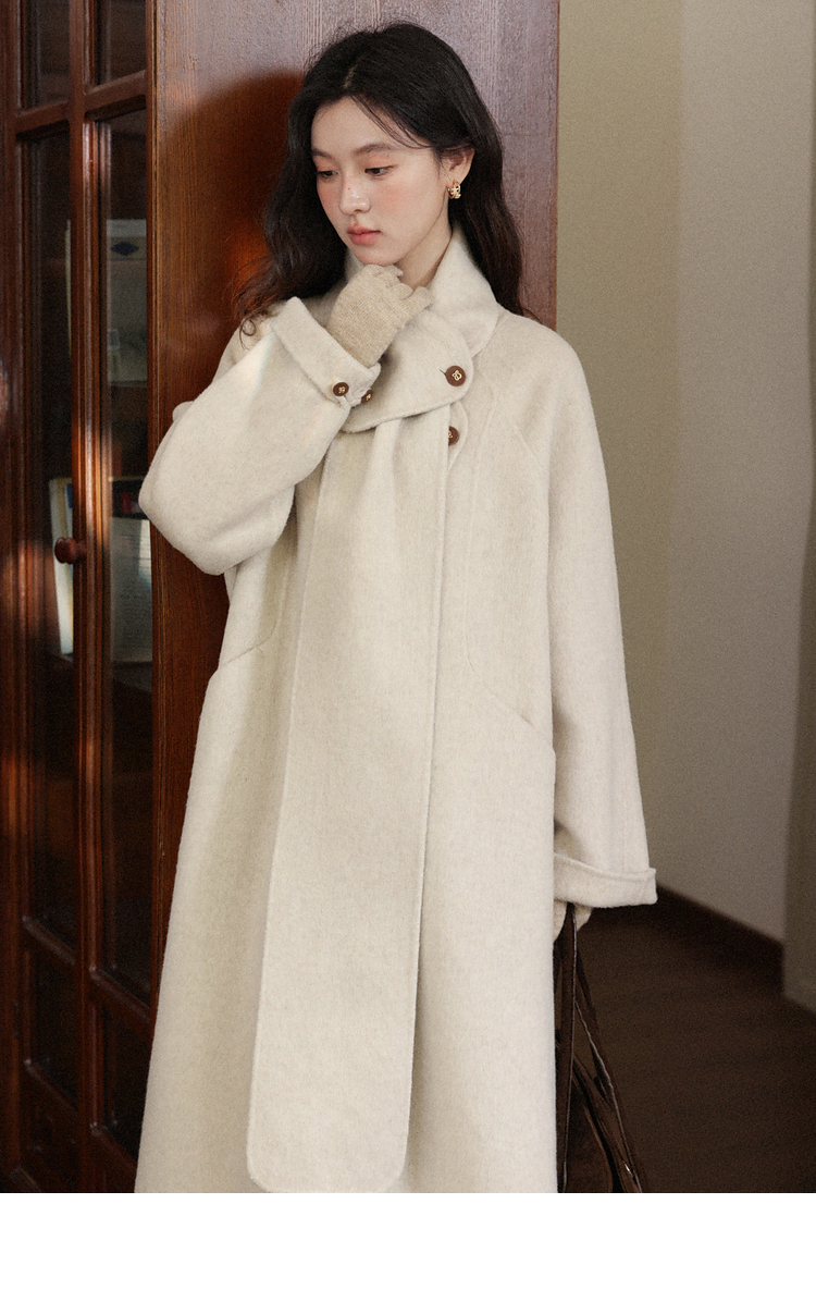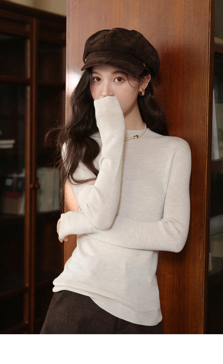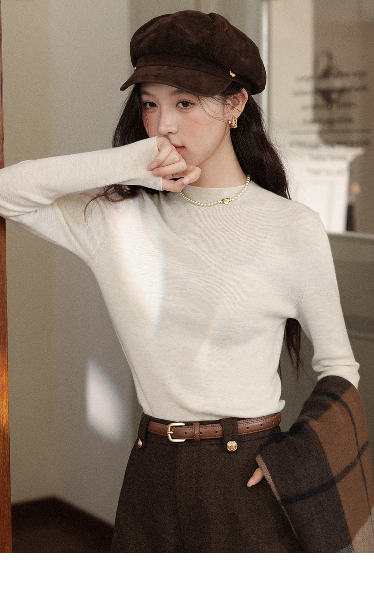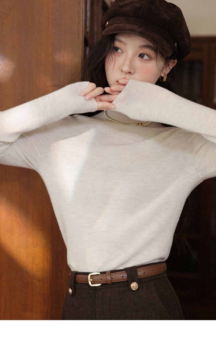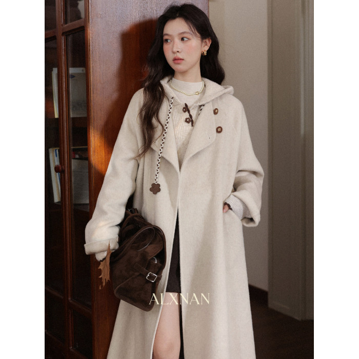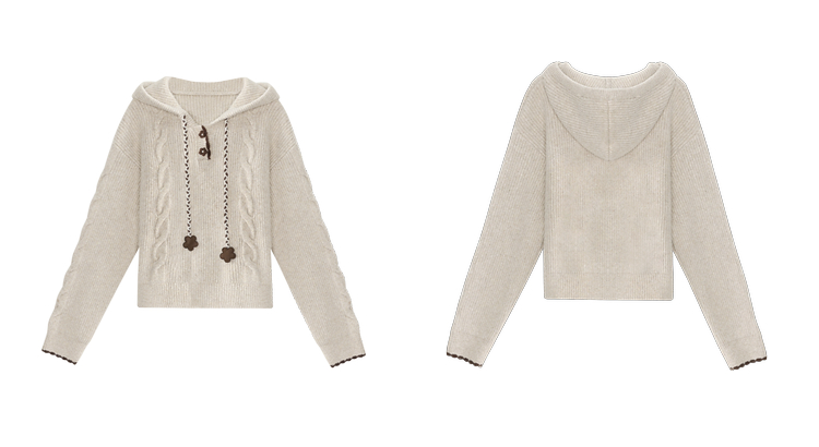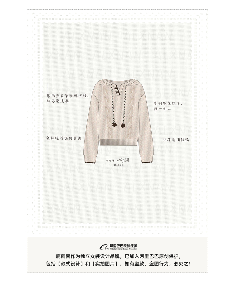 鹿向南「雪頂咖啡」杏色套頭針織毛衣女秋冬慵懶寬松長袖連帽上衣