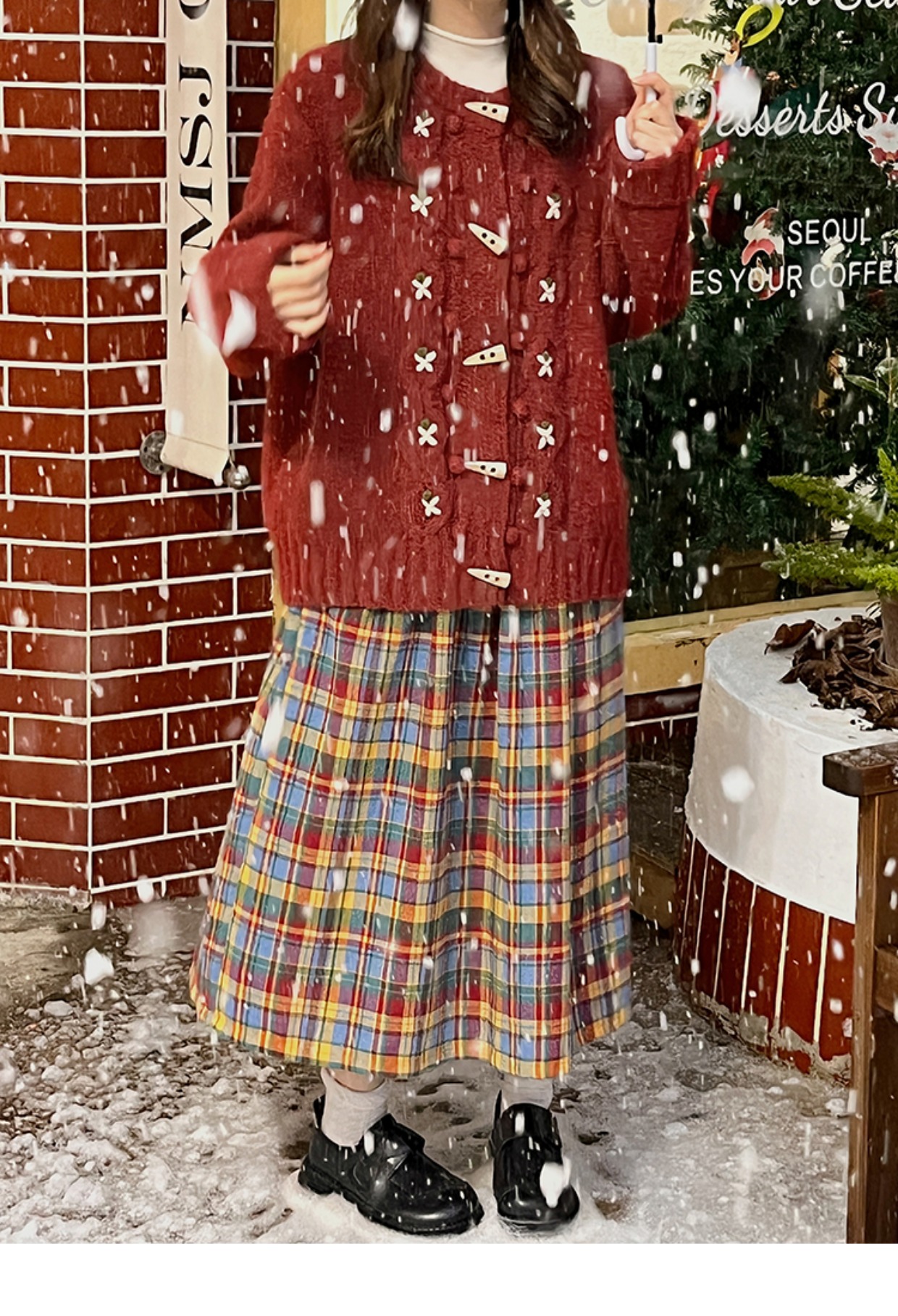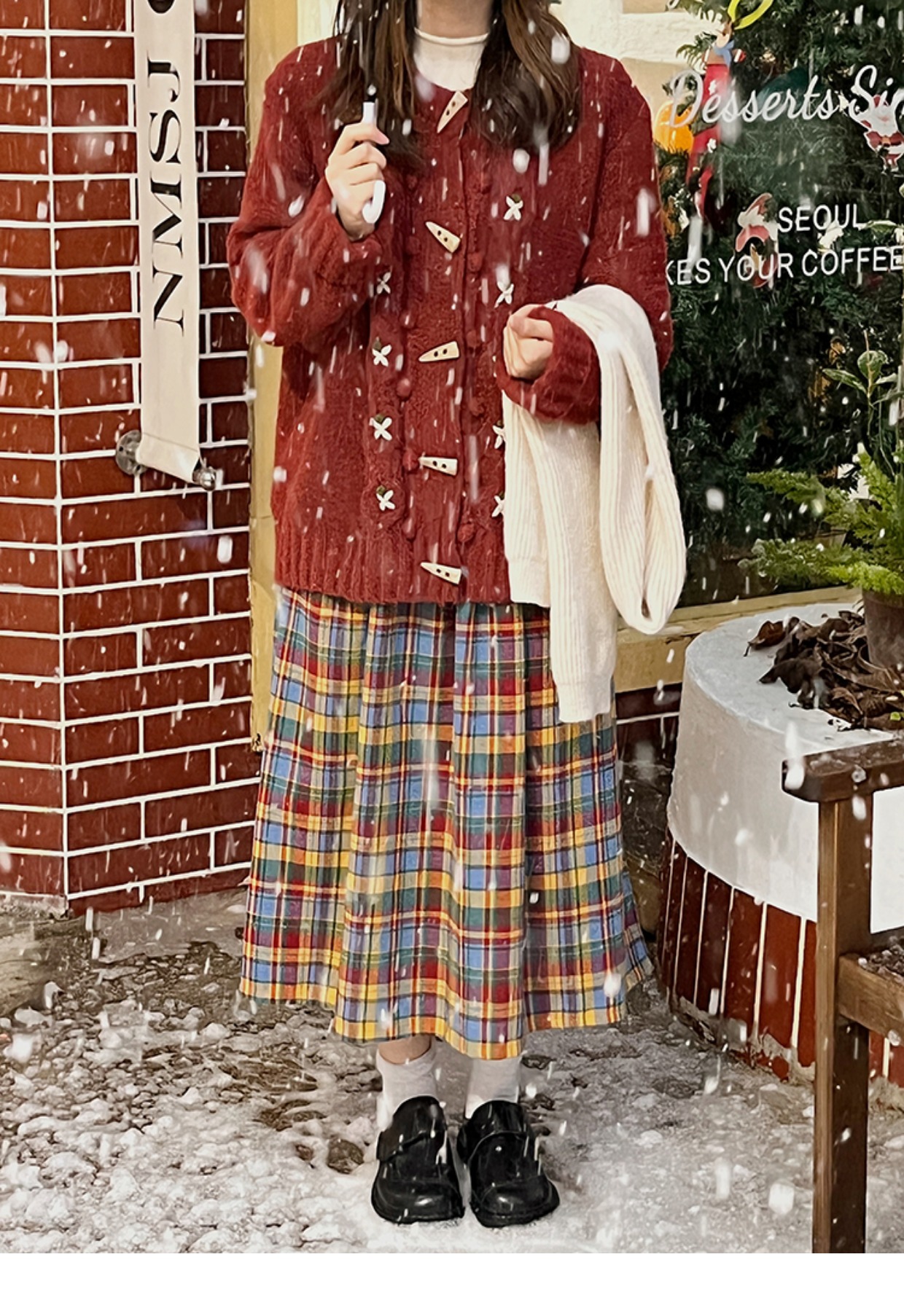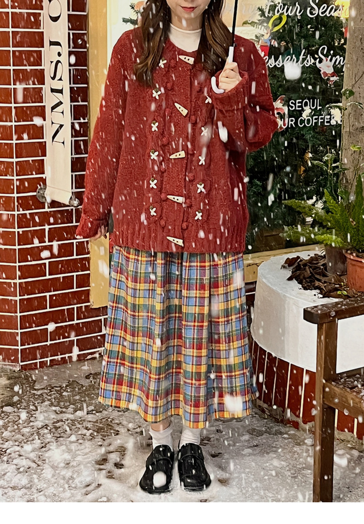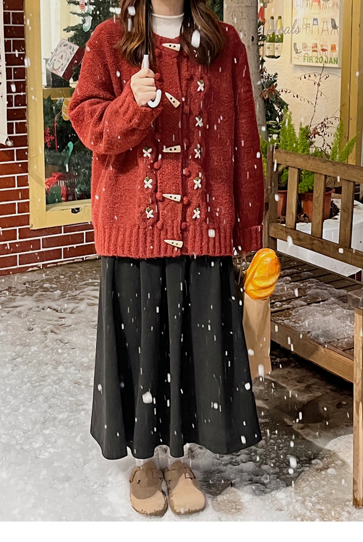 踏進銀河 日系復古刺綉牛角釦毛衣開衫小個子新年紅色甜美針織衫