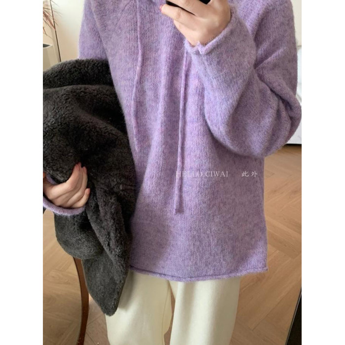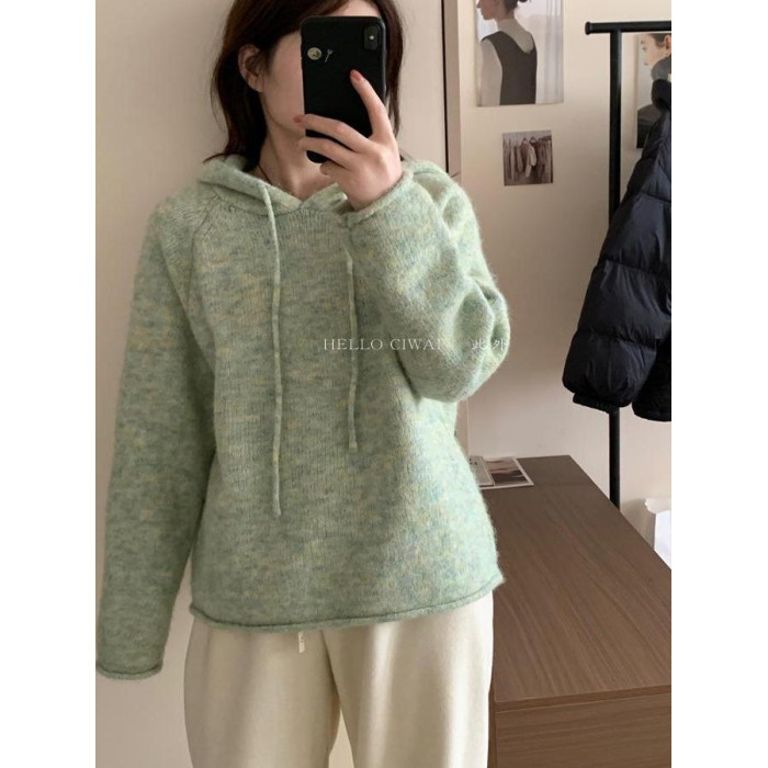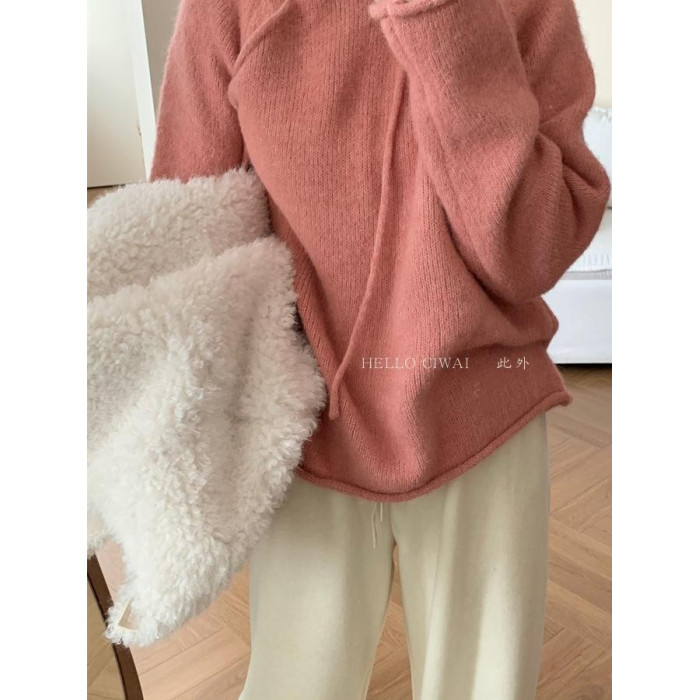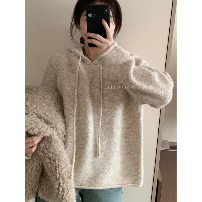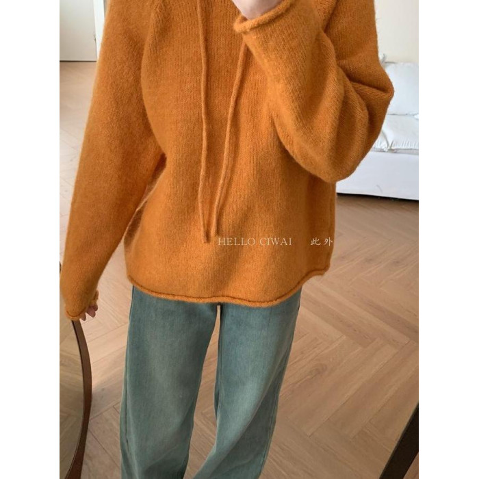 韓系2025冬季新款連帽慵懶風軟糯毛衣女寬松百搭針織衫打底