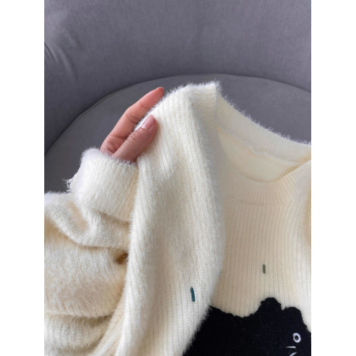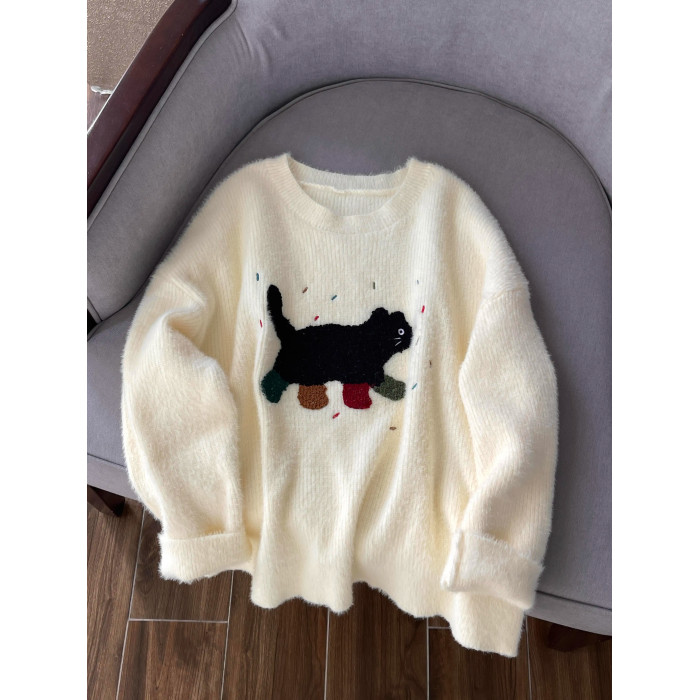 聖誕立體小貓刺綉毛衣2025秋冬季新款女裝短款針織衫寬松長袖上衣