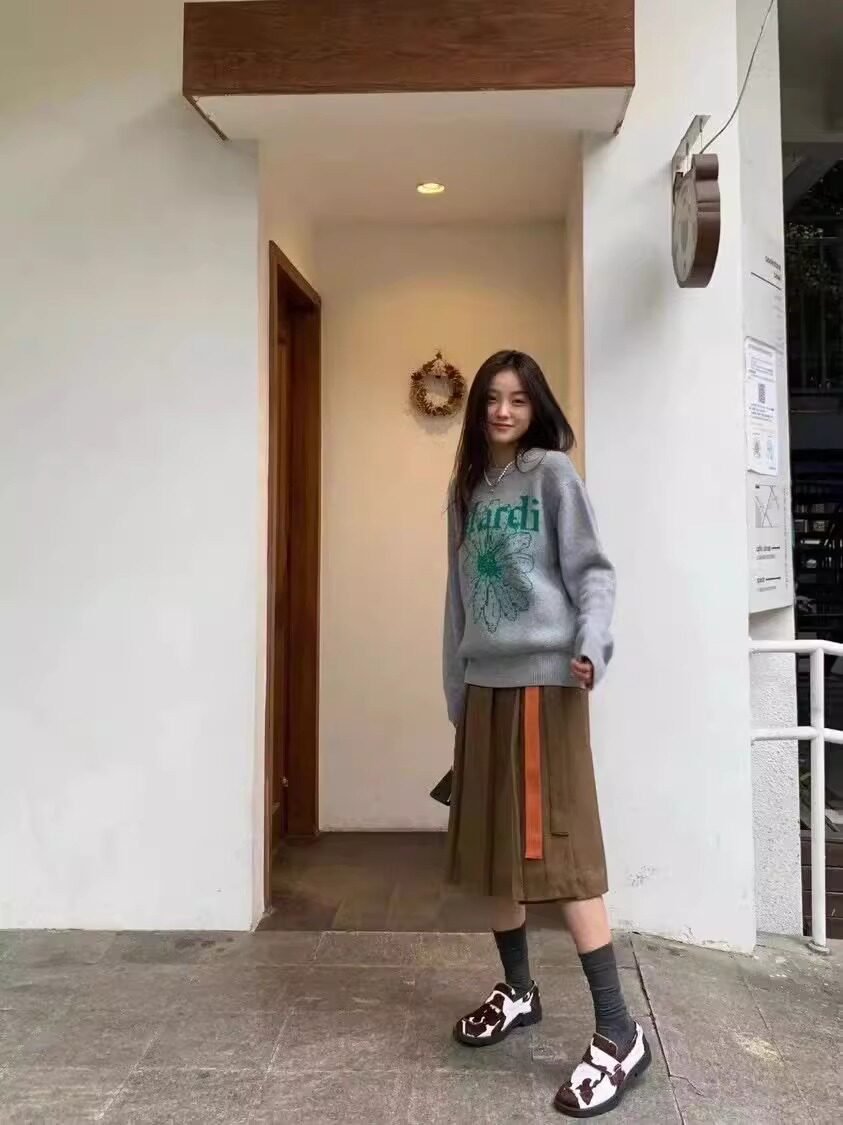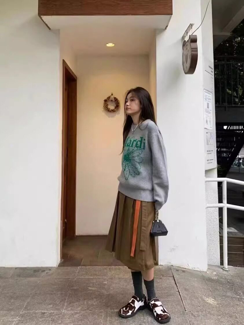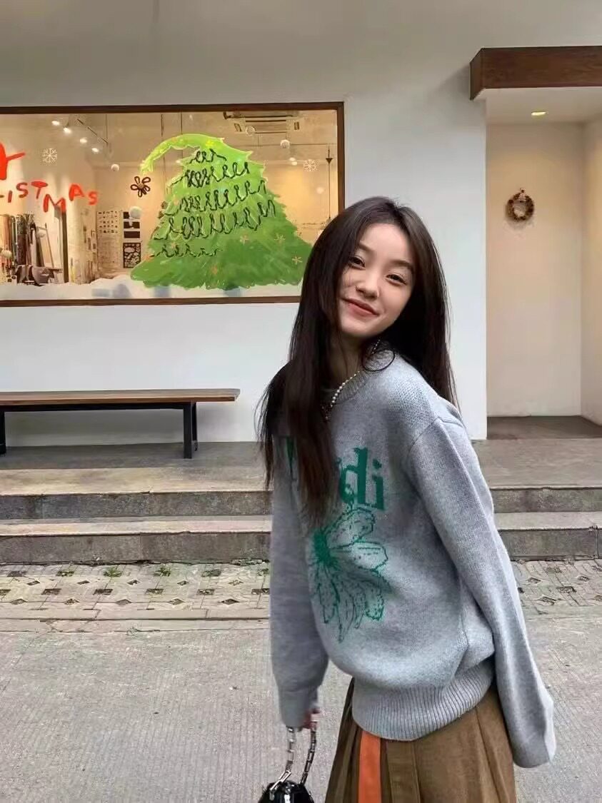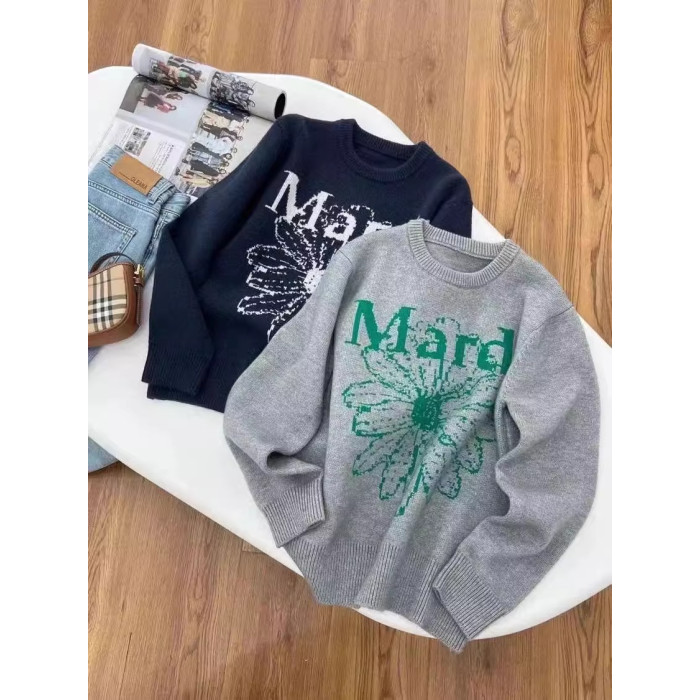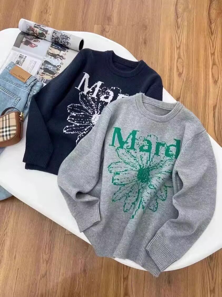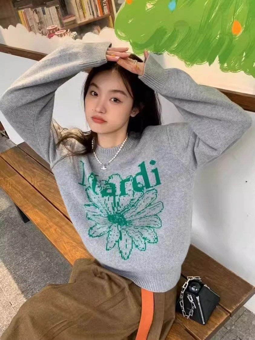 韓國軟糯提花小雛菊針織衫毛衣女秋冬慵嬾風圓領寬鬆套頭上衣外套