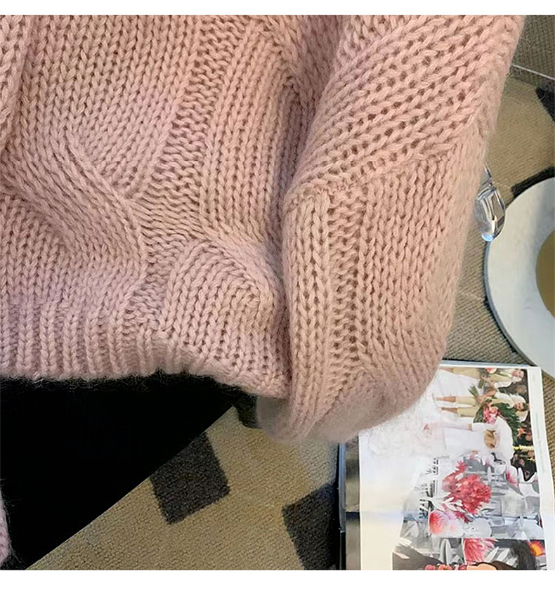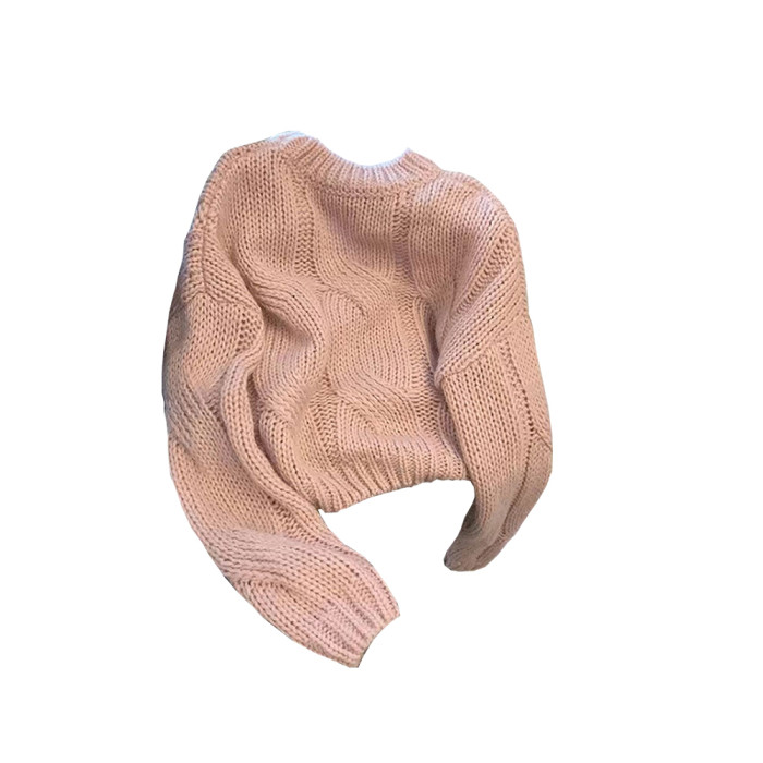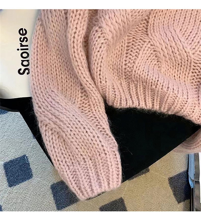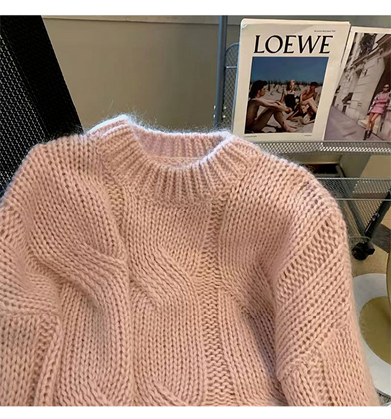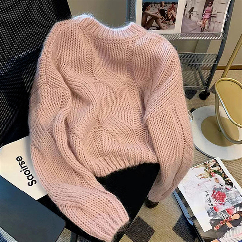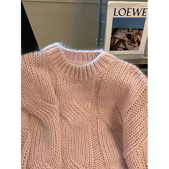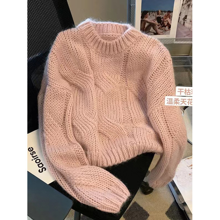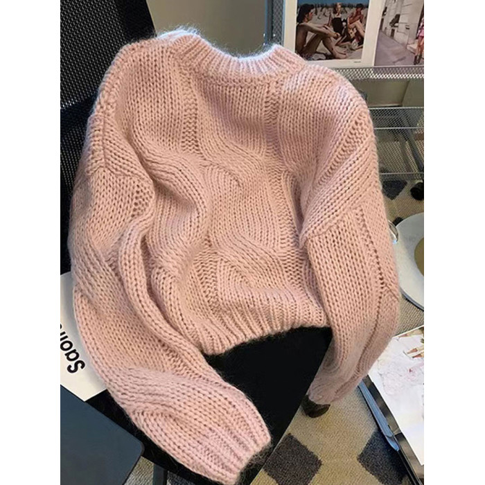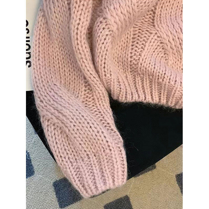 早秋2025新款爆款小個子慵懶風套頭毛衣粉色針織女高級感上衣秋冬