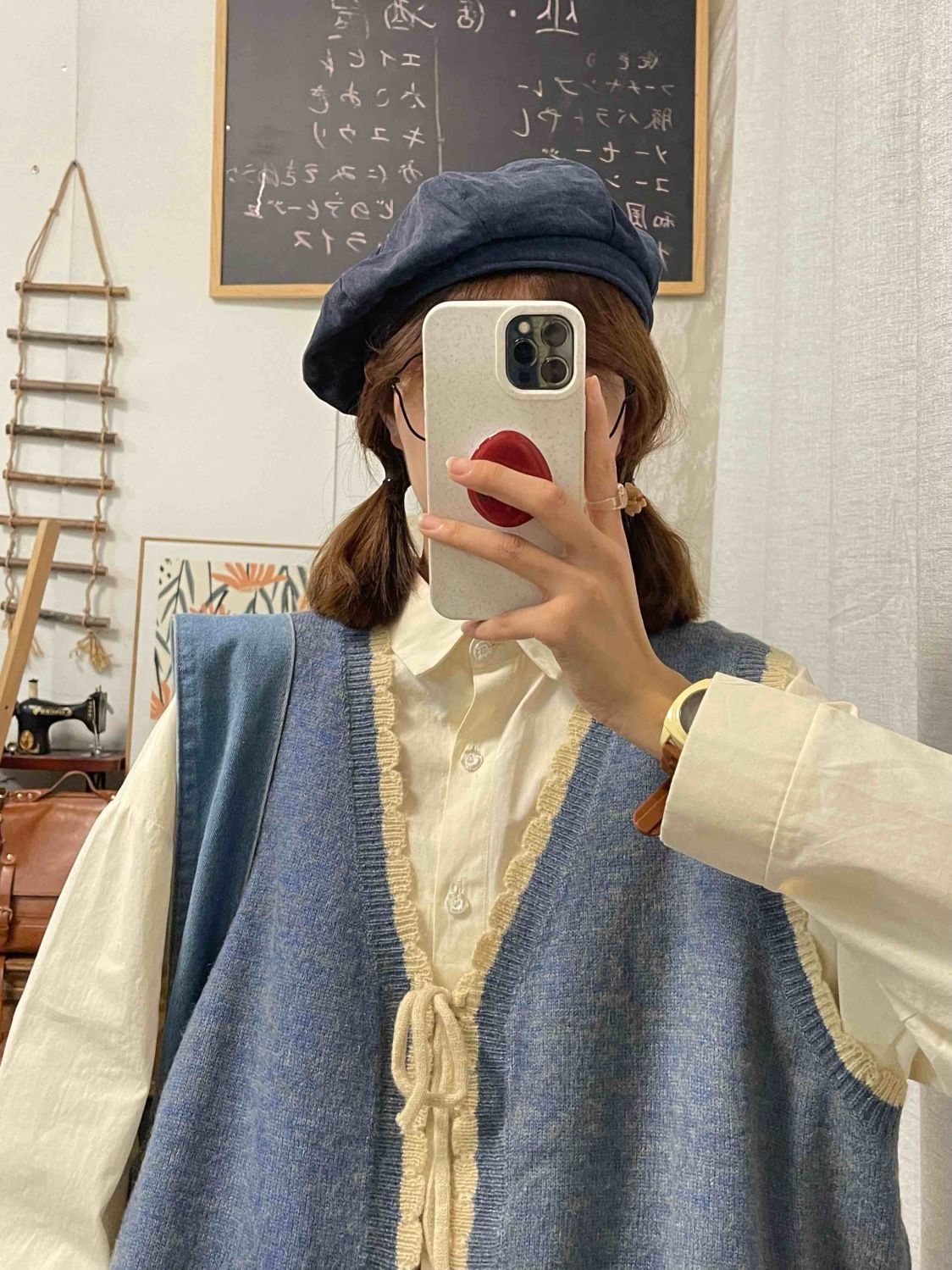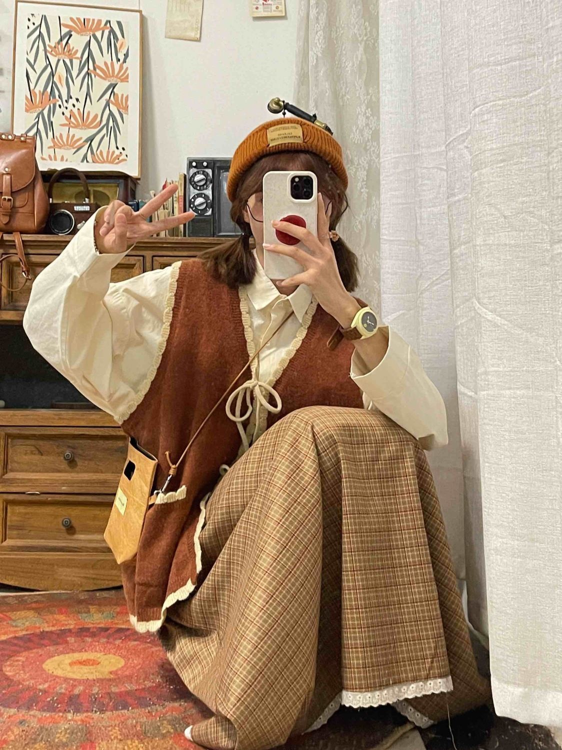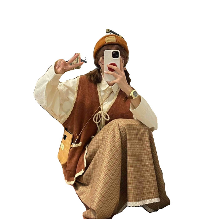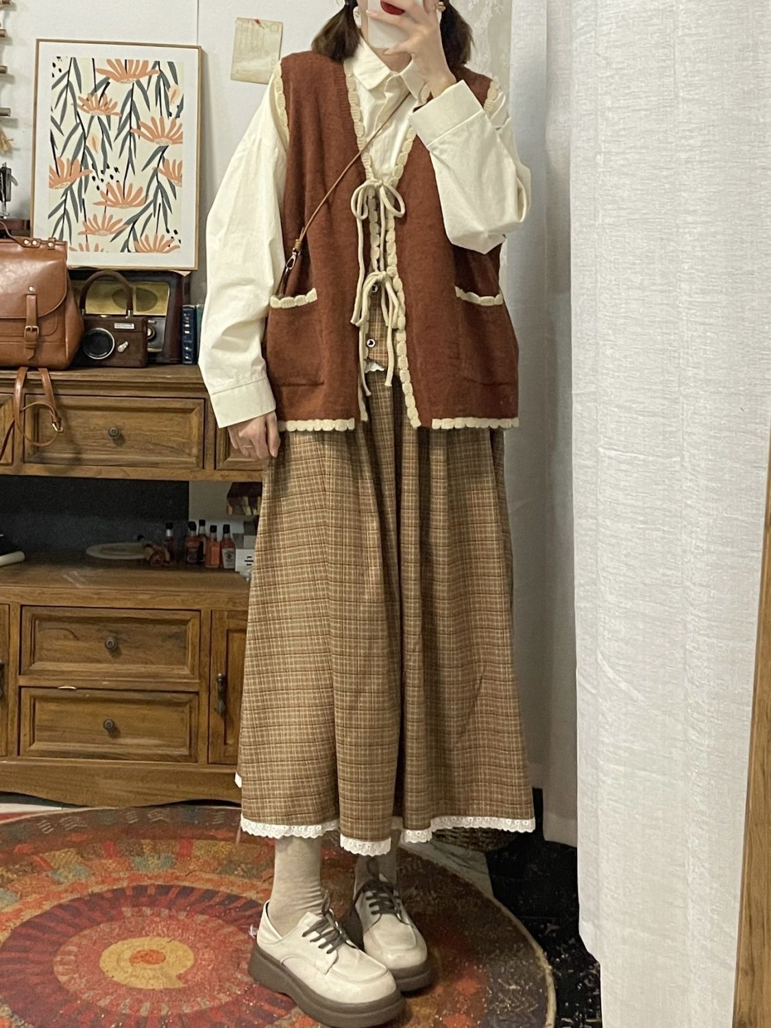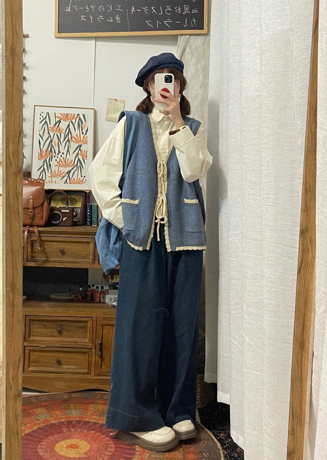 胖MM200斤特大碼套裝日系小衆綁帶馬甲小個子針織毛衣背心兩件套