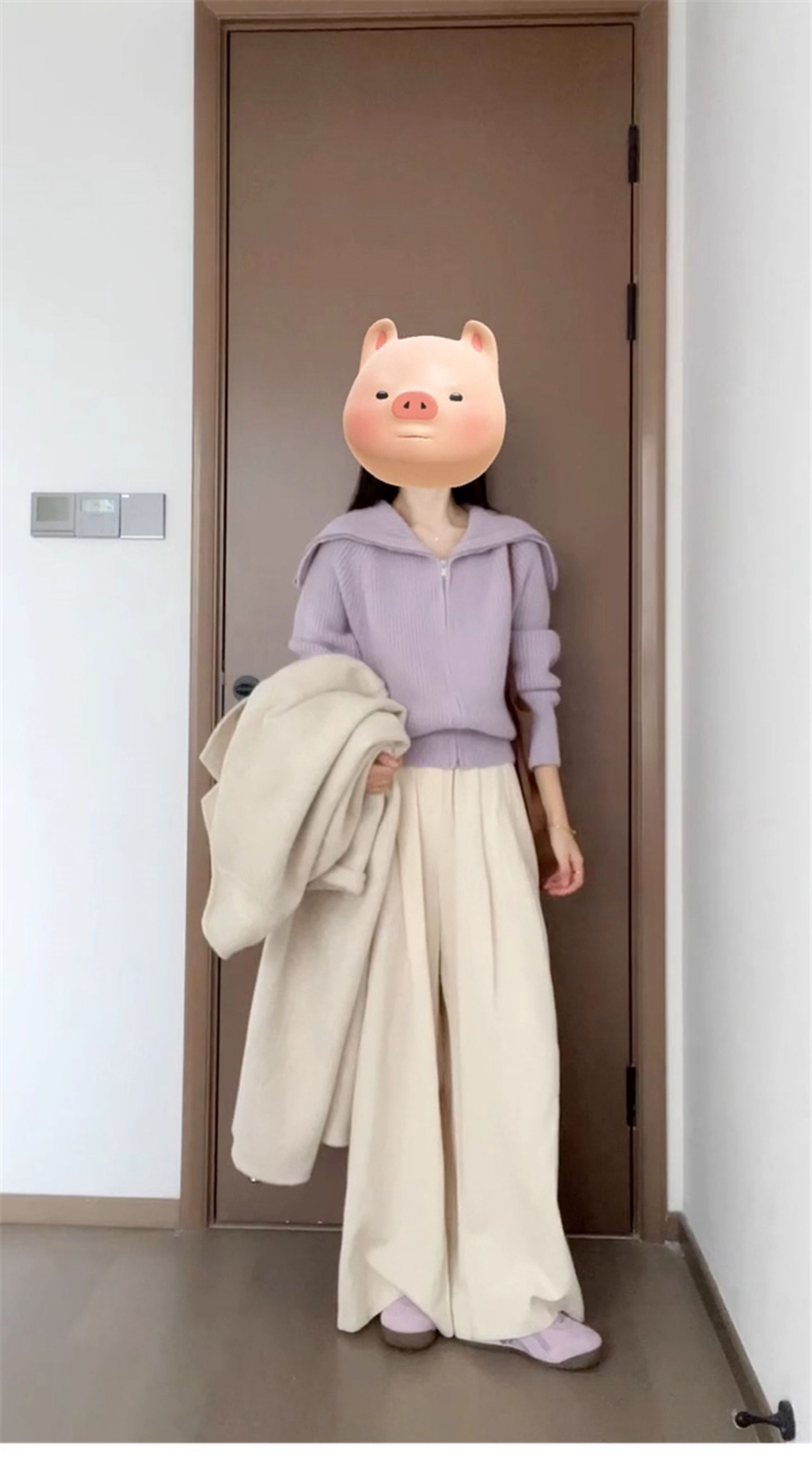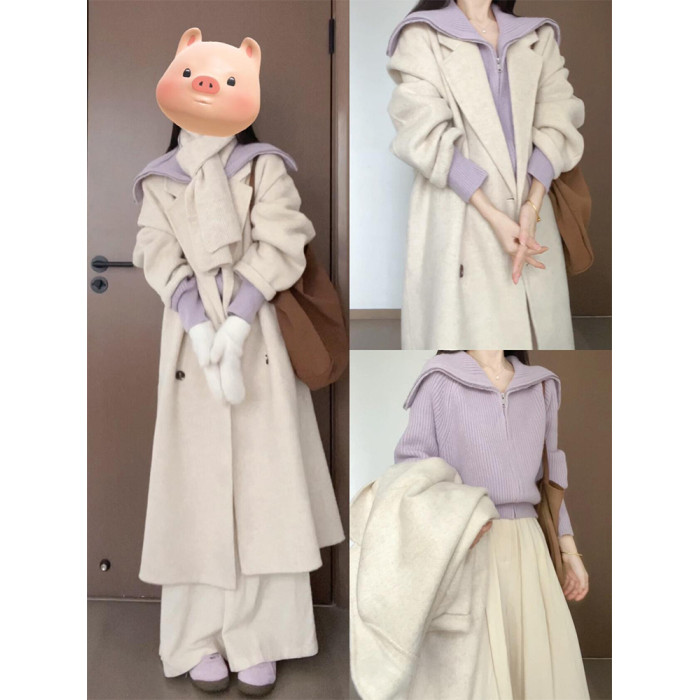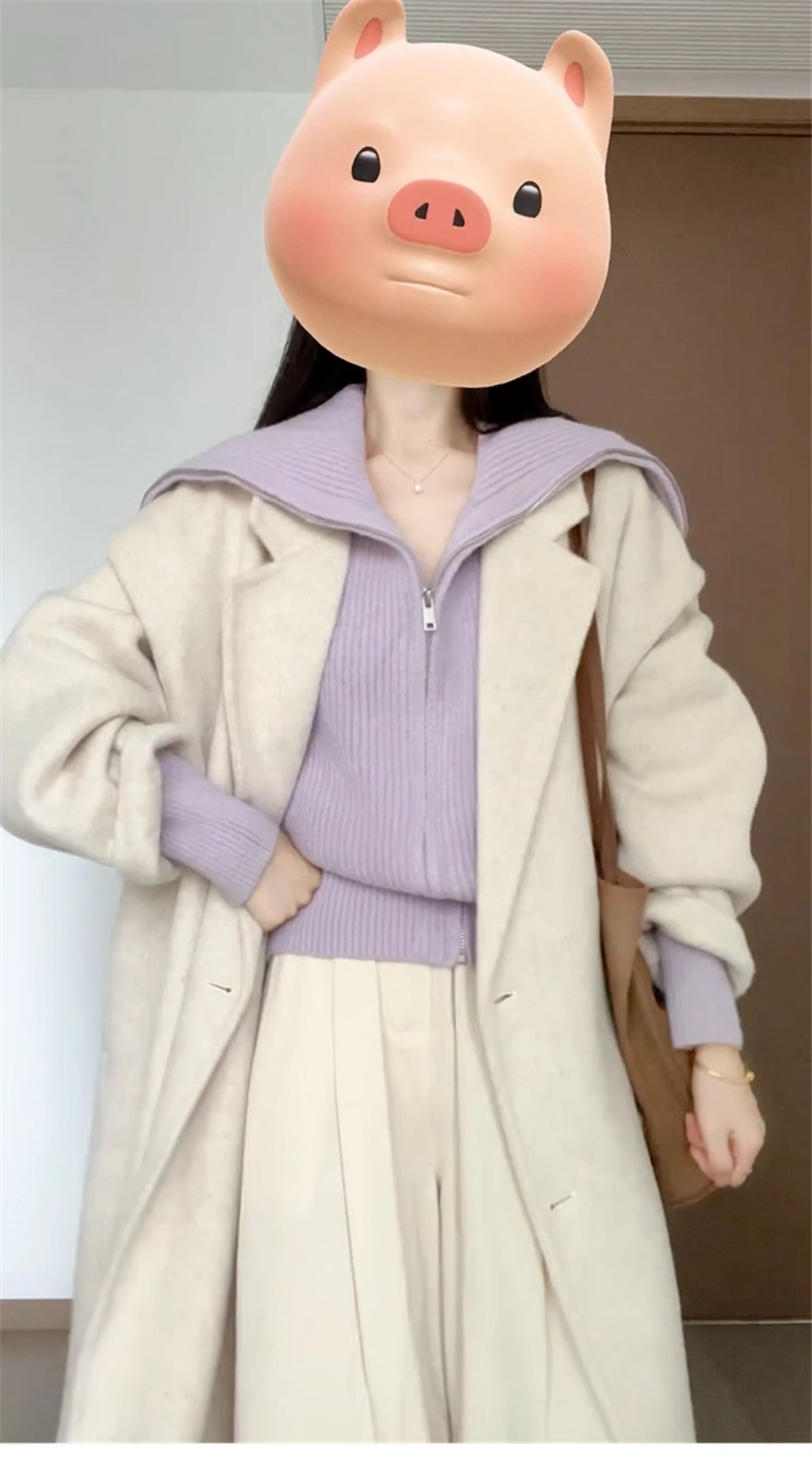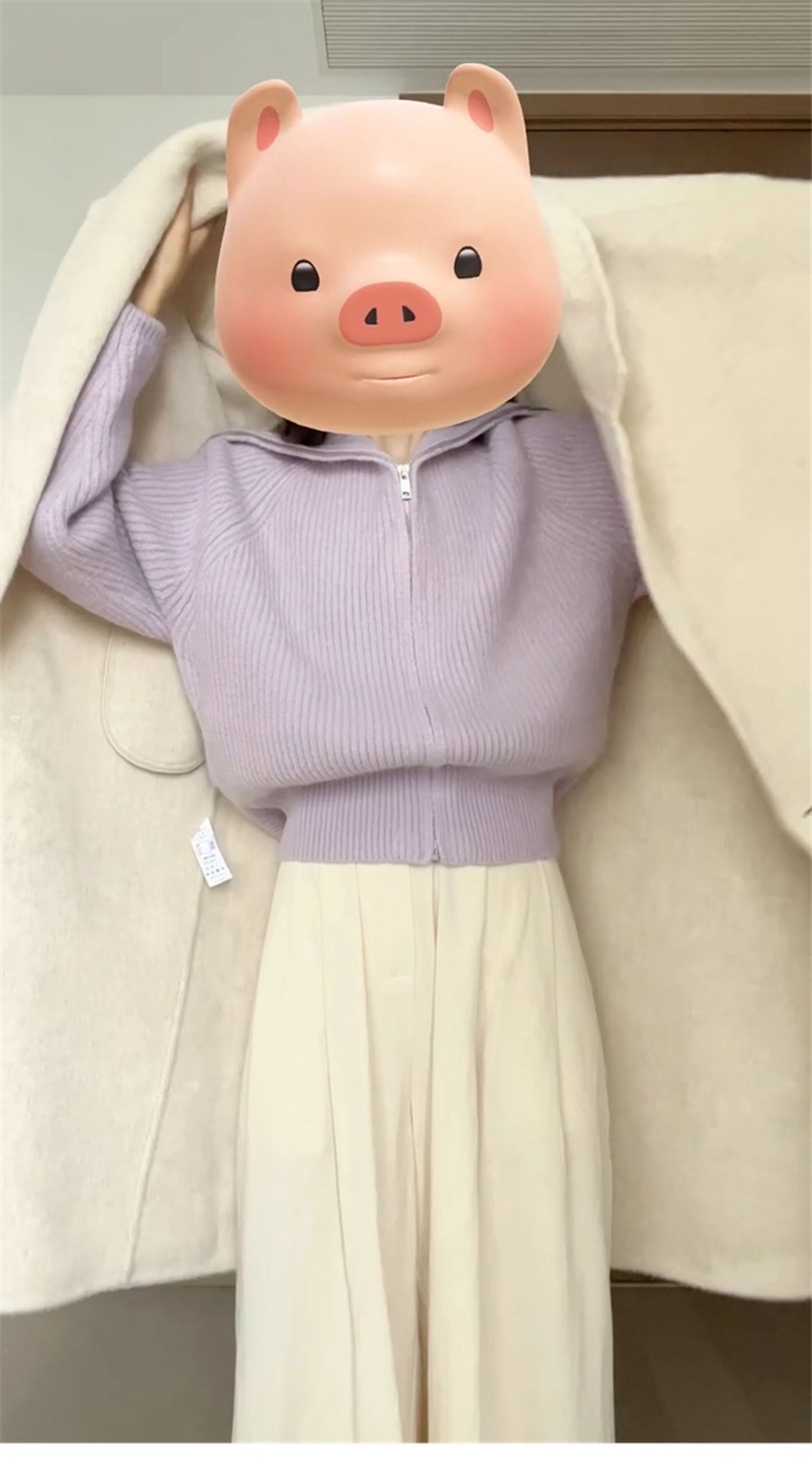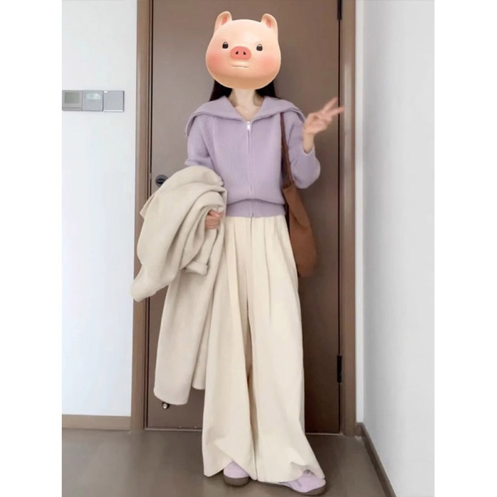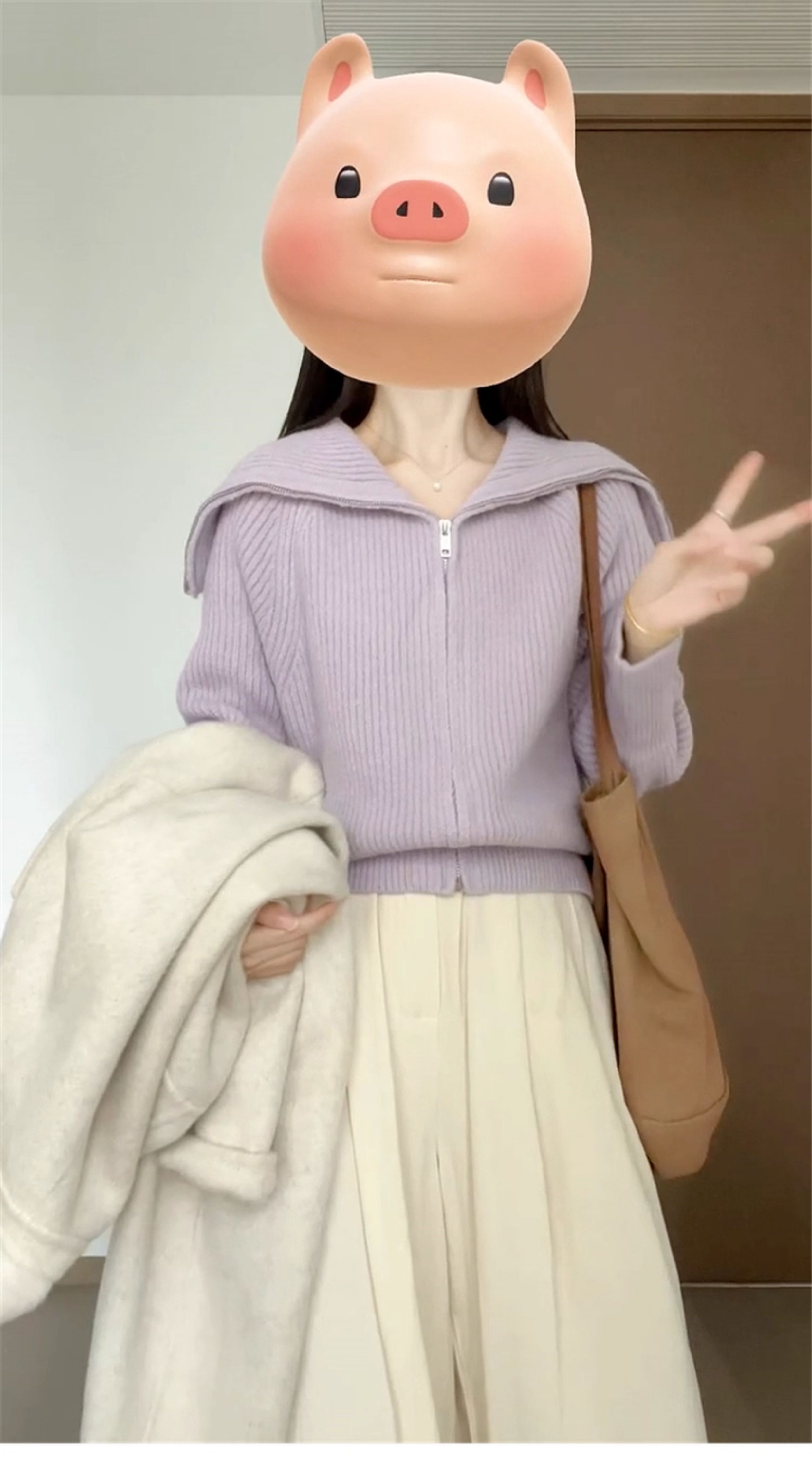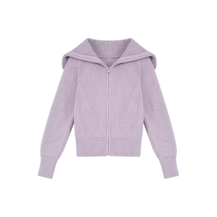 2025新款紫色翻領毛衣外套女秋冬季厚內搭高級感拉鍊針織開衫上衣