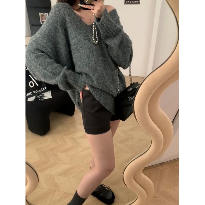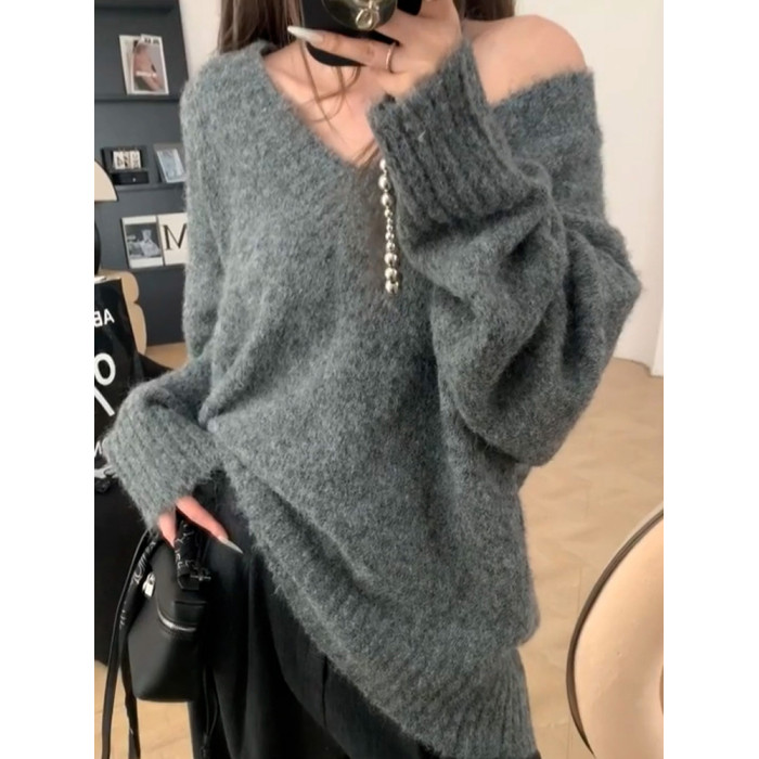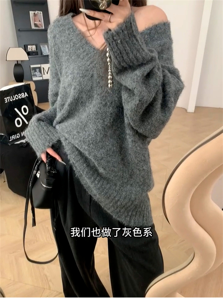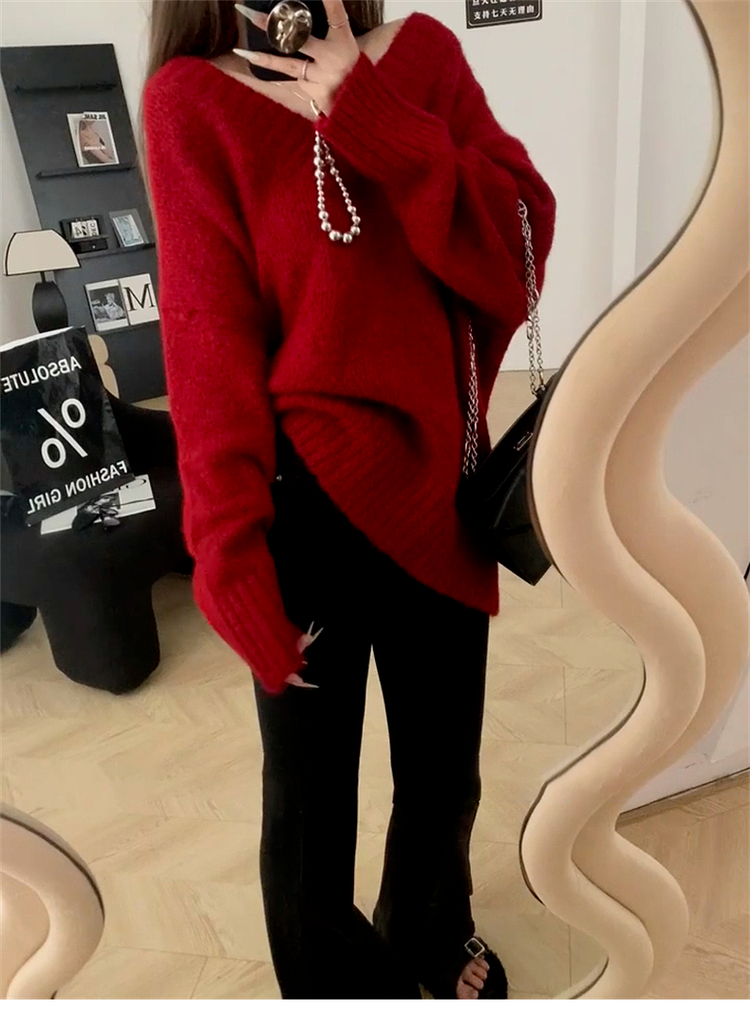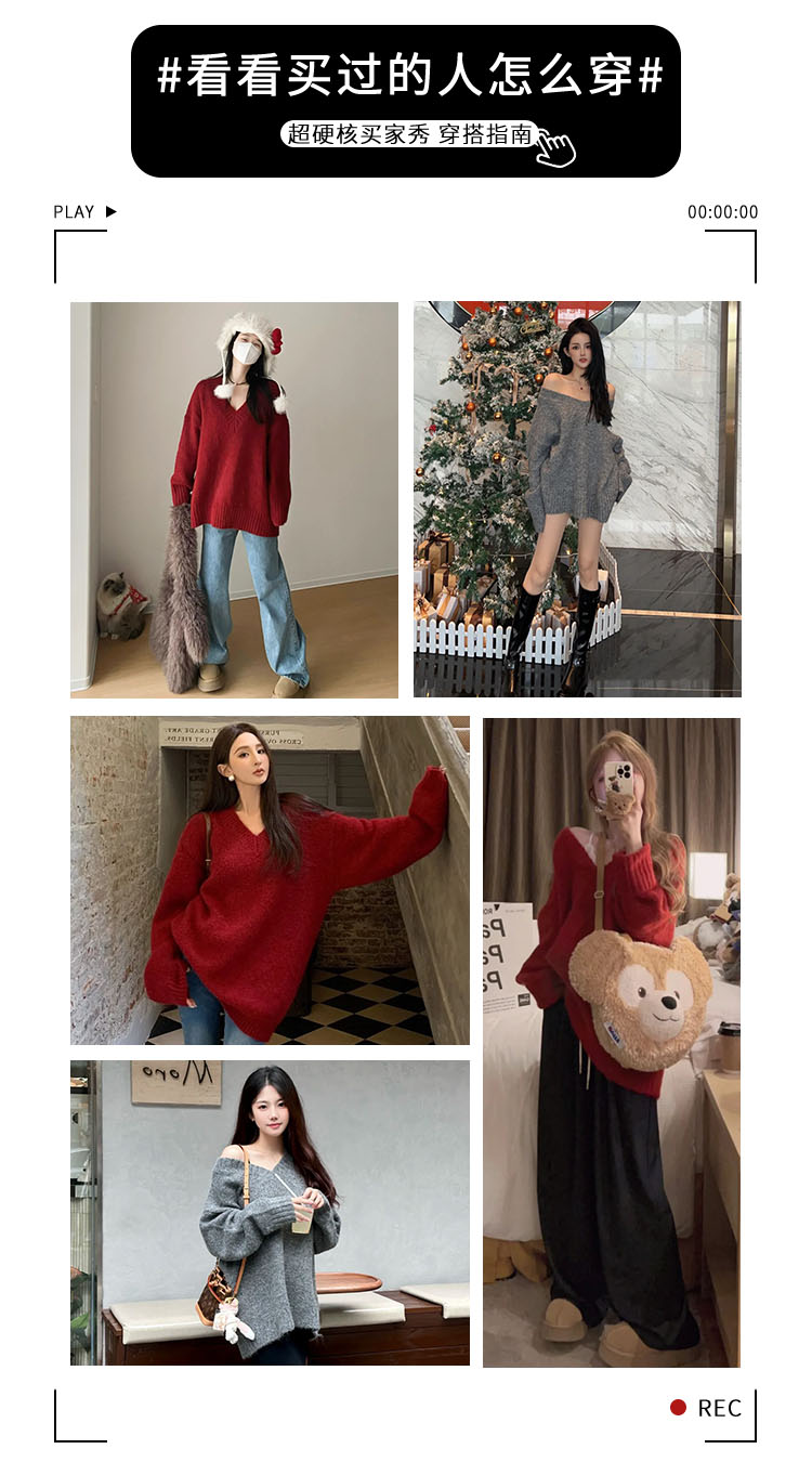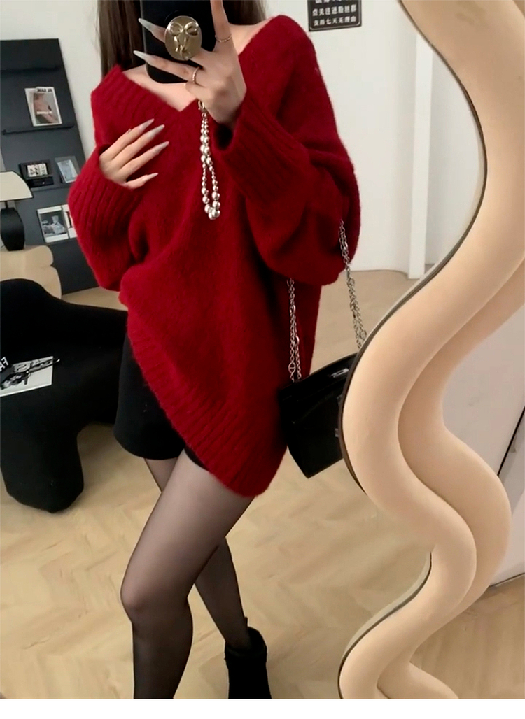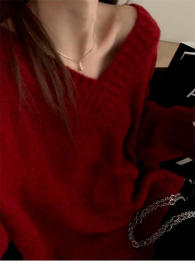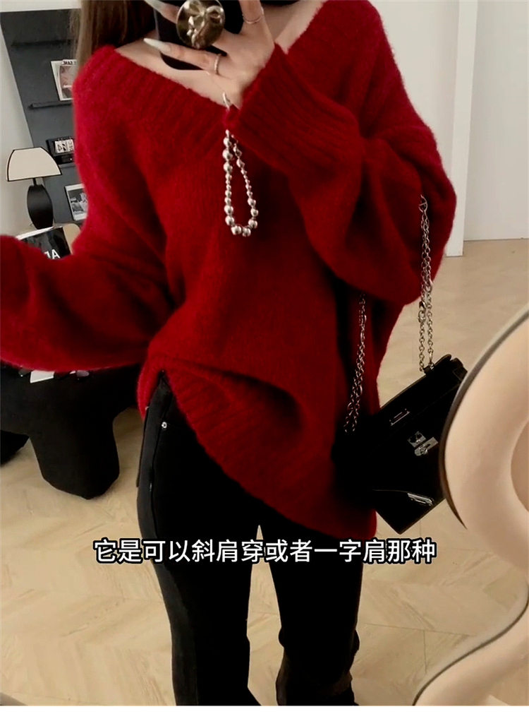聖誕紅色v領毛衣女秋冬季2025新款慵懶風高級感寬松加厚針織上衣