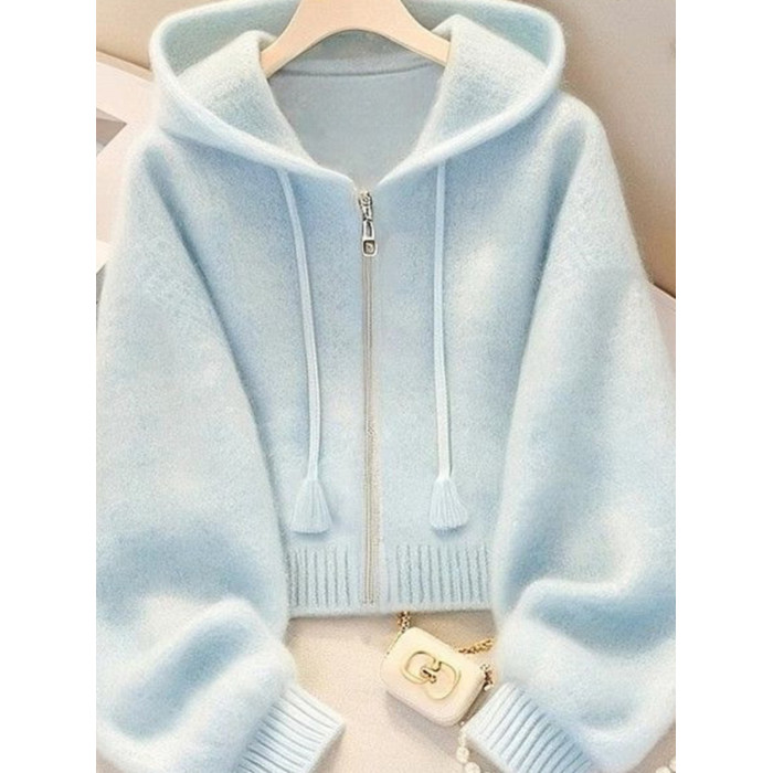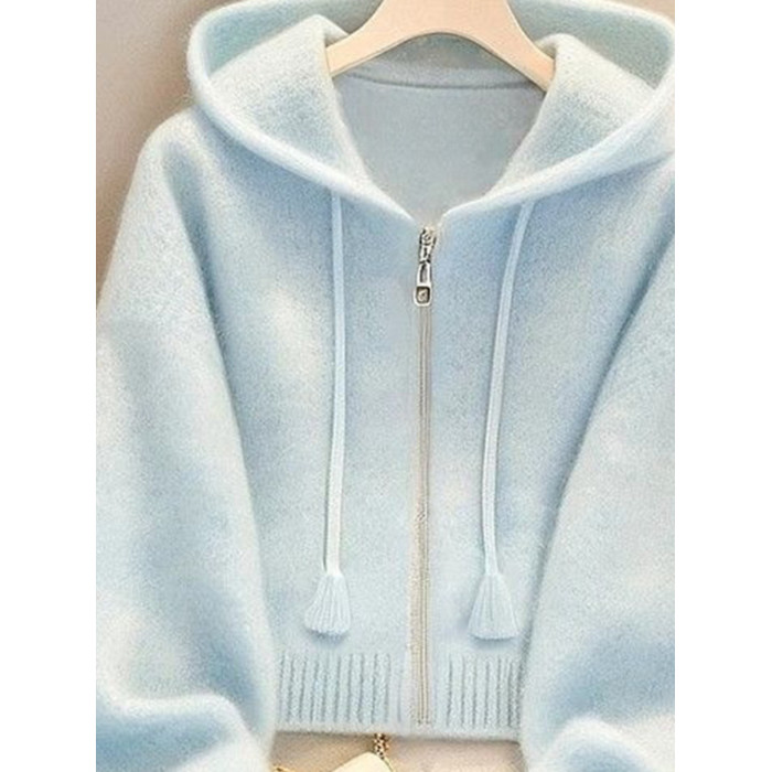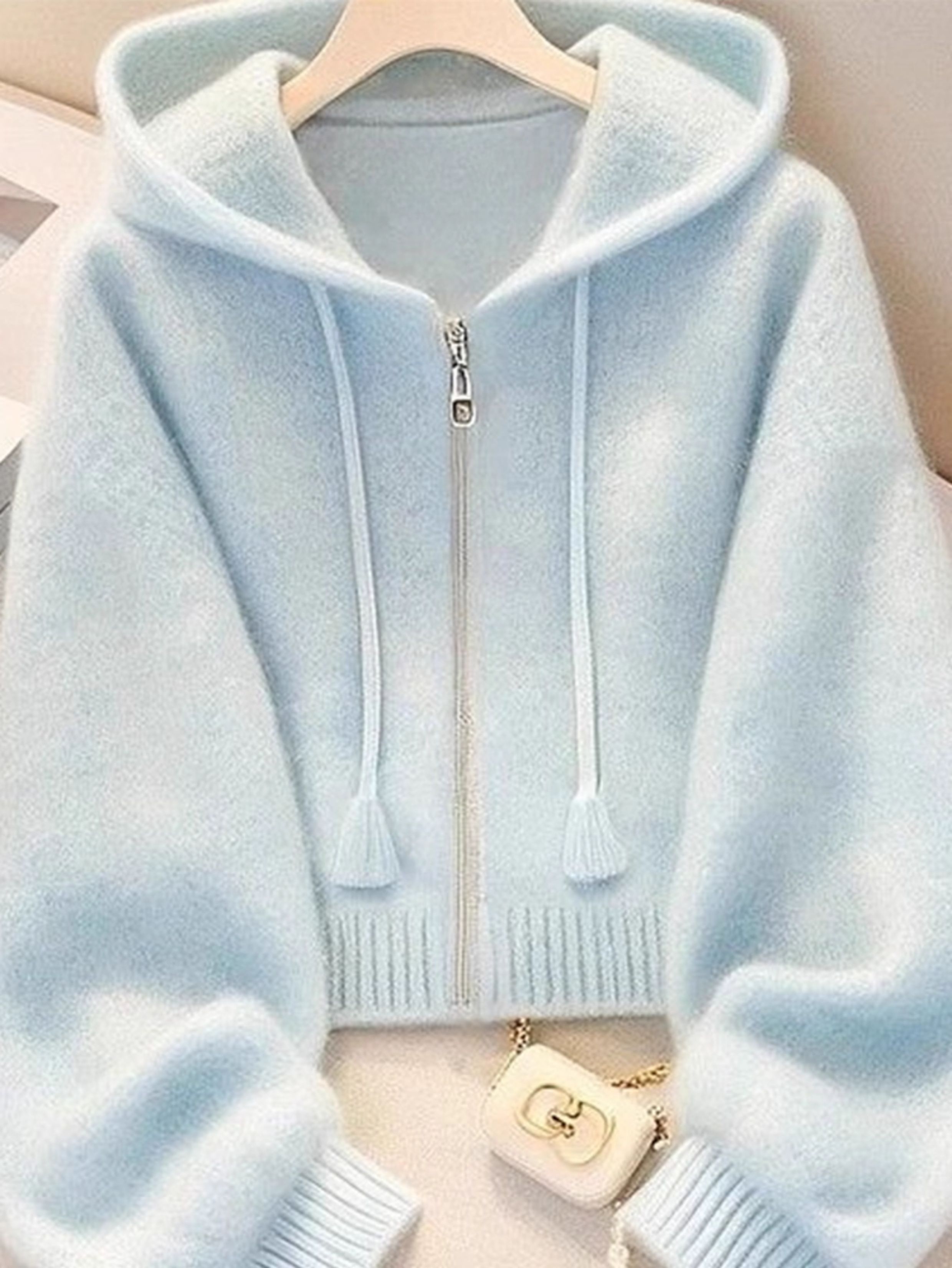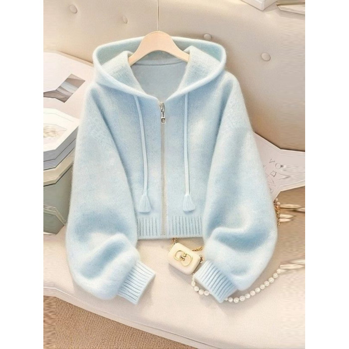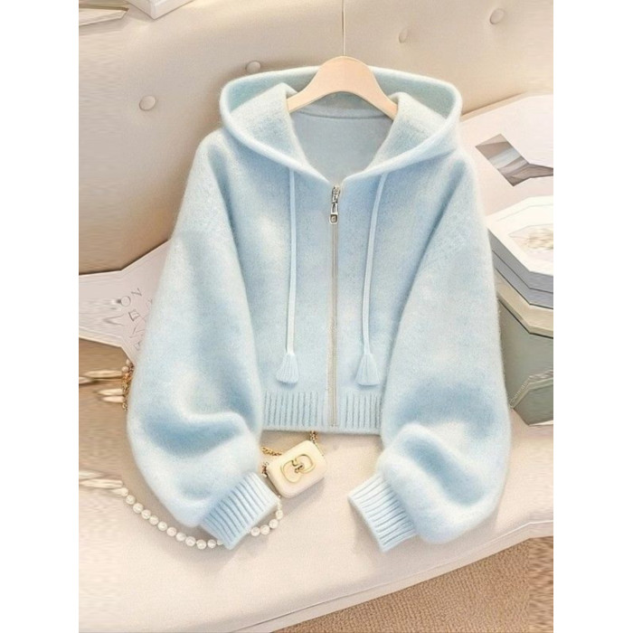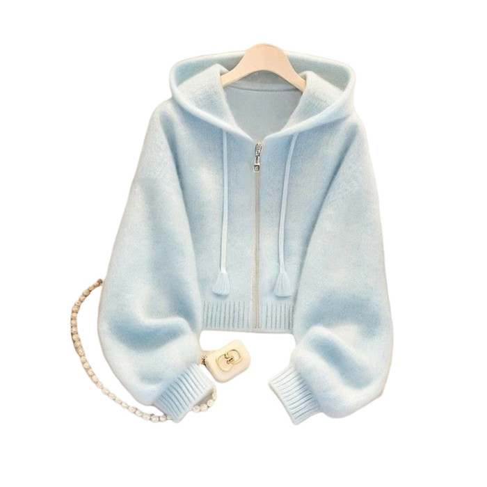 藍色連帽針織衫獨特漂亮毛衣外套女款2025早秋季多巴胺巨好看上衣