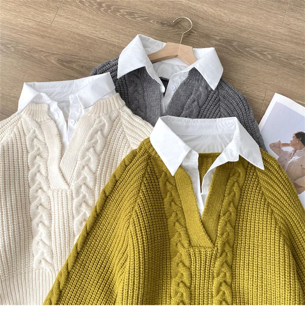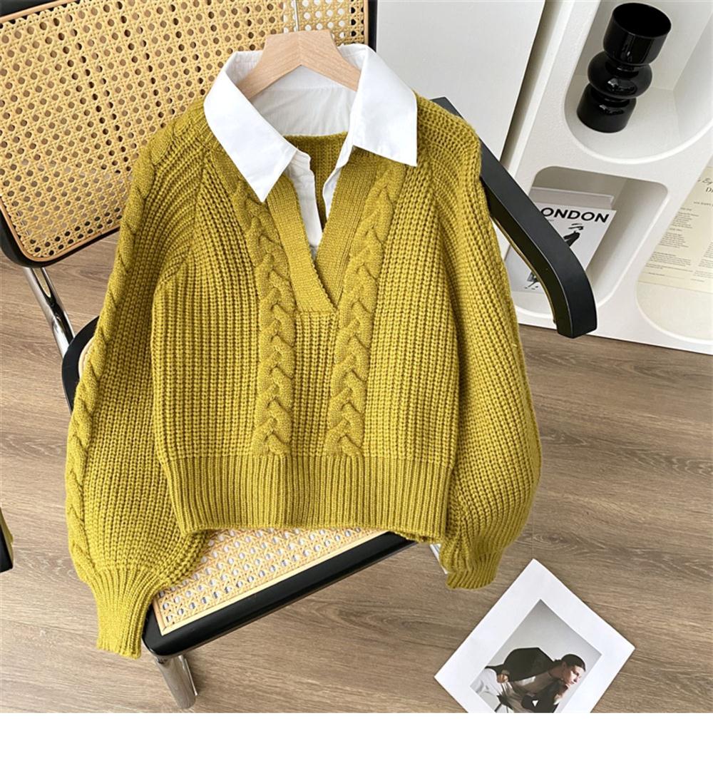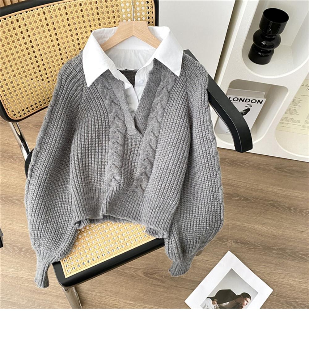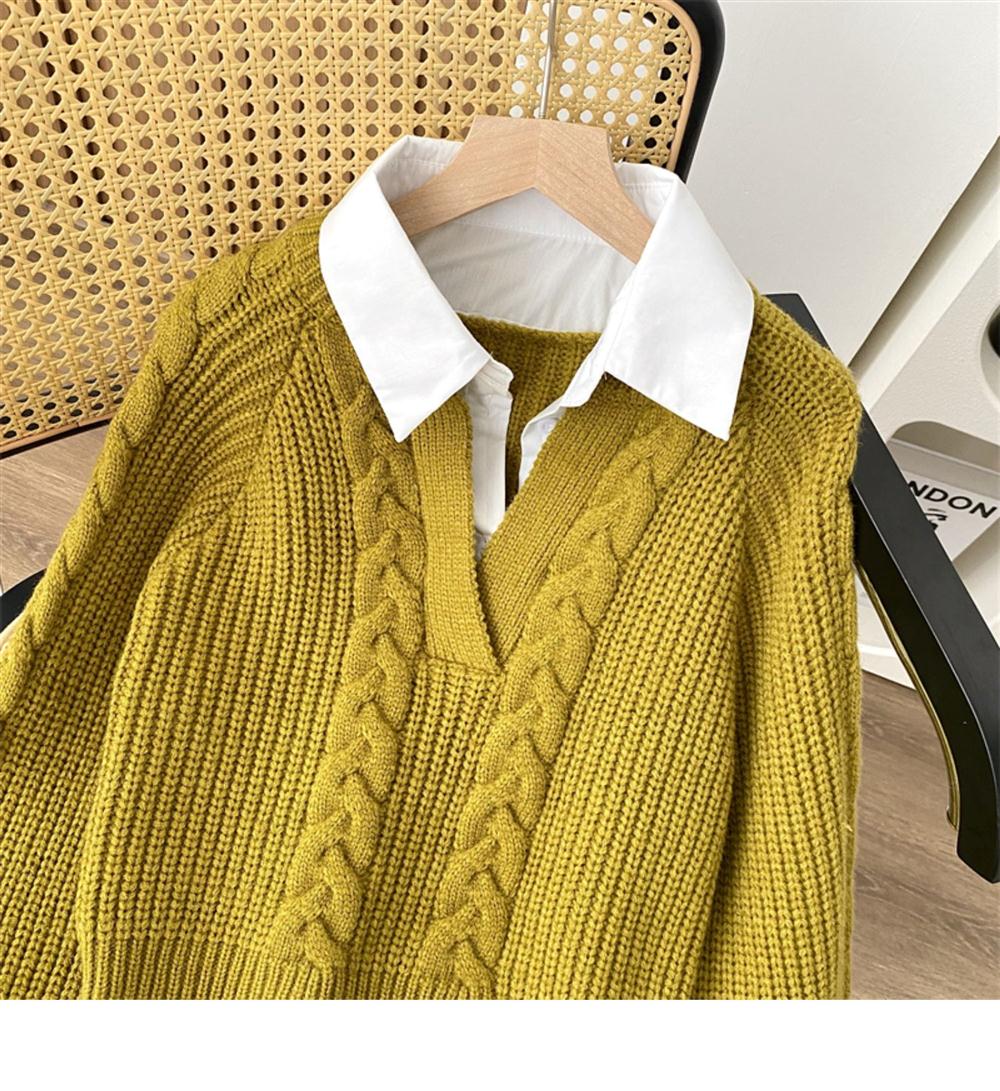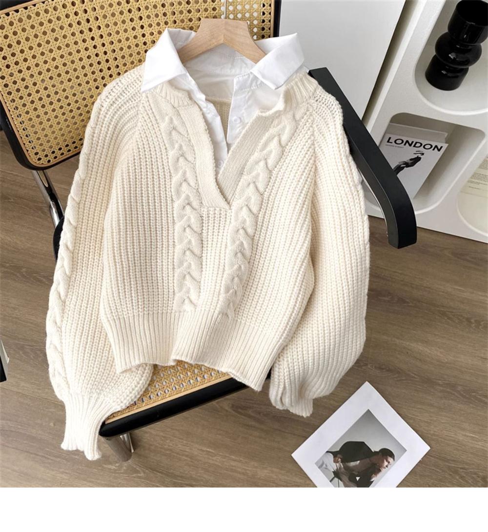 假兩件襯衫毛衣女2024秋冬新款設計感小衆翻領寬松外穿針織衫上衣