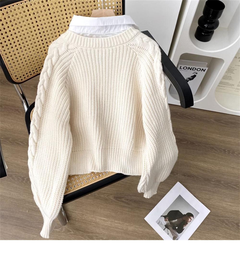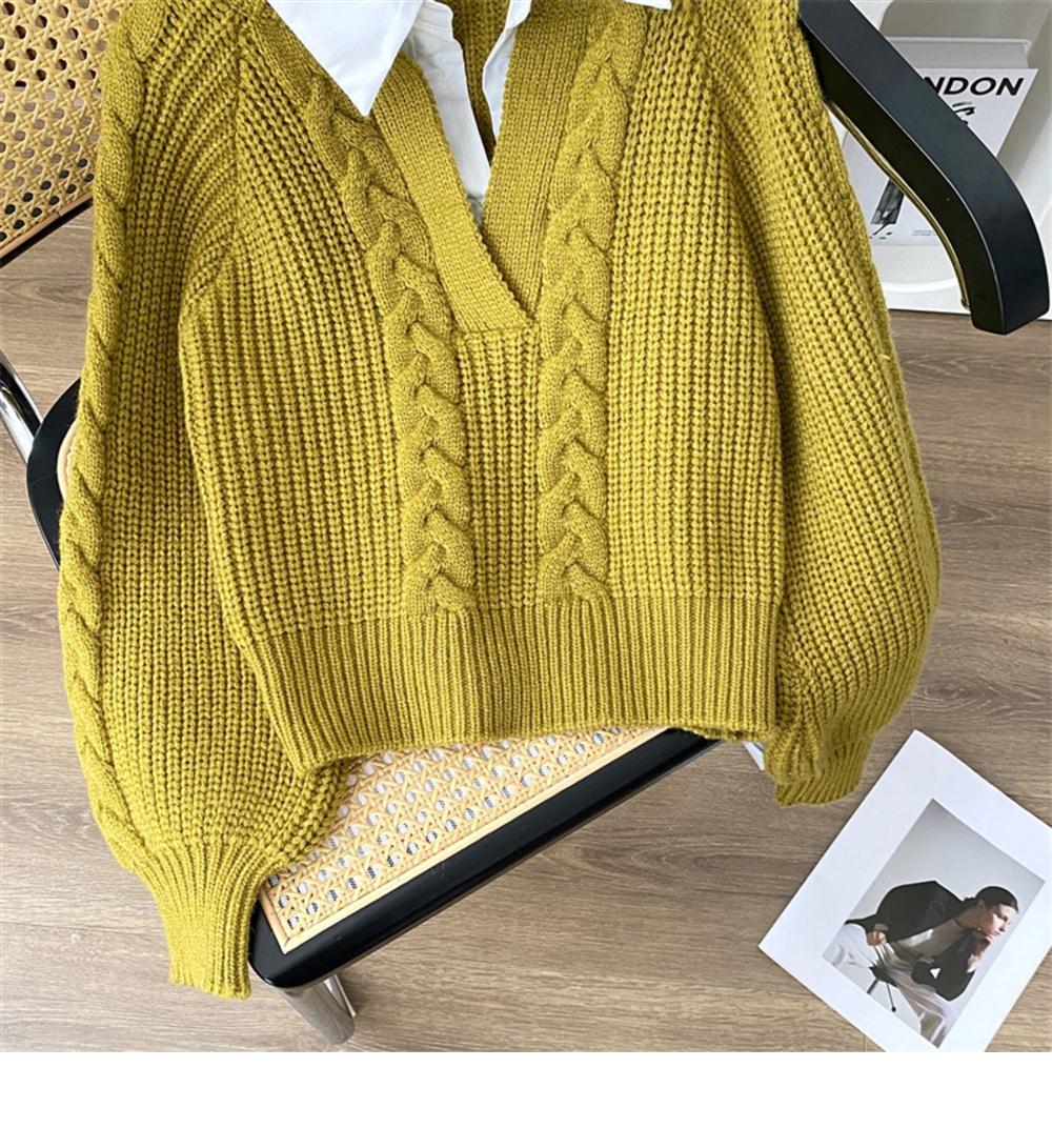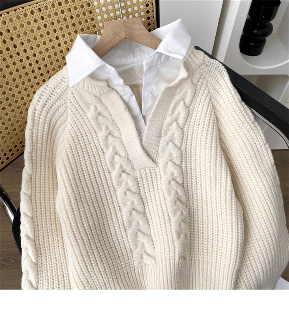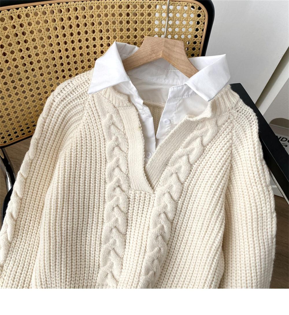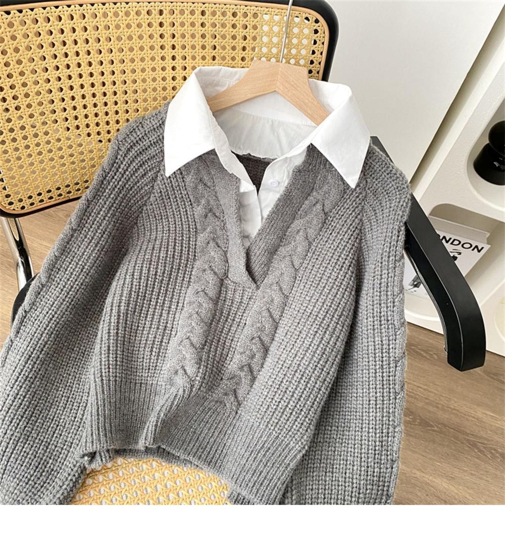 假兩件襯衫毛衣女2024秋冬新款設計感小衆翻領寬松外穿針織衫上衣