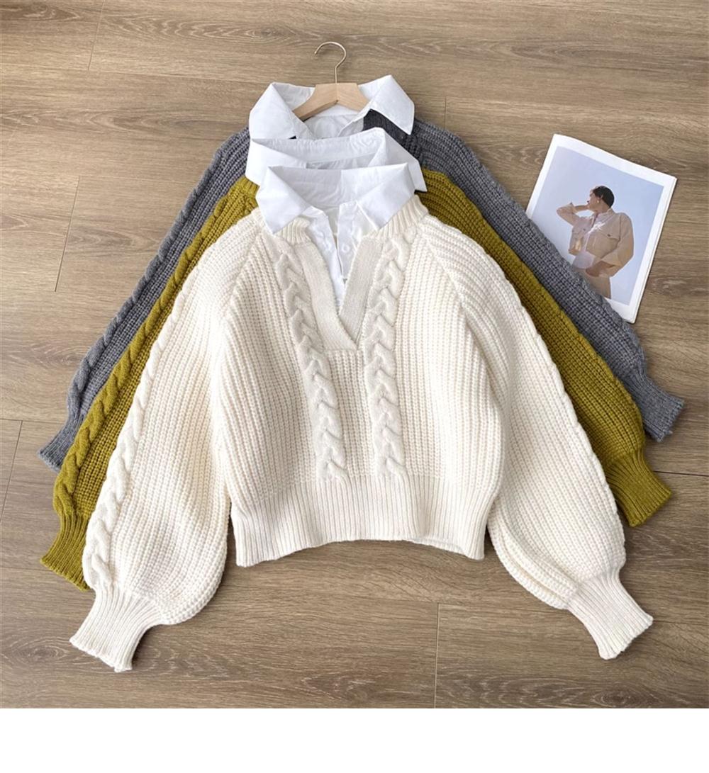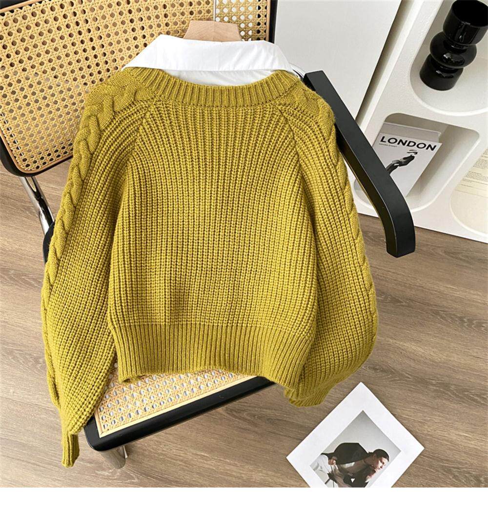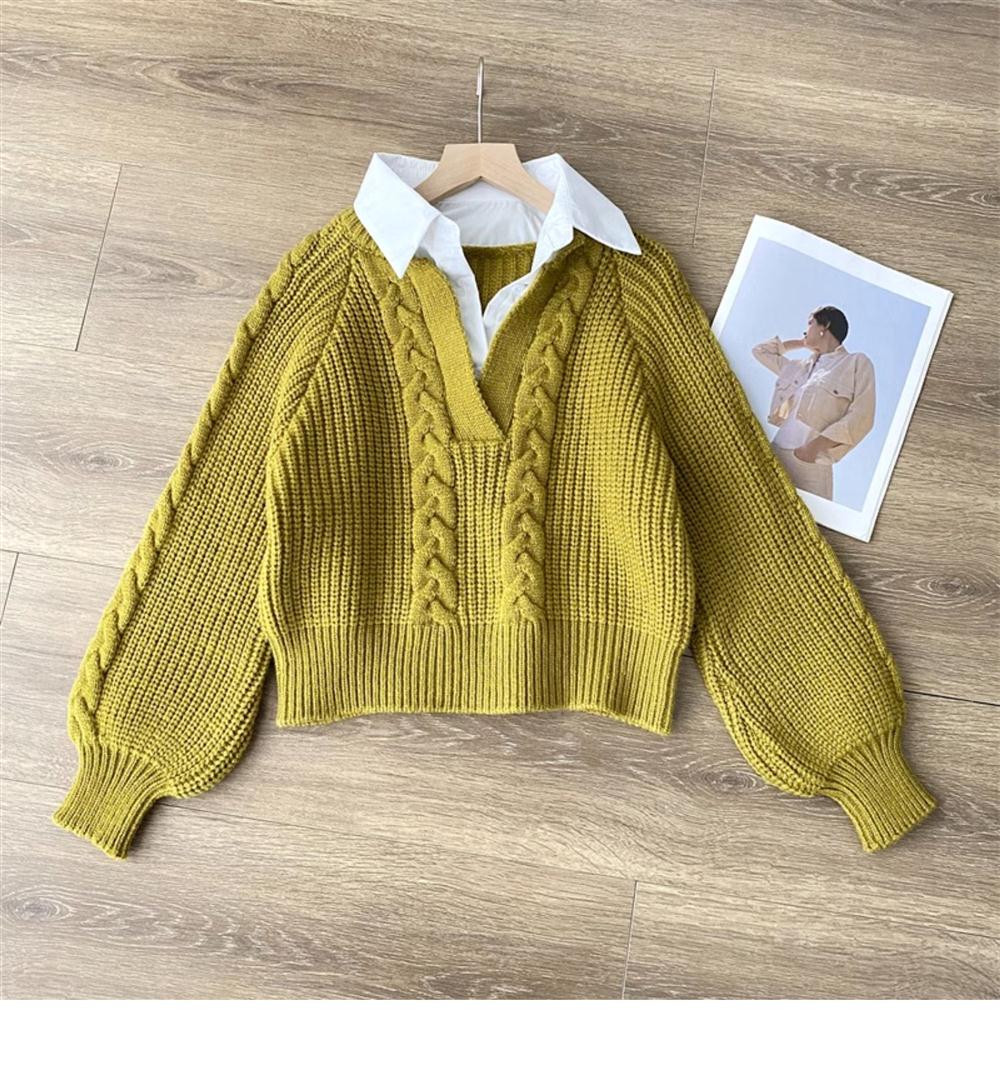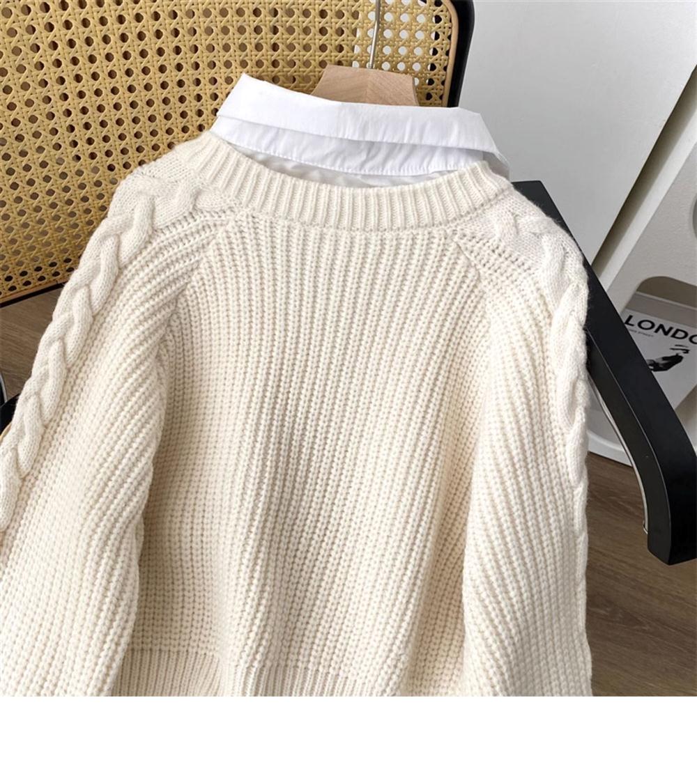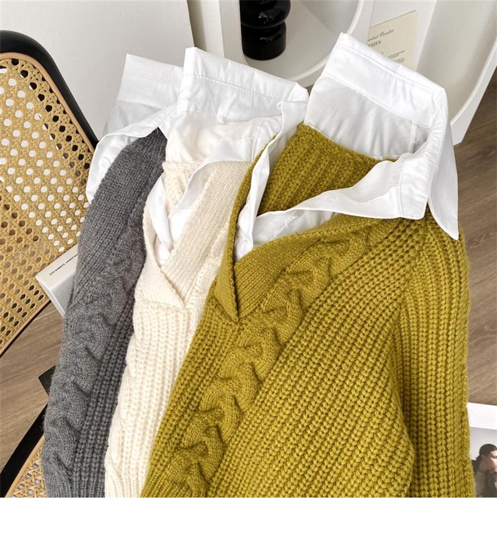 假兩件襯衫毛衣女2024秋冬新款設計感小衆翻領寬松外穿針織衫上衣