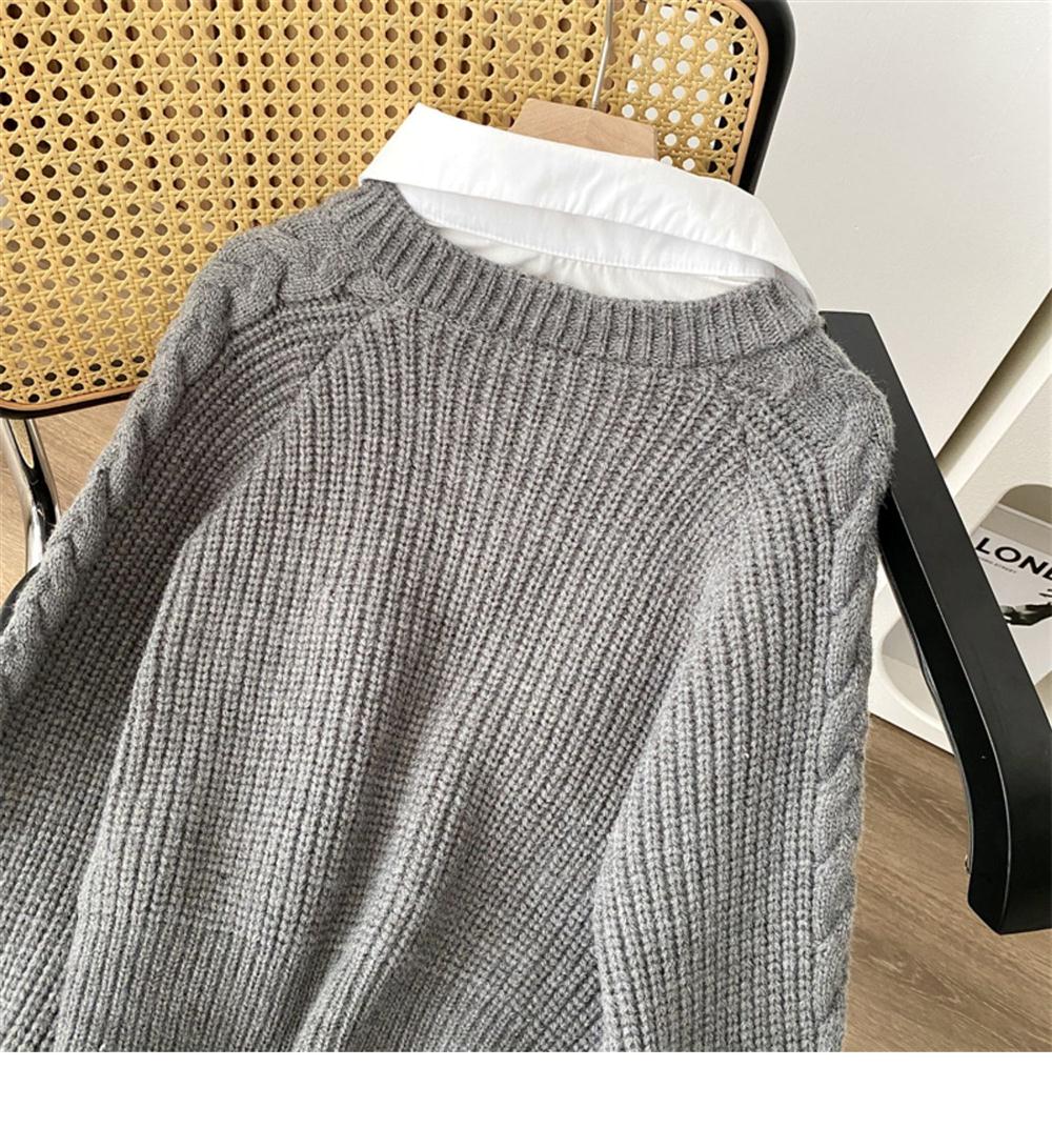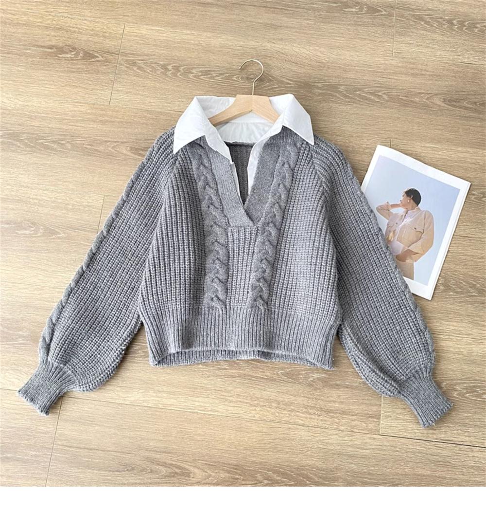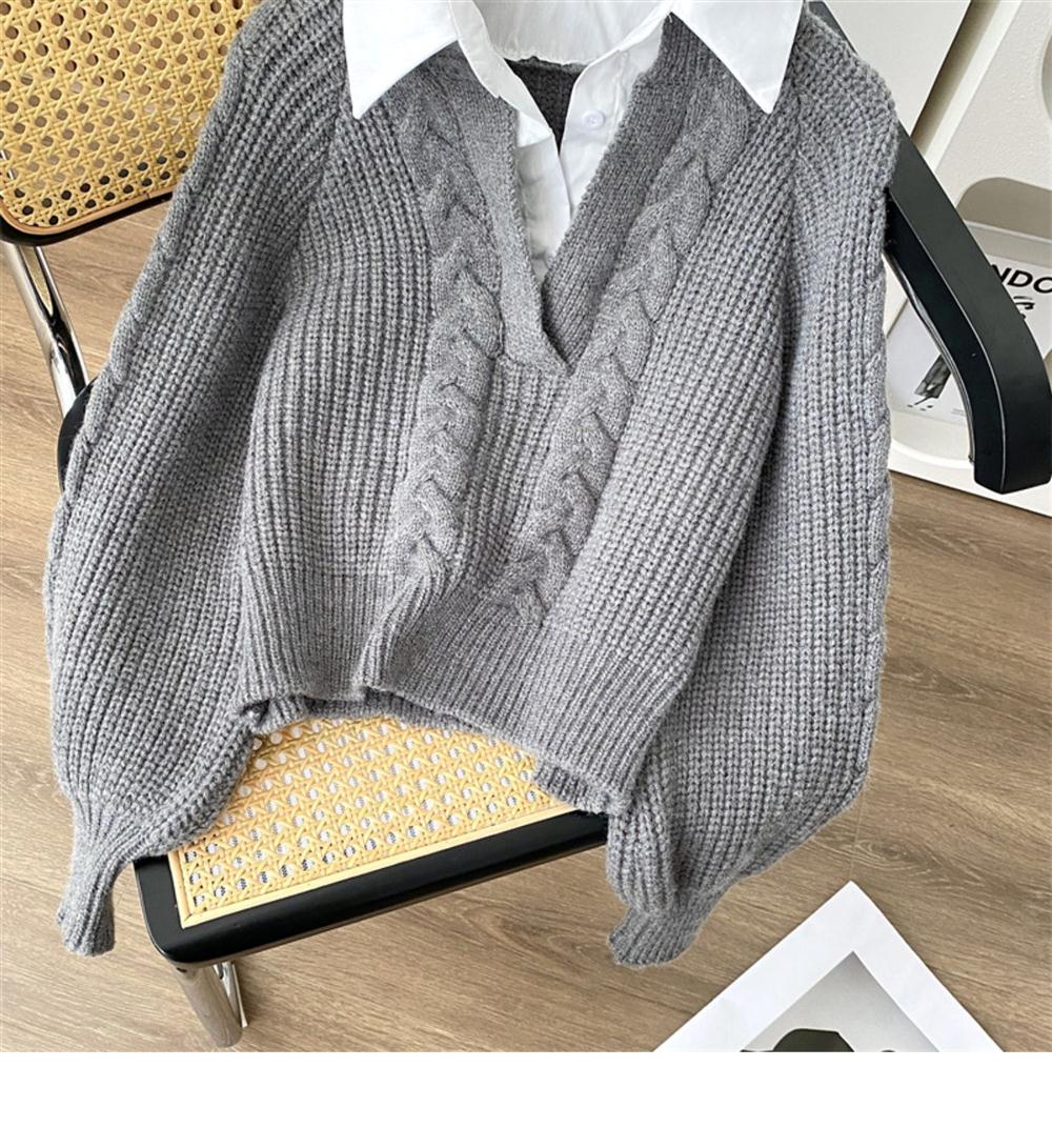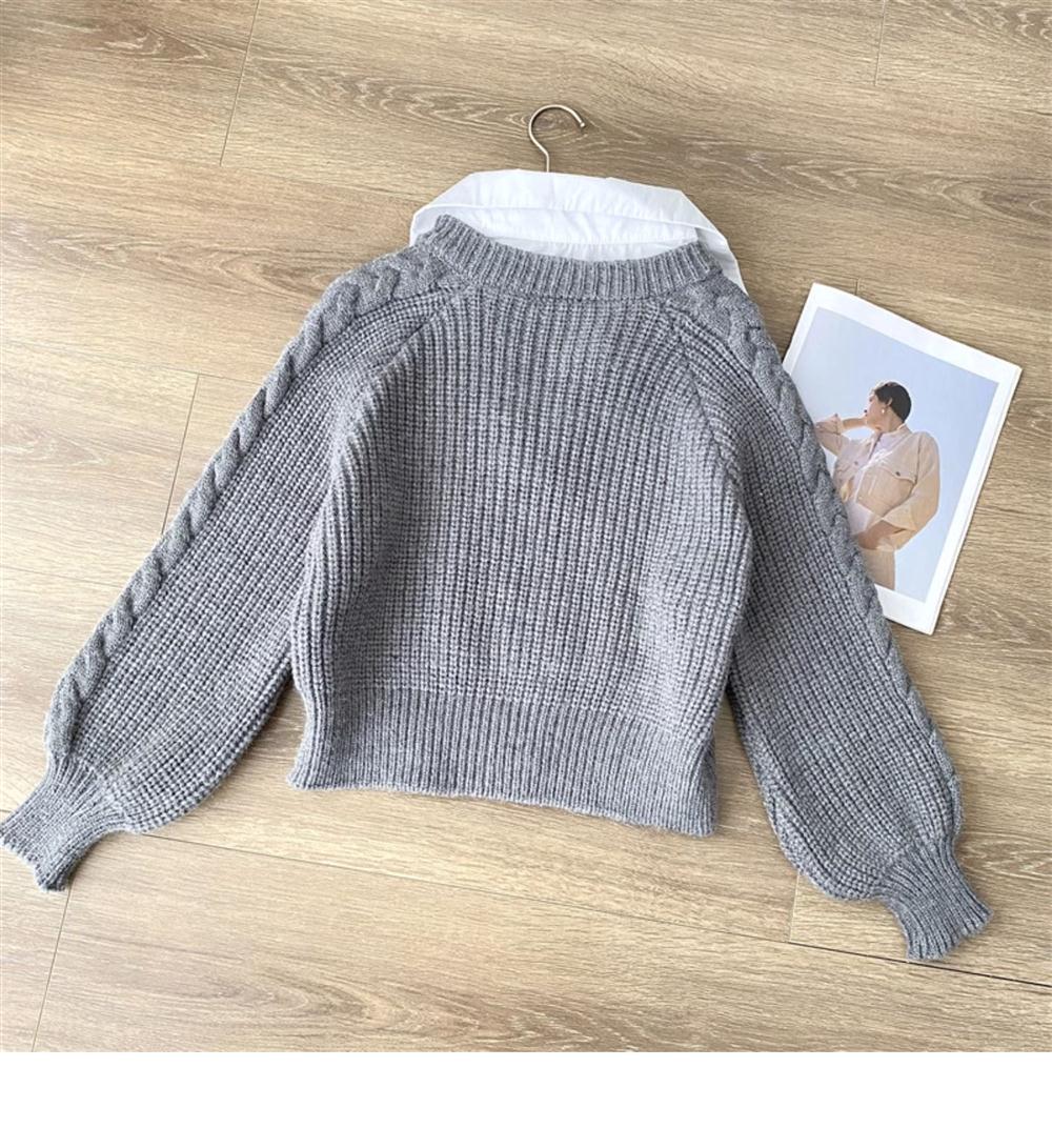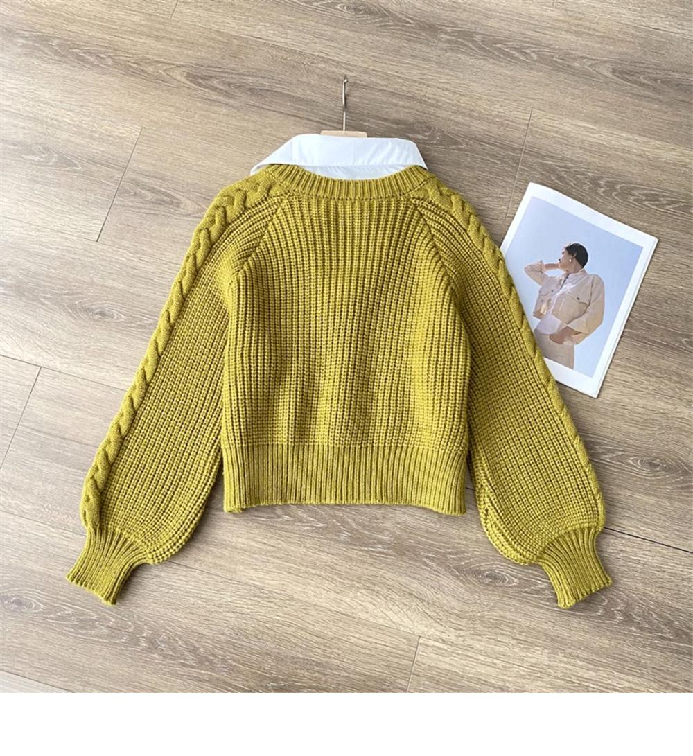 假兩件襯衫毛衣女2024秋冬新款設計感小衆翻領寬松外穿針織衫上衣