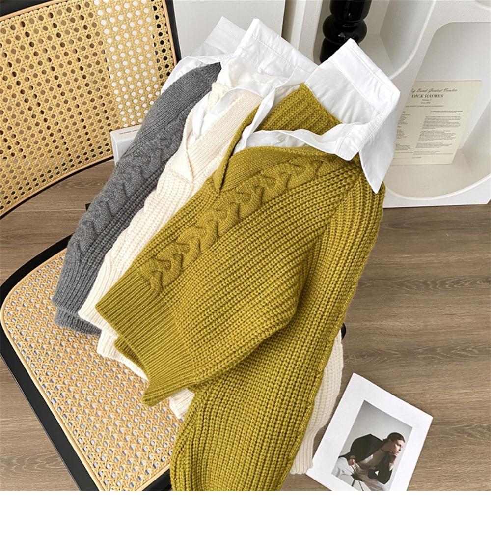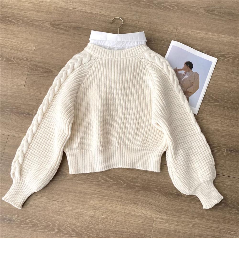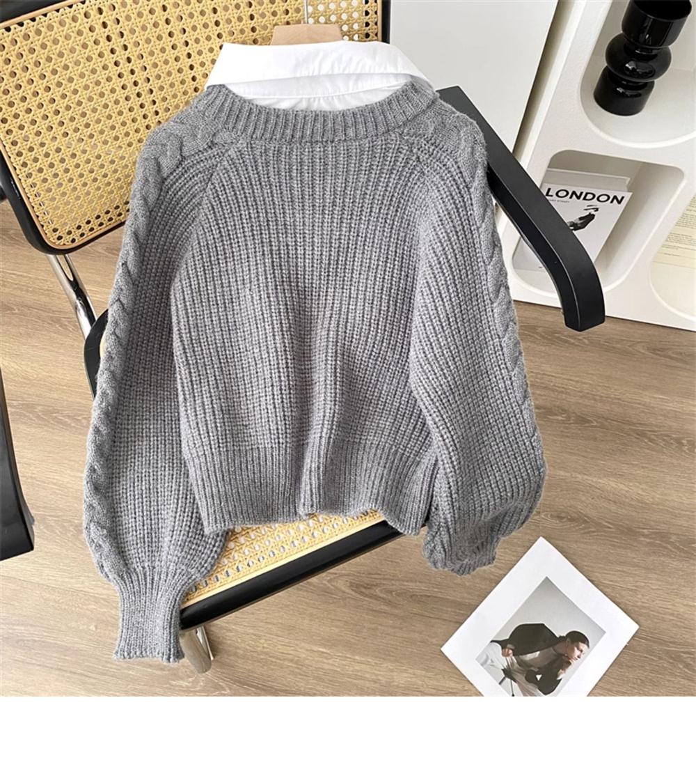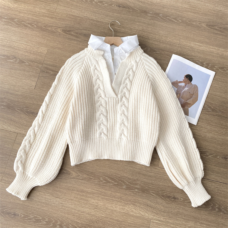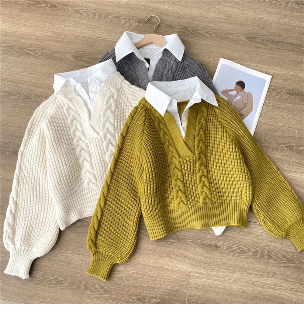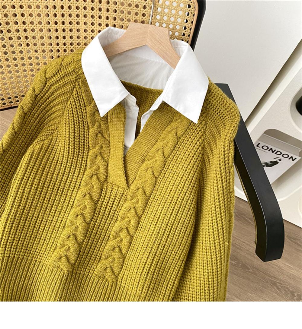 假兩件襯衫毛衣女2024秋冬新款設計感小衆翻領寬松外穿針織衫上衣