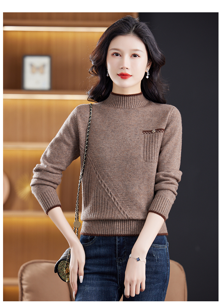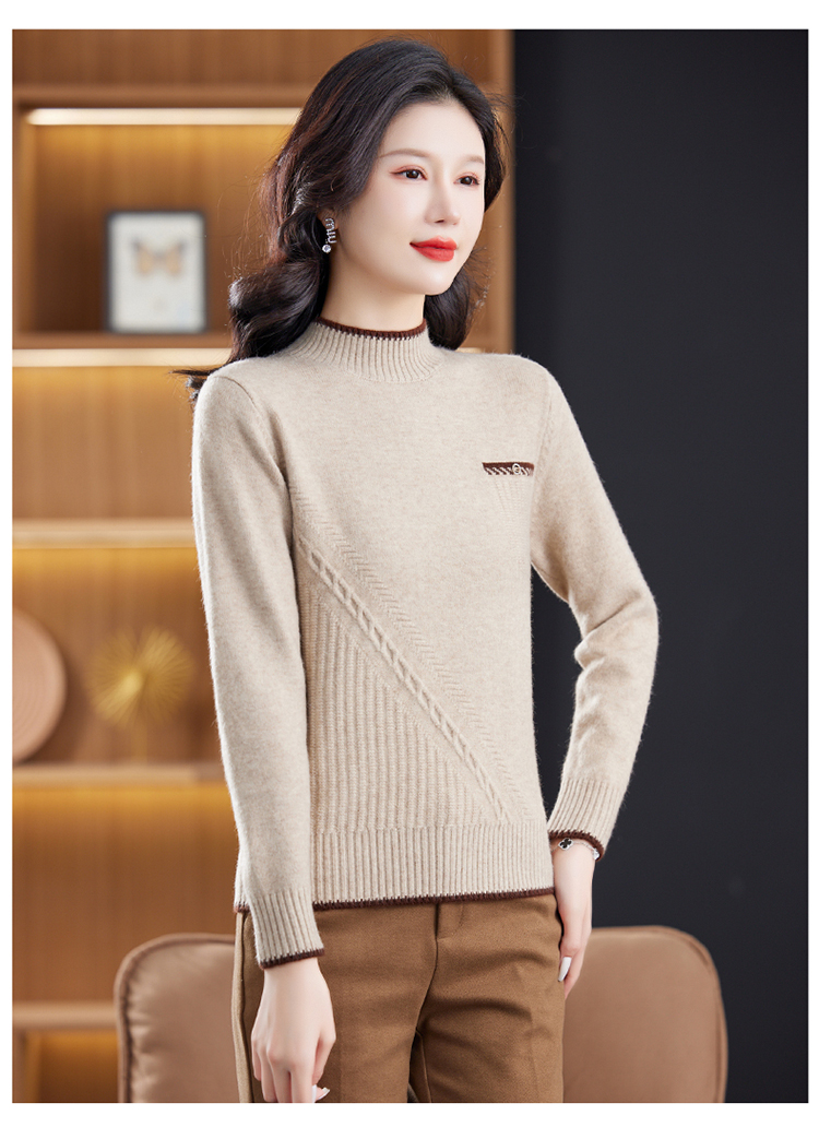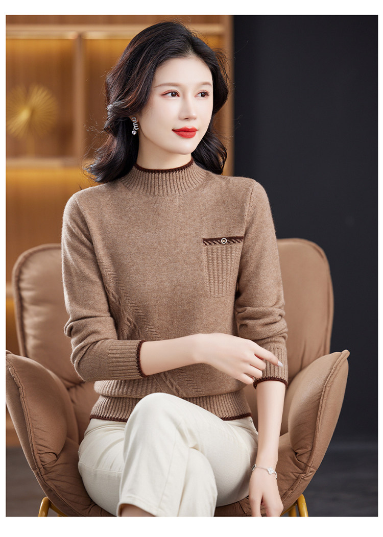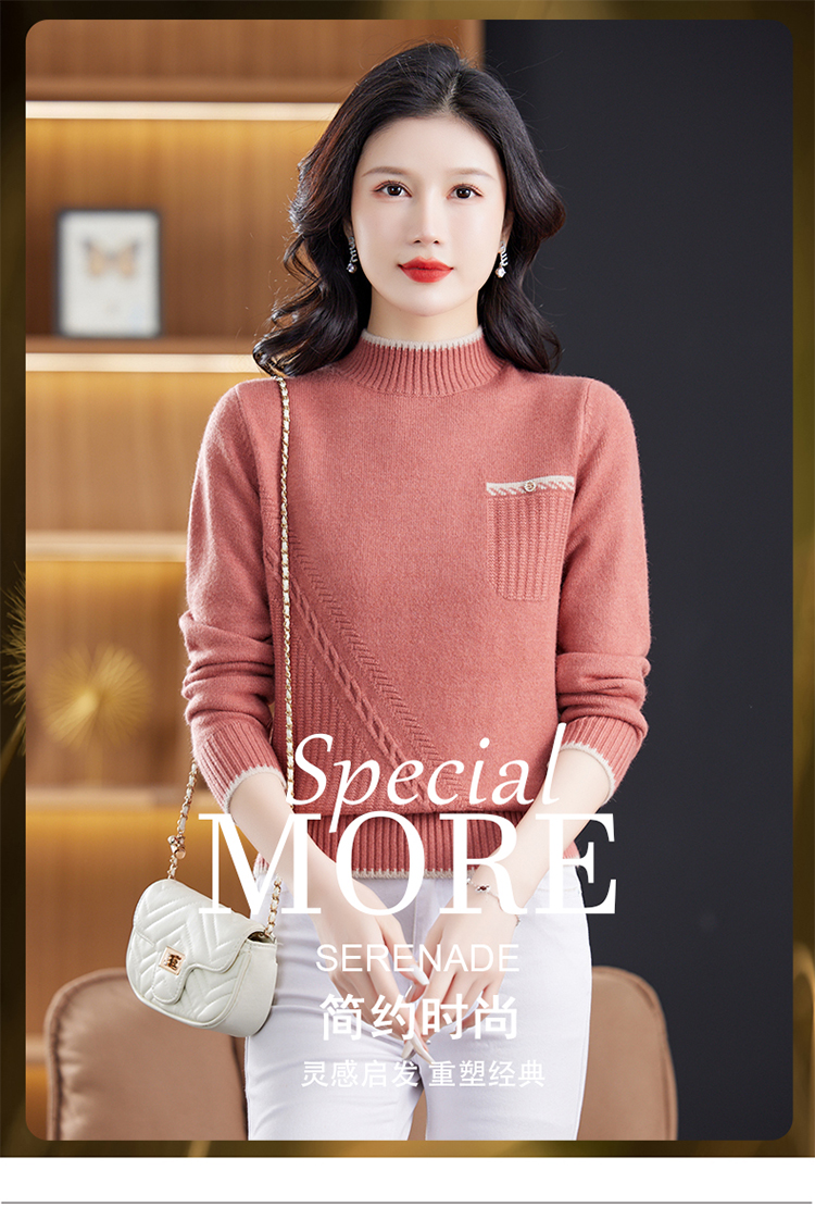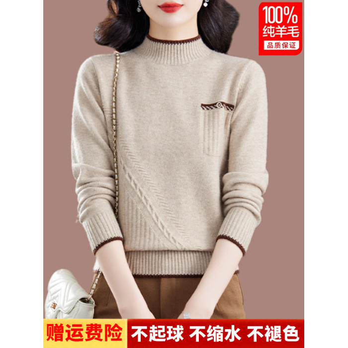品牌羊毛衫女半高領洋氣媽媽毛衣秋冬提花上衣寬松顯瘦羊絨打底衫