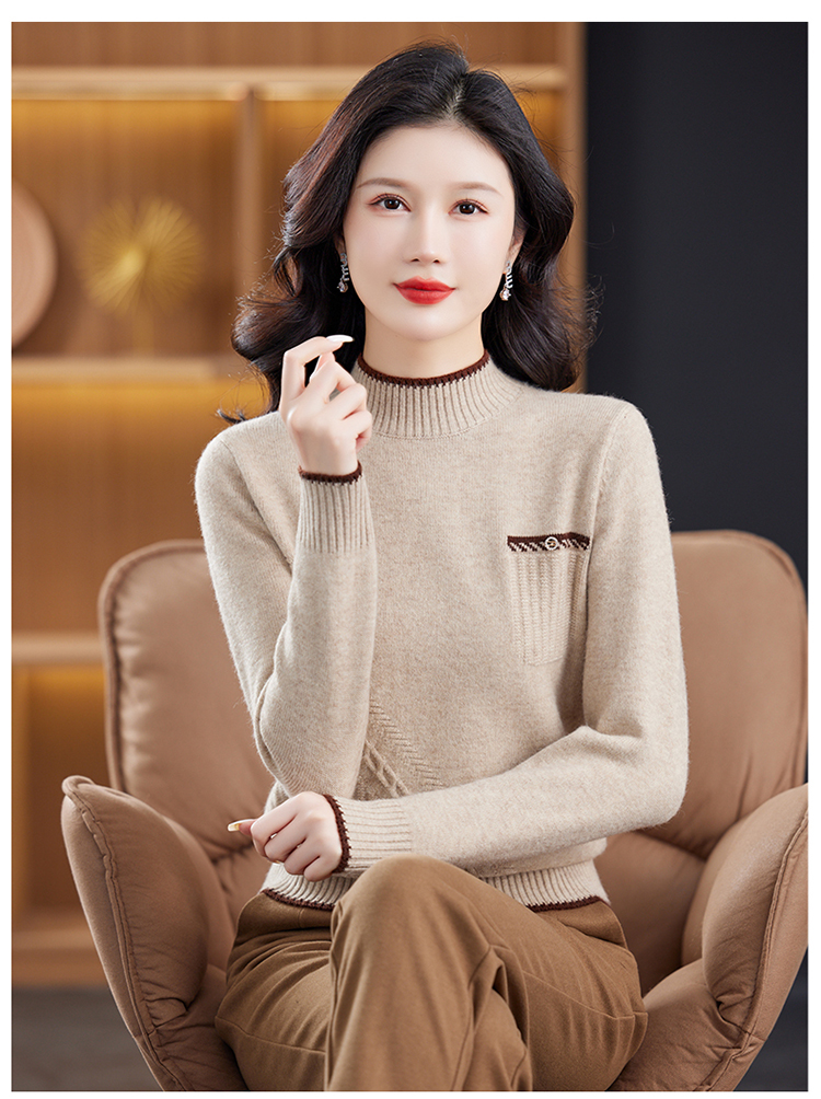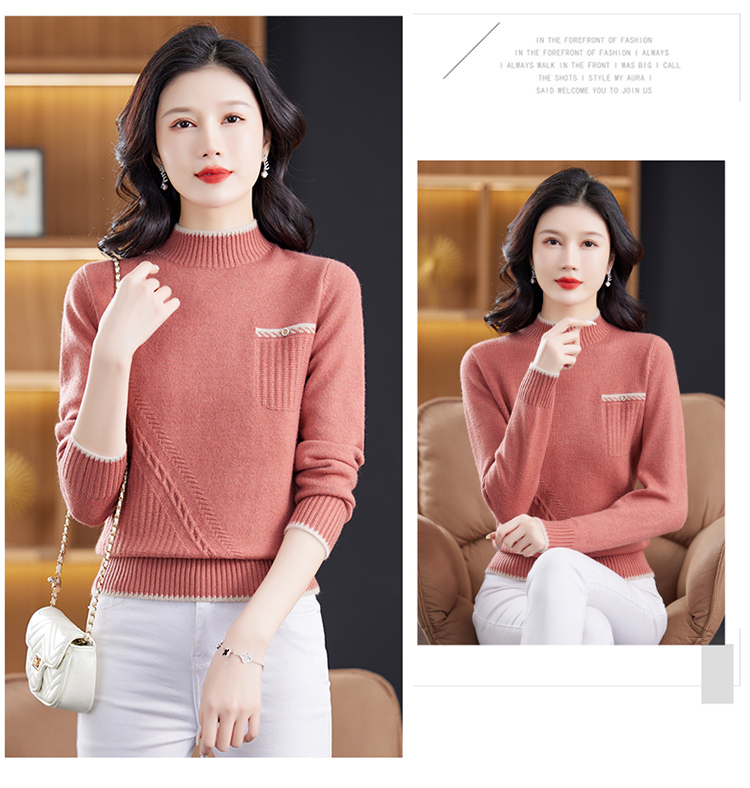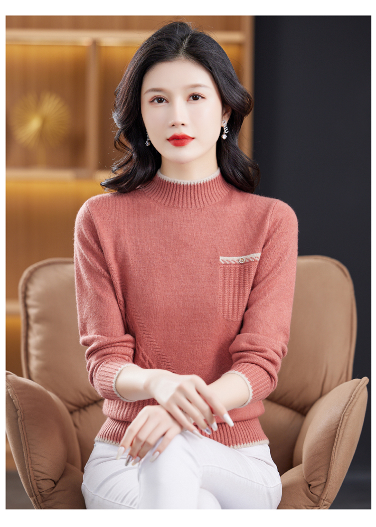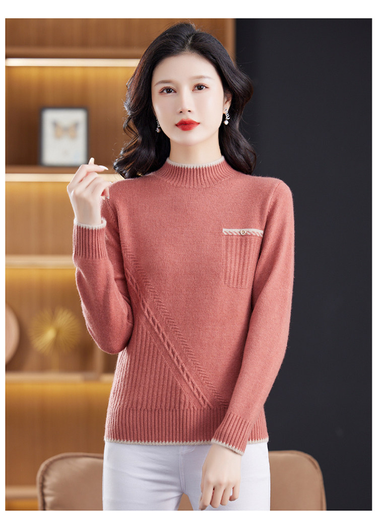 品牌羊毛衫女半高領洋氣媽媽毛衣秋冬提花上衣寬松顯瘦羊絨打底衫