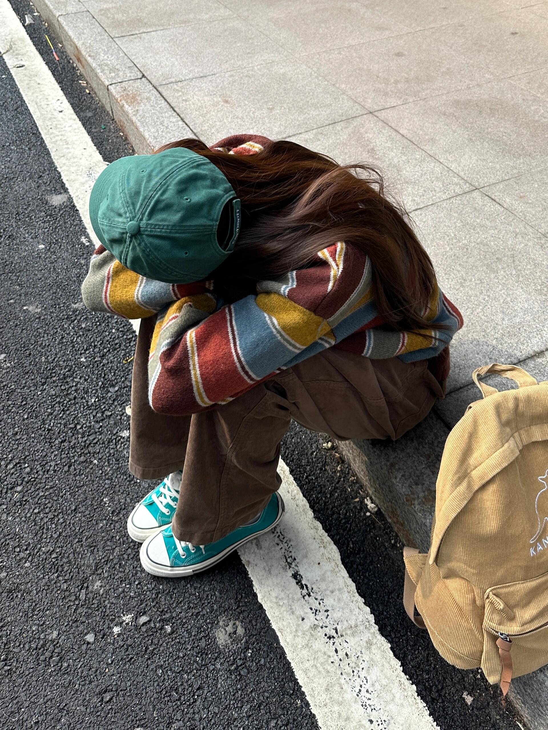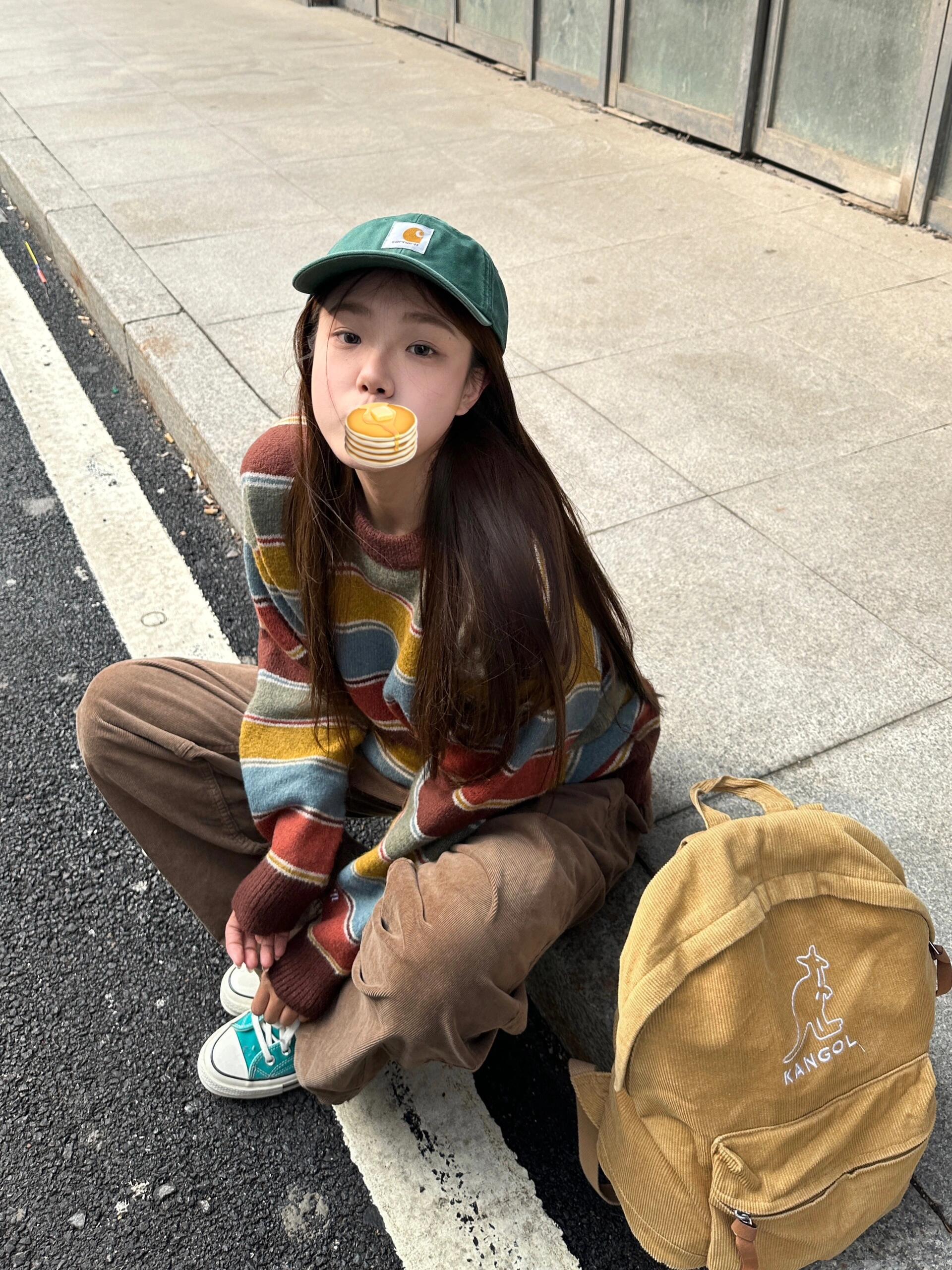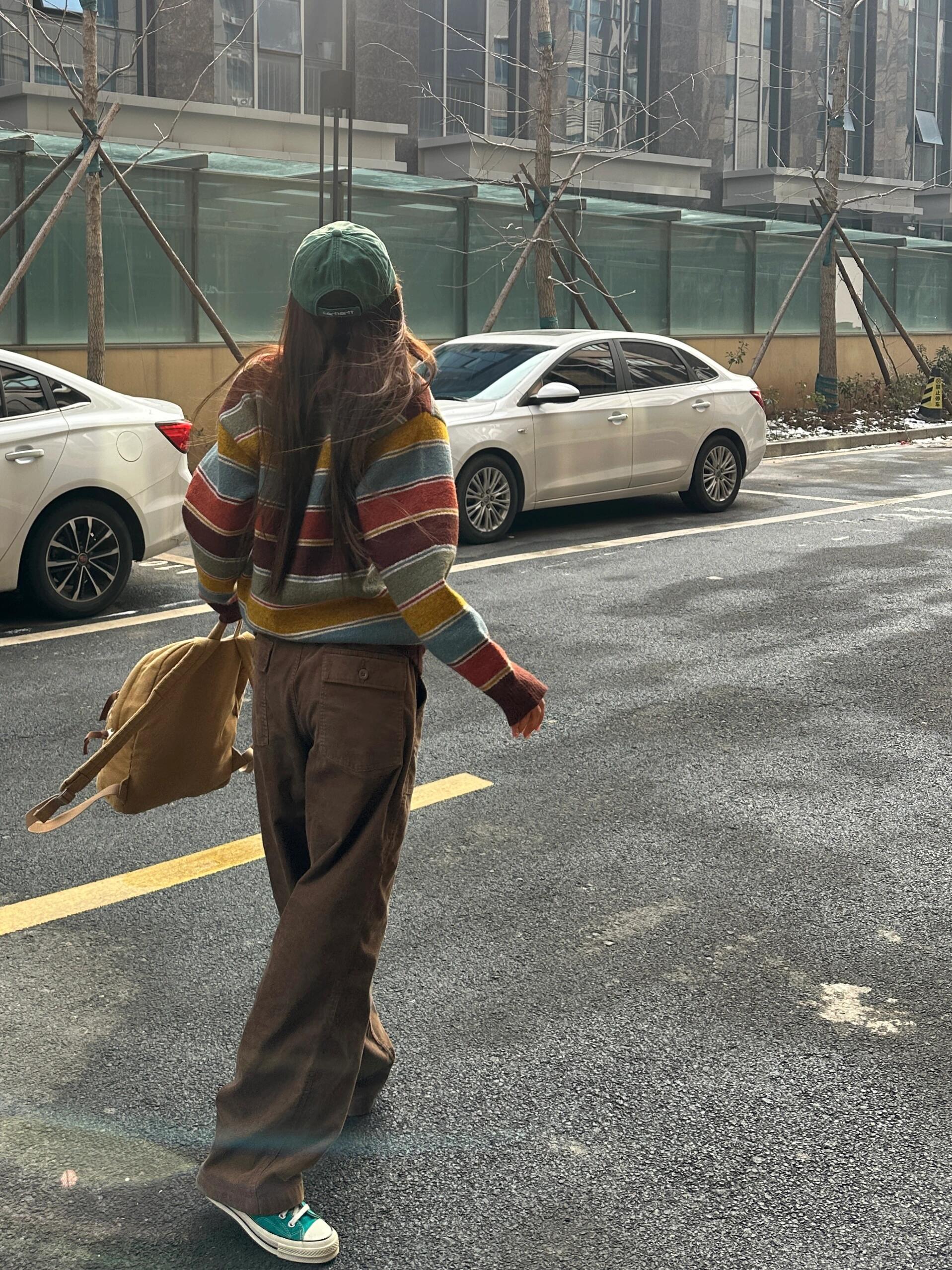 慵懶復古彩條紋毛衣女圓領秋冬長袖百搭鹽系針織套頭軟糯加厚上衣