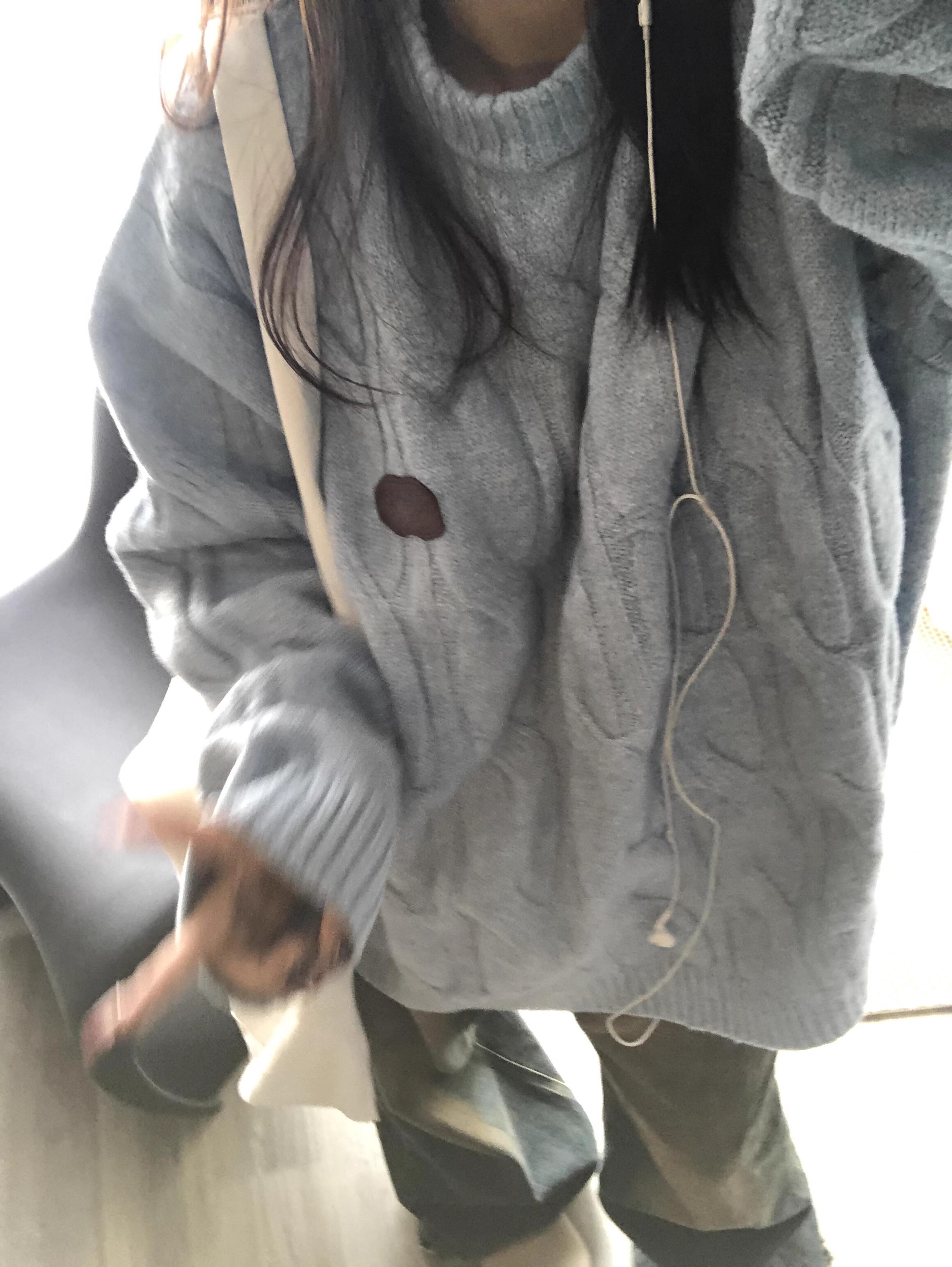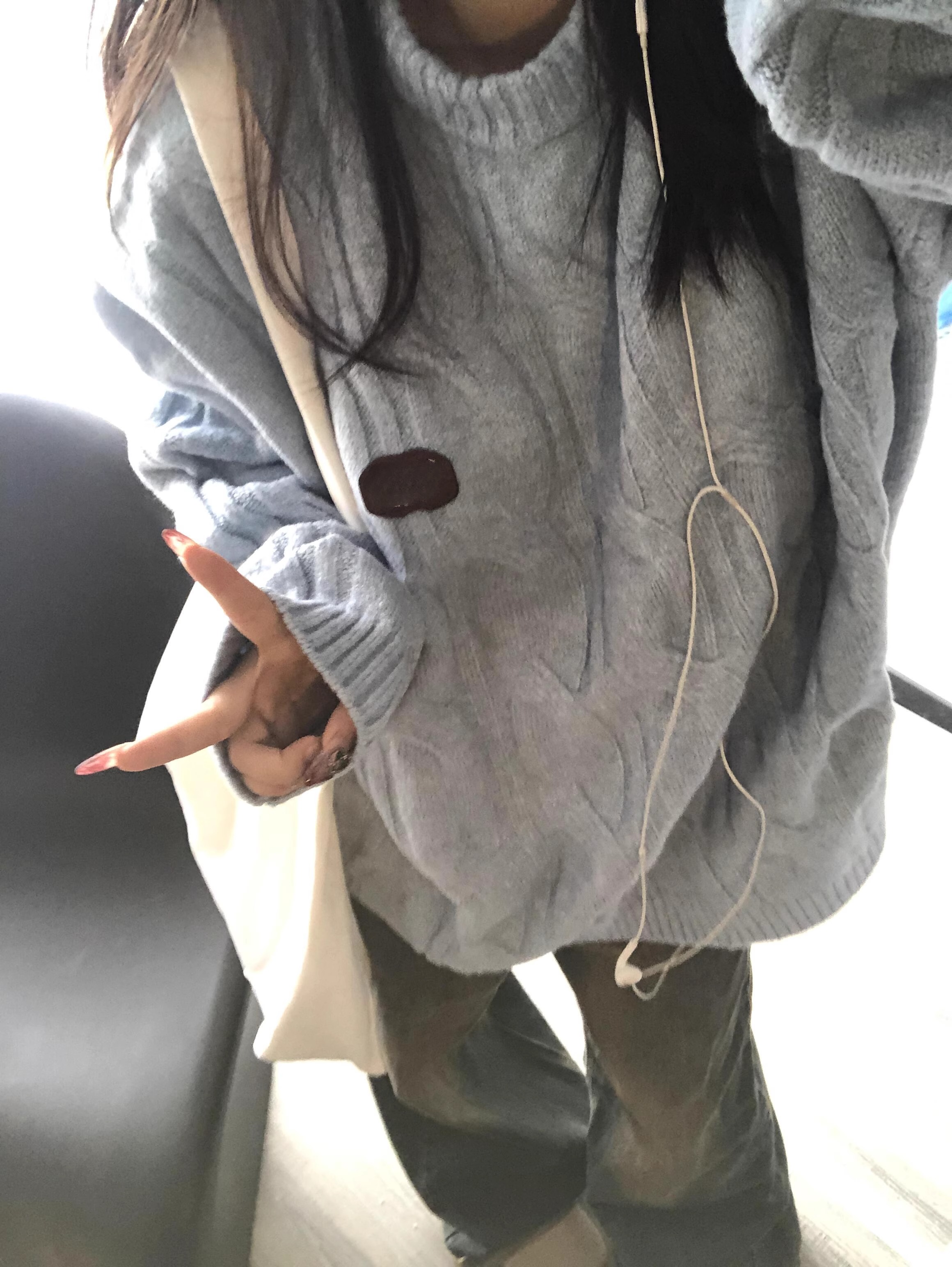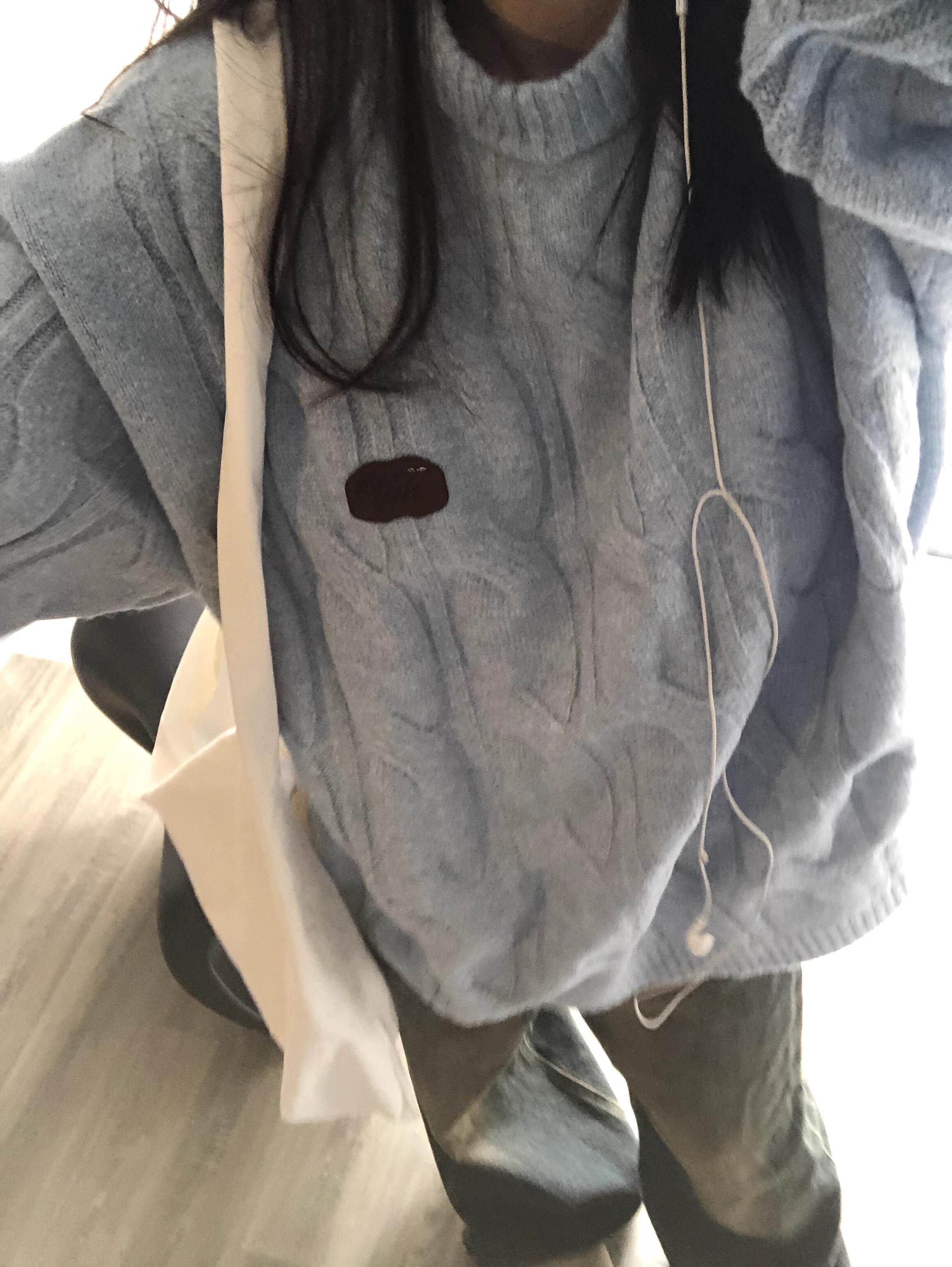 chic藍色毛衣女秋冬新款寬松慵懶風軟糯溫柔休閒百搭針織衫上衣潮