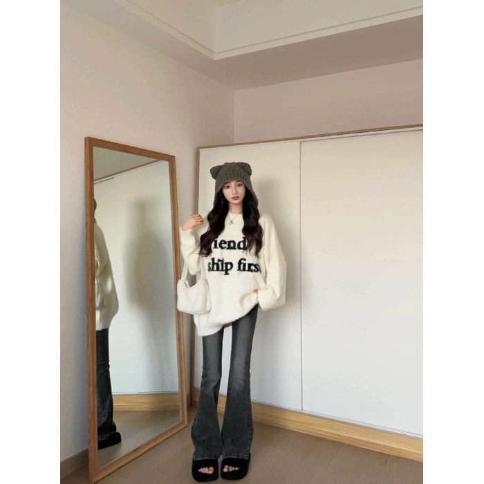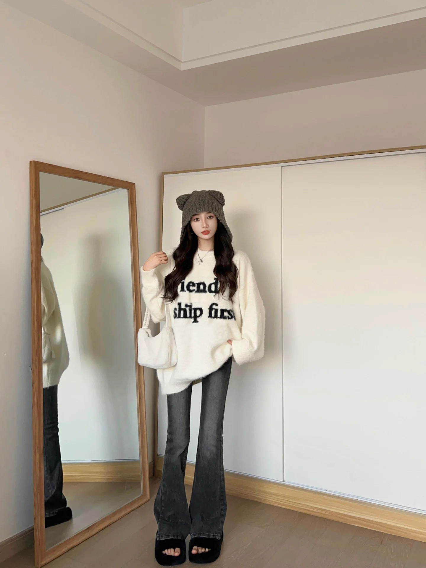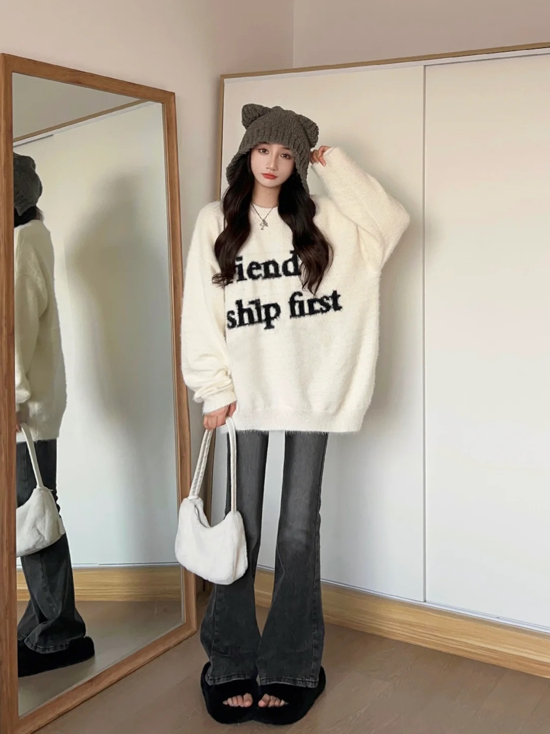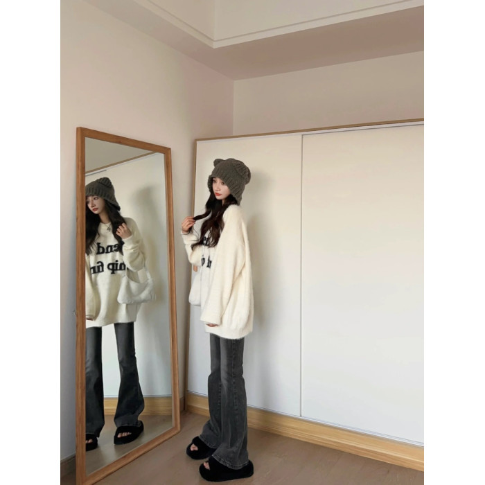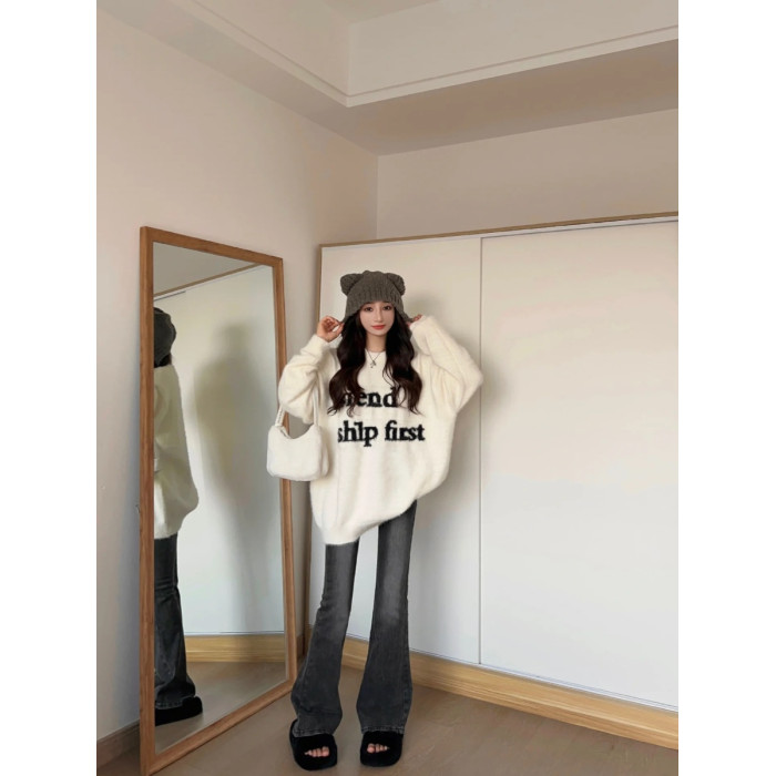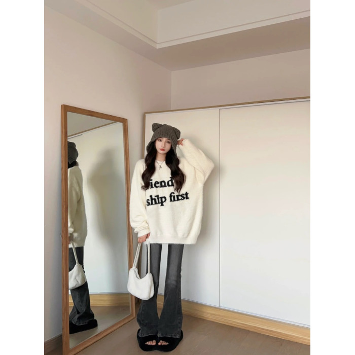 寬松慵懶風長袖針織2025秋冬季新款韓版休閒白色水貂絨軟糯毛衣女