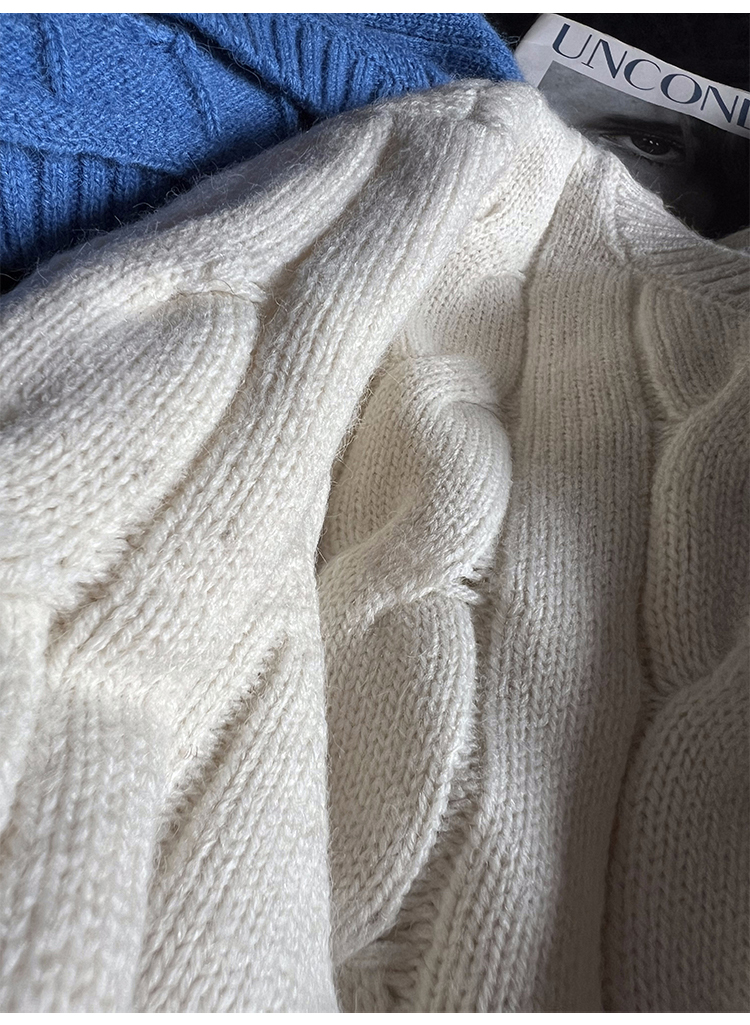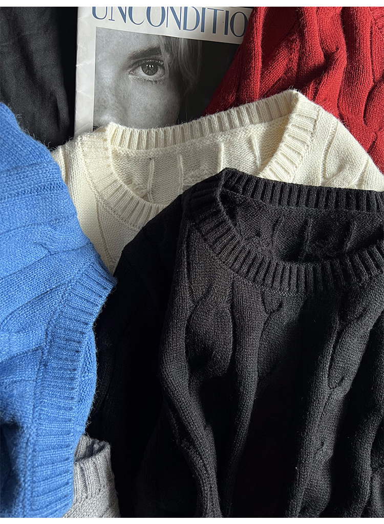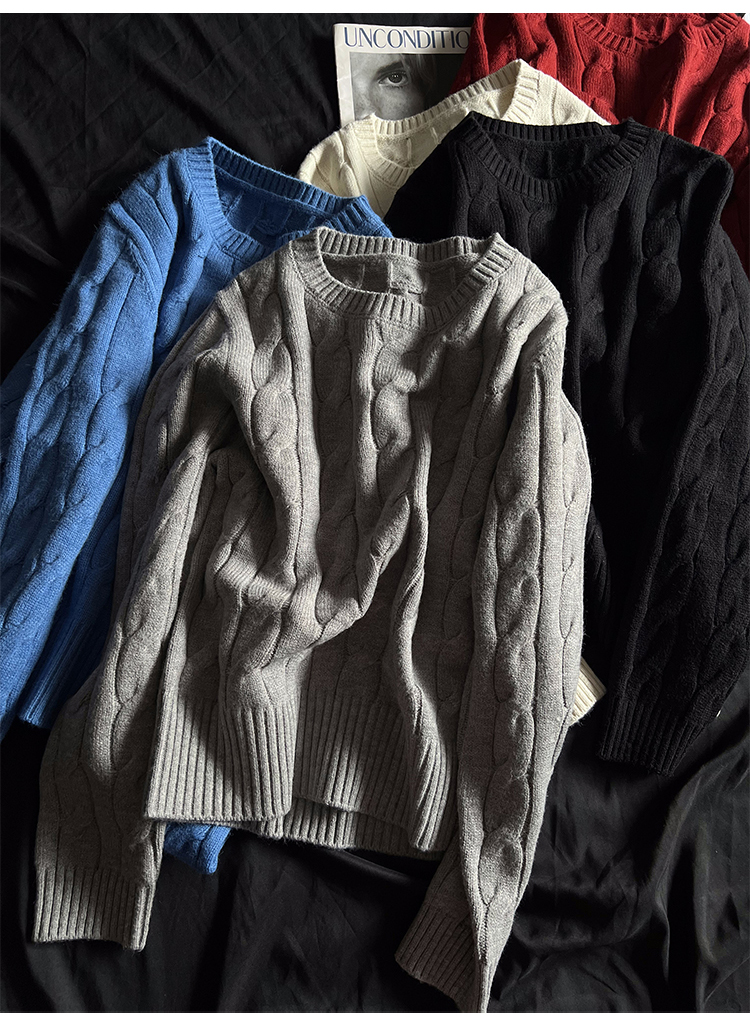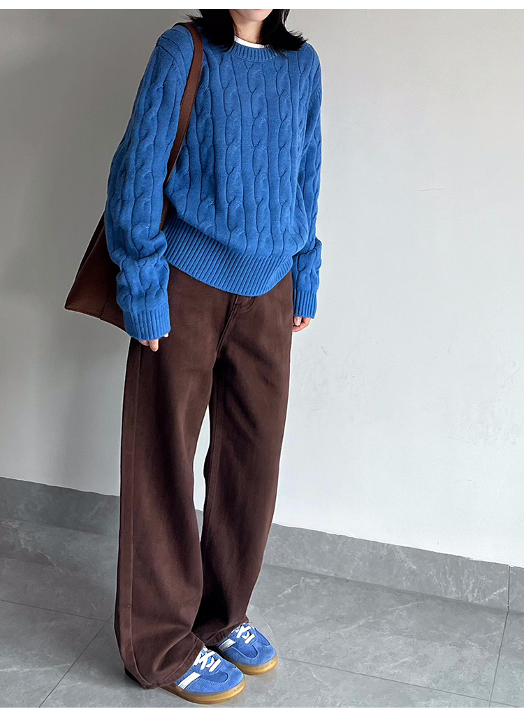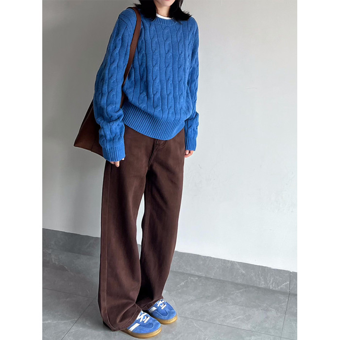 MAY MUZIYA克萊因藍針織衫女2025秋冬百搭寬松圓領套頭麻花毛衣