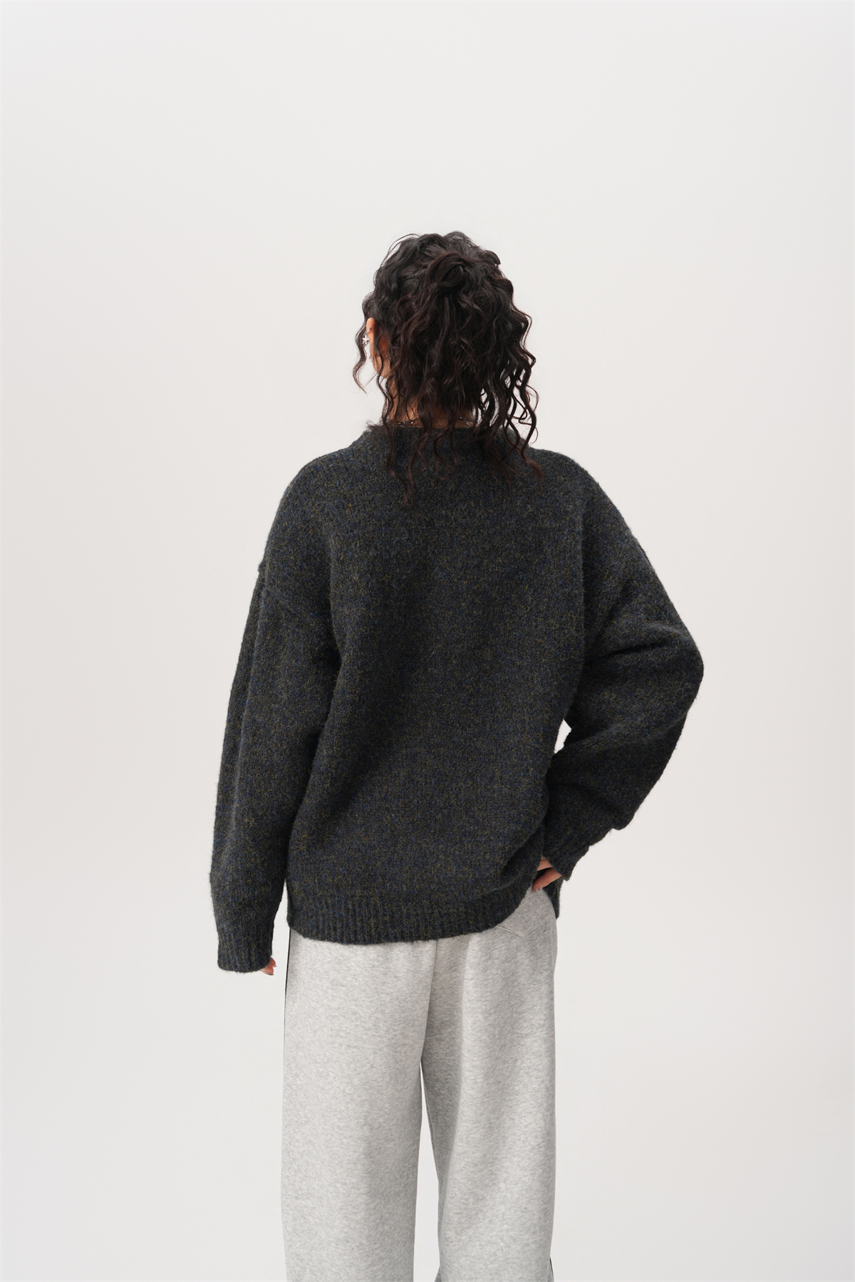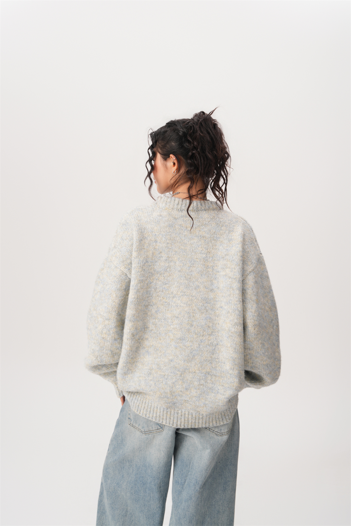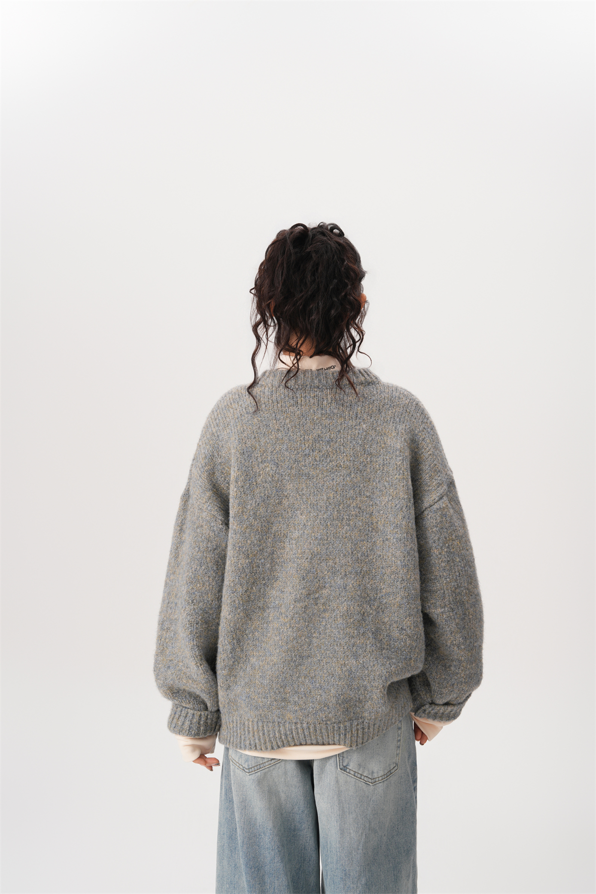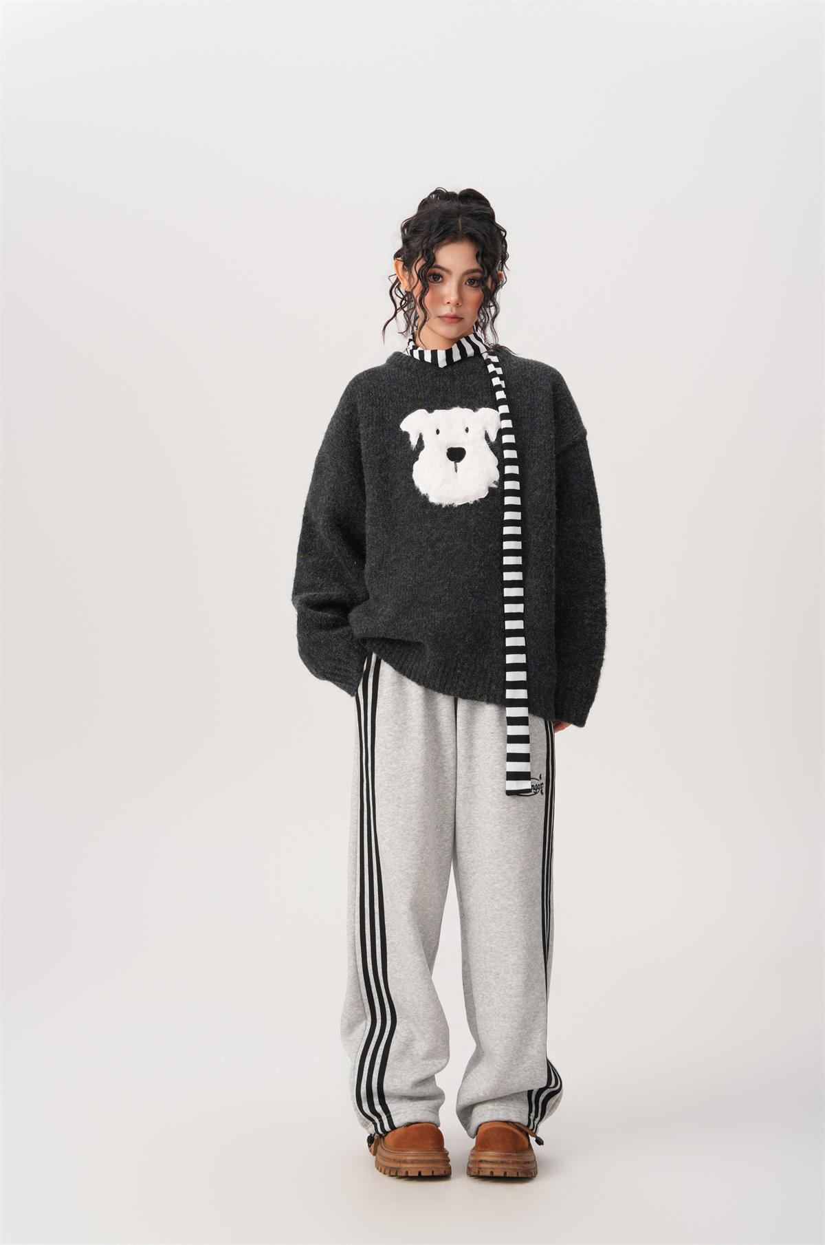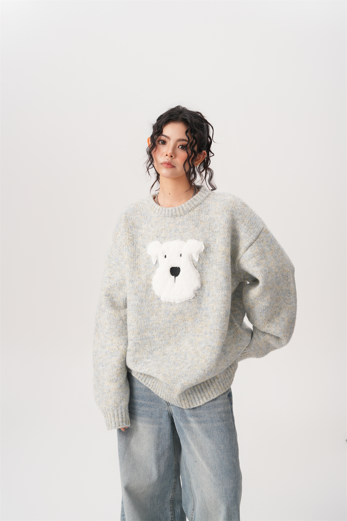 BWKA韓系毛絨小狗提花毛衣女男秋冬重磅寬松加厚慵懶風軟糯針織衫