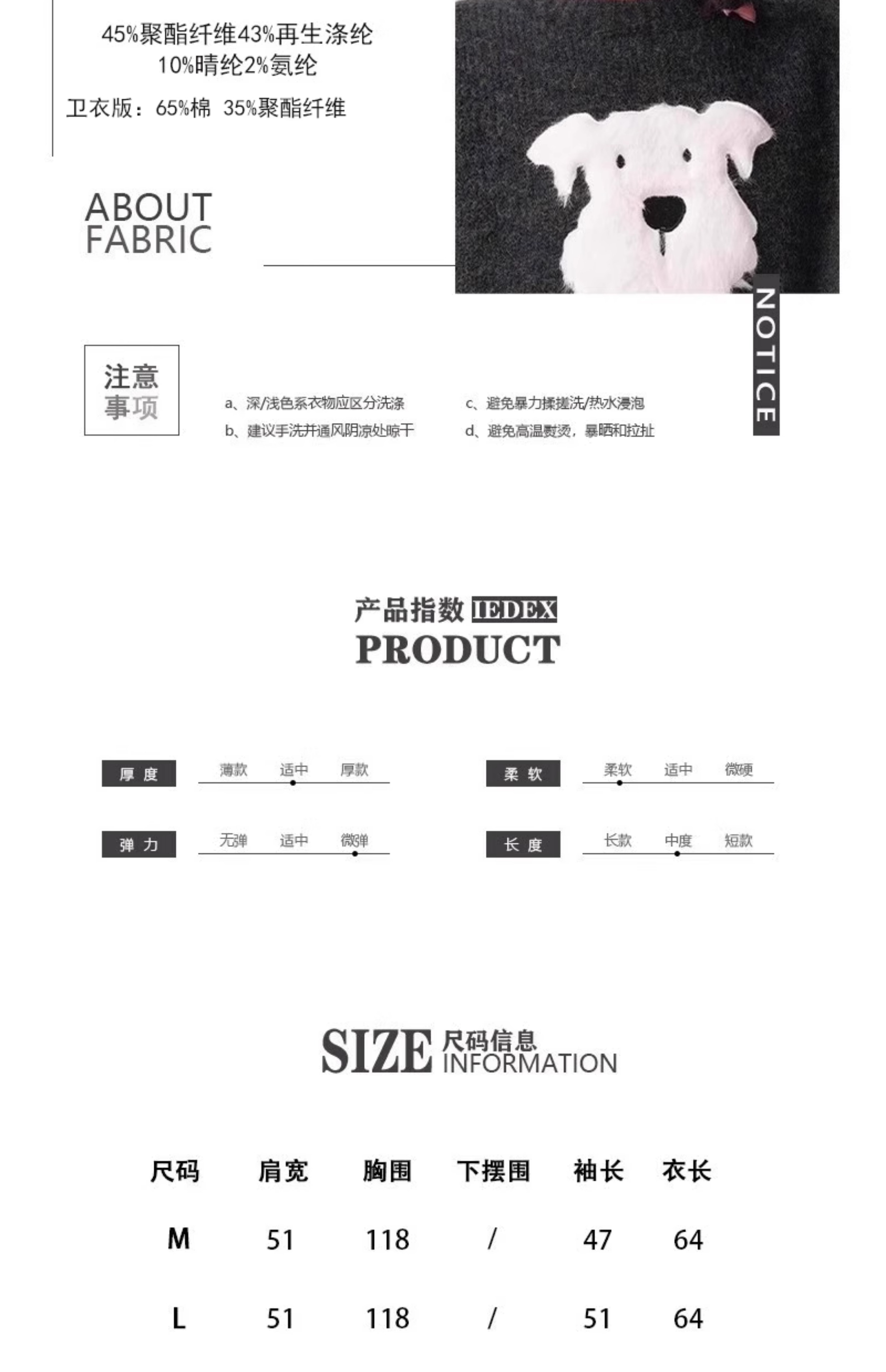 | 材質成分 | 聚酯纖維45% 聚對苯二甲酸乙二酯(滌綸)43% 聚丙烯腈纖維(腈綸)10% 聚氨酯彈性纖維(氨綸)2% |