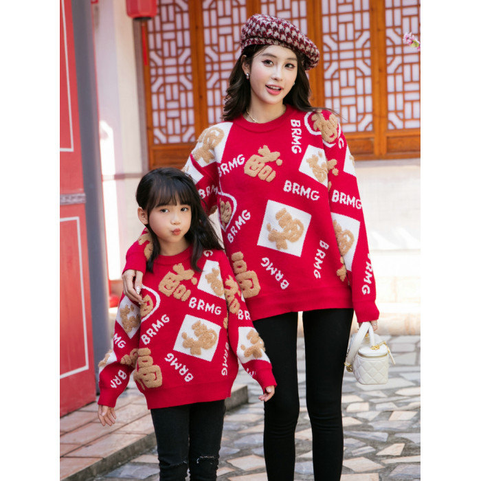 紅色本命年情侶毛衣高級感寬松過年衣服蛇年拜年服聖誕針織衫套頭