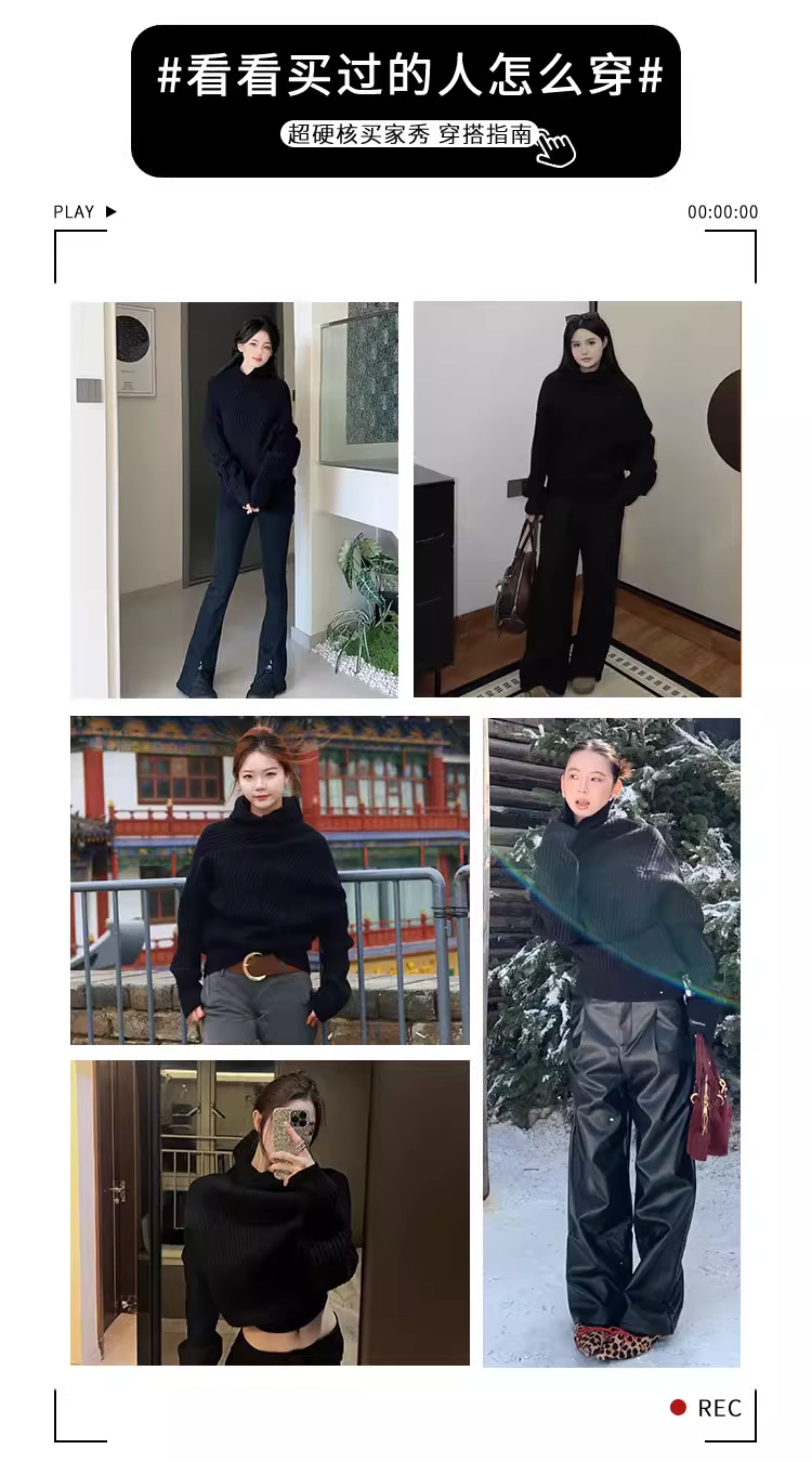 黑色高領毛衣女秋冬季2025新款慵懶高級感寬松加厚設計感針織上衣
