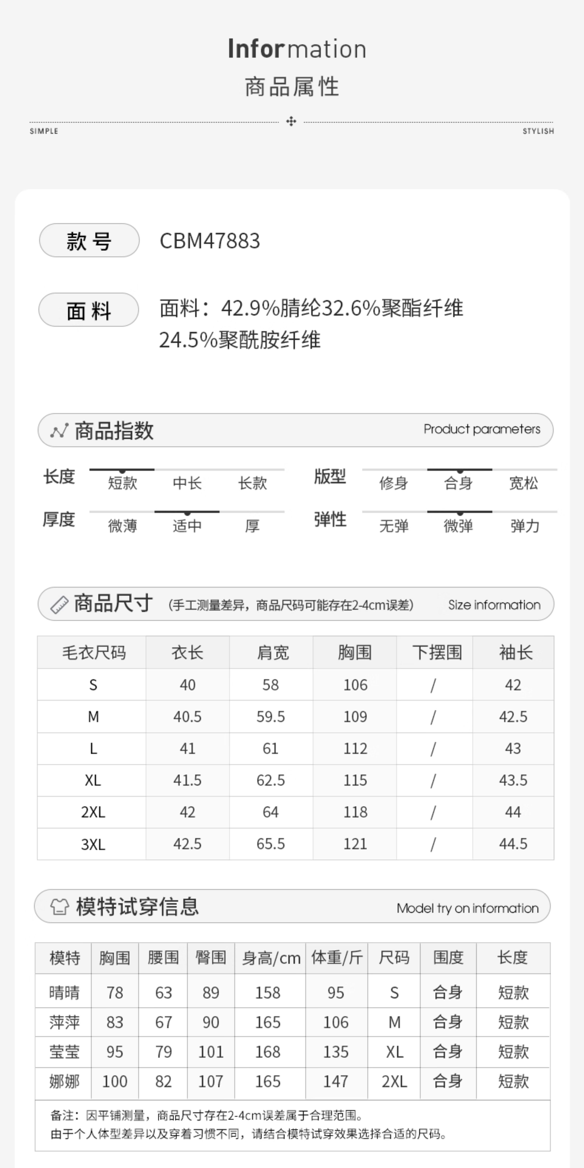 | 材質成分 | 聚丙烯腈纖維(腈綸)42.9% 聚酯纖維32.6% 聚醯胺纖維(錦綸)24.5% |