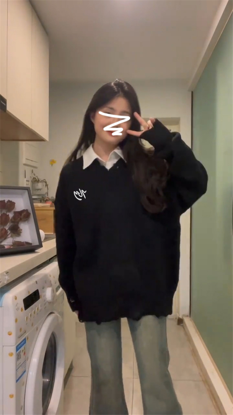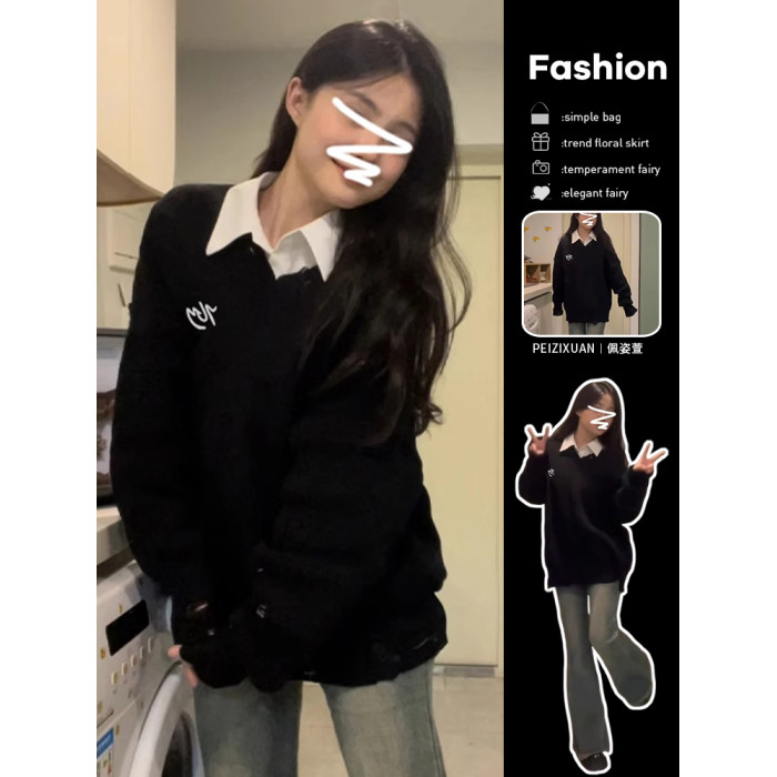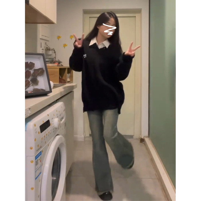 韓系慵懶風黑色針織V領毛衣女秋冬季2025新款軟糯小個子內搭上衣